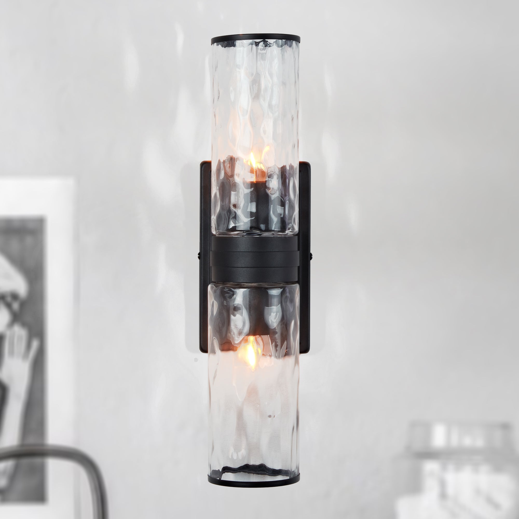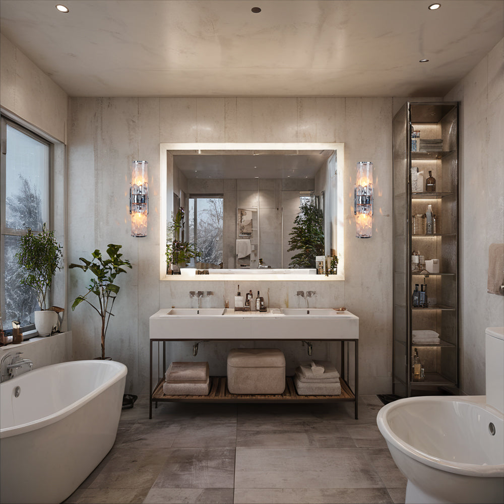 Hammered Clear Glass Shades Candelabra Sconce - Elegant Wall Sconces with Rich Finishes, Suitable for the Bathroom as Lighting for Your Makeup