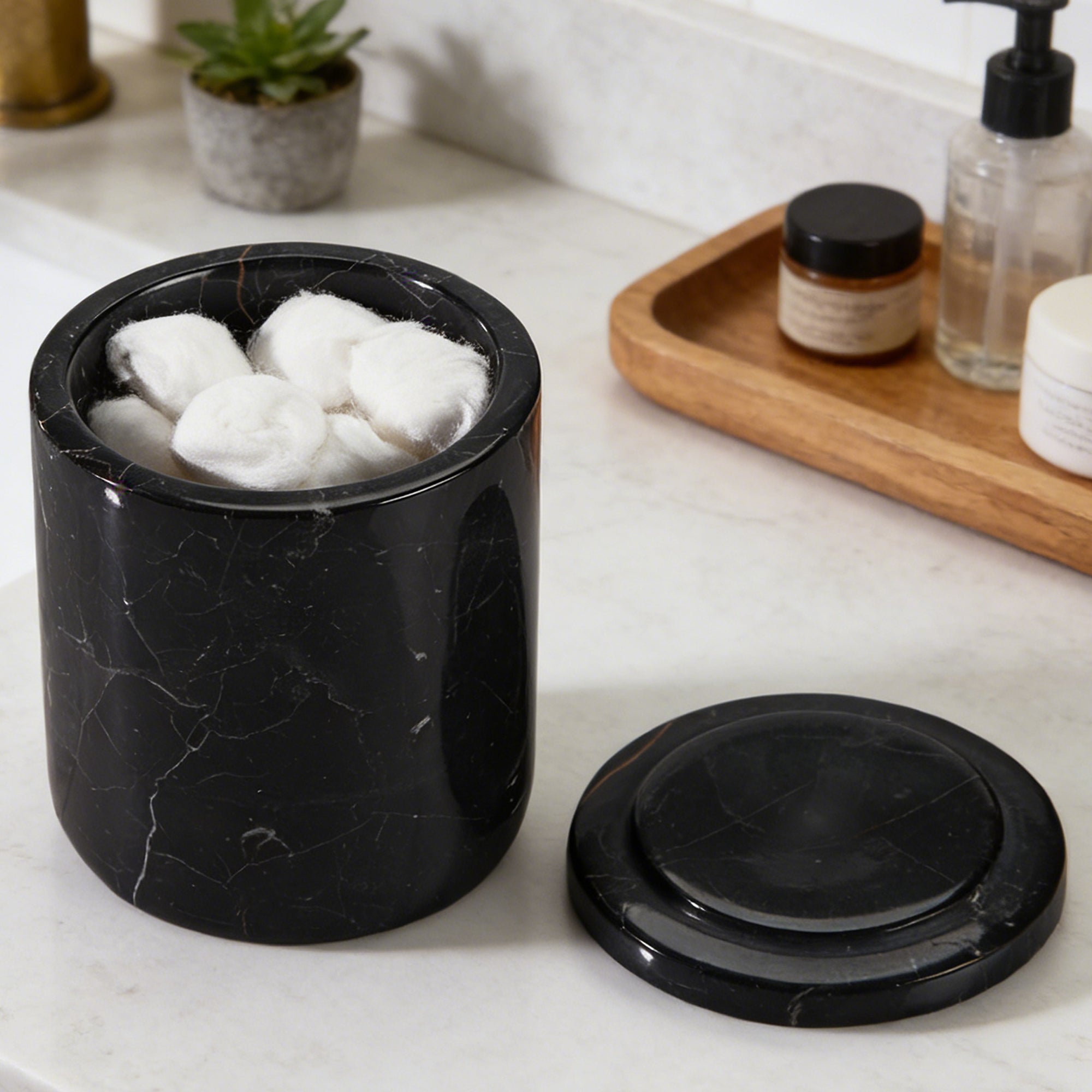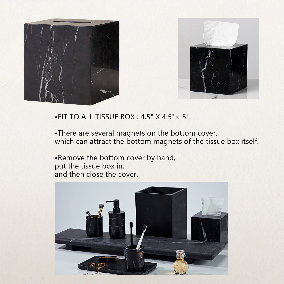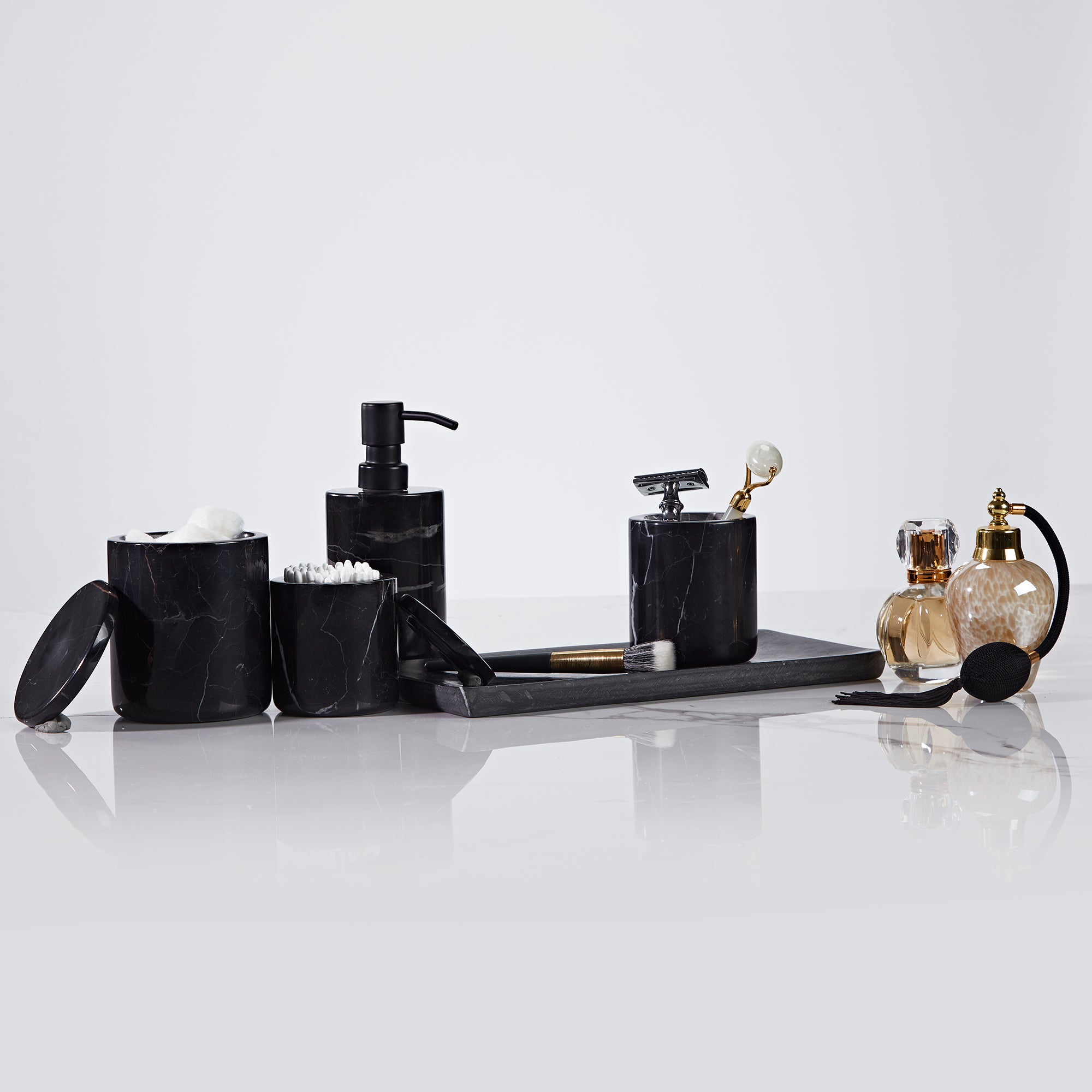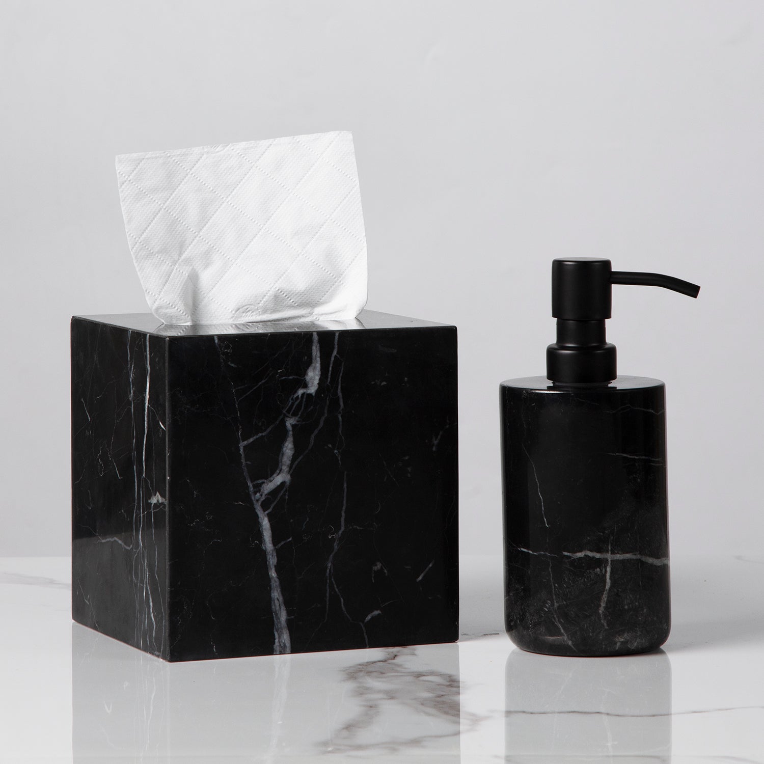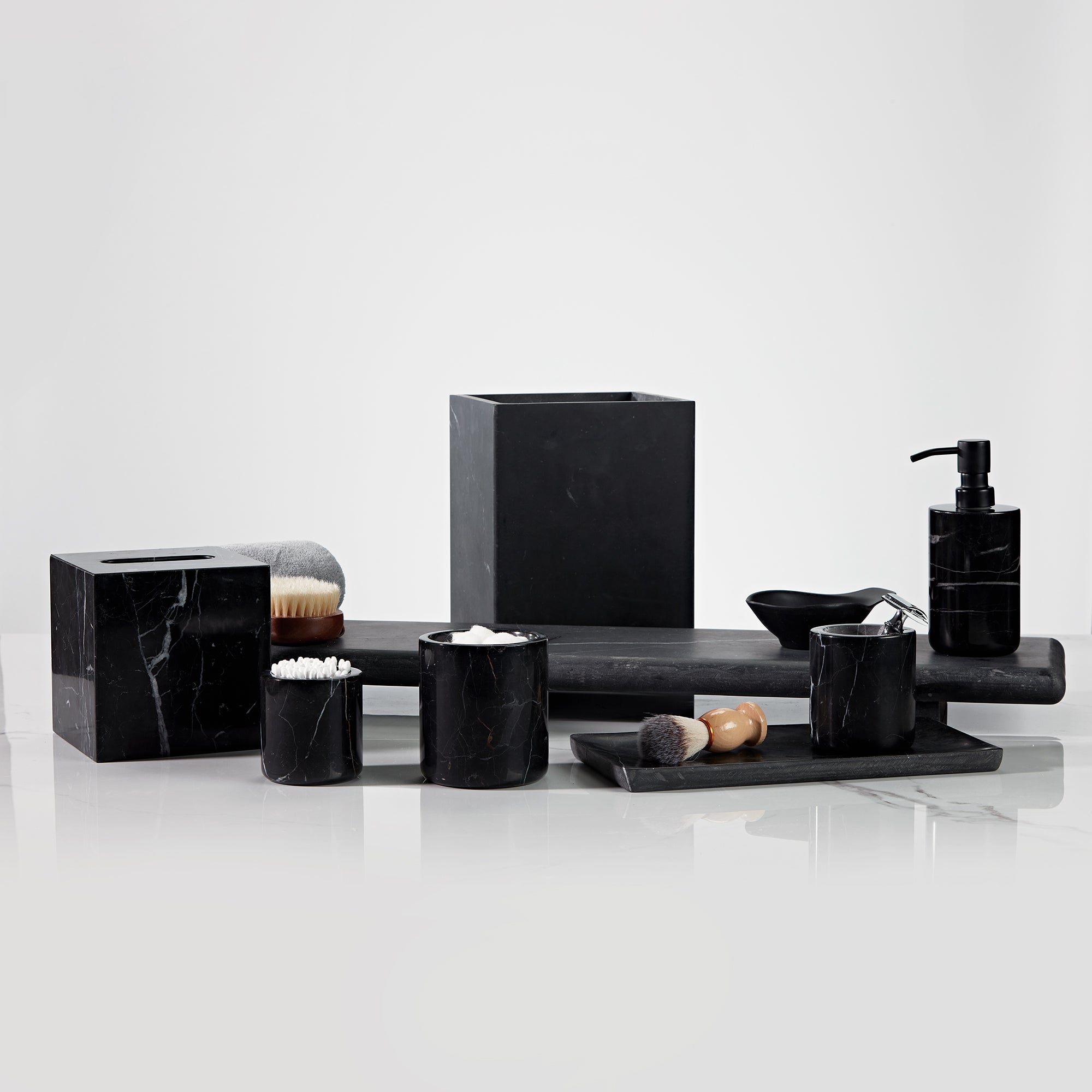 - Whether you are going for a modern or traditional look in your bathroom, natural black marble bath accessories are sure to elevate the overall ambiance.