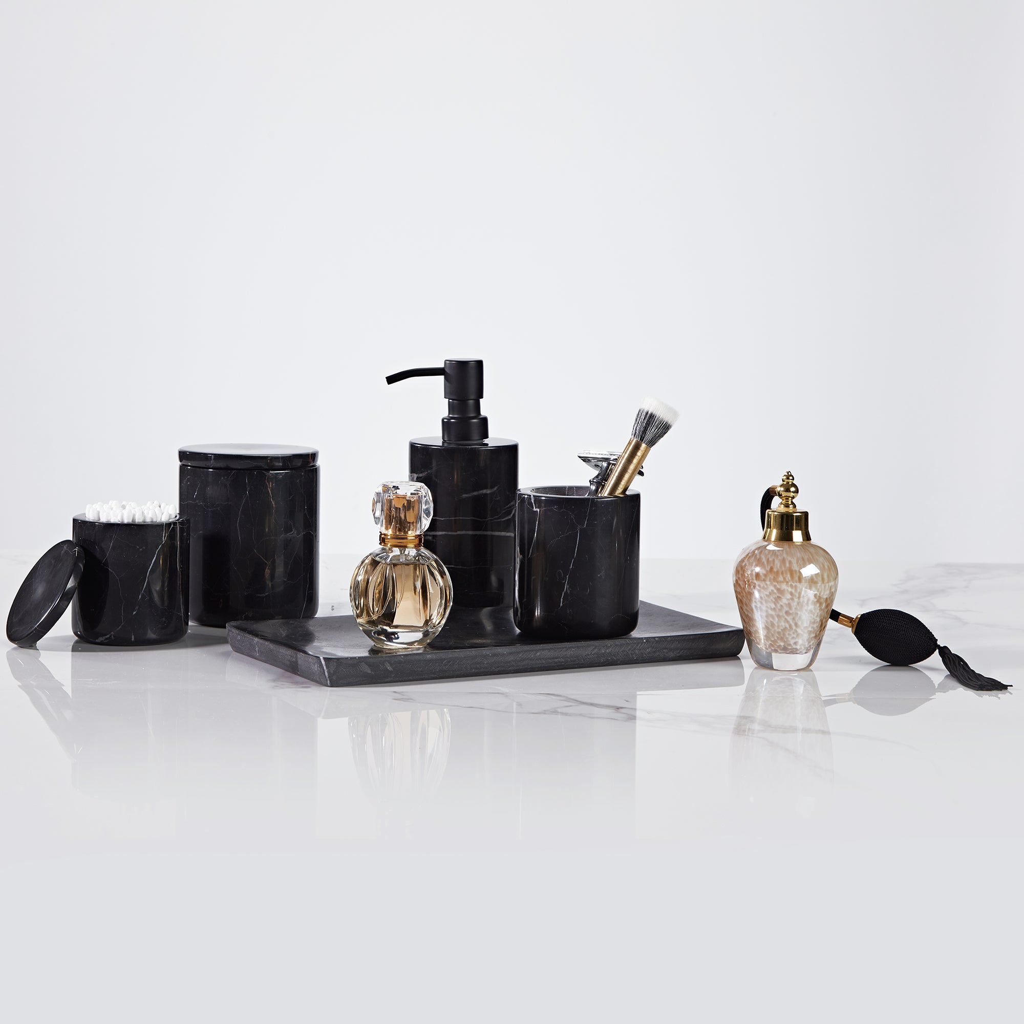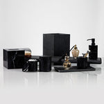 - Natural black marble bath accessories are elegant and luxurious additions to any bathroom.