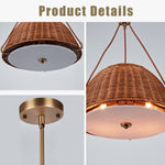Harwich Medium Woven Rattan Dome Pendant- Elegant Relaxed Jute String Design, Contract Grade - Ideal for Hanging Lights for Bedroom, Dining Room Lights, and Pendant Lights for Living Room