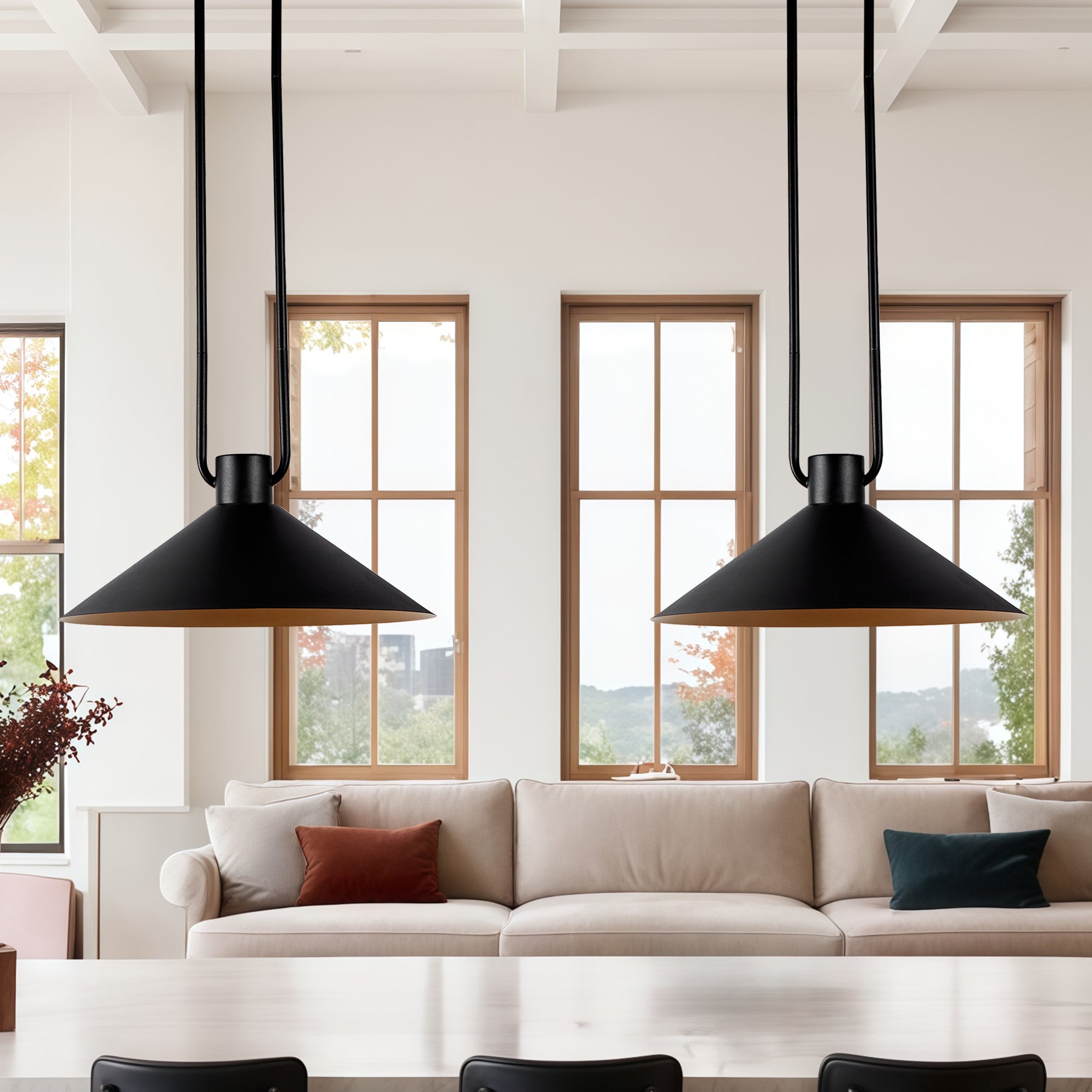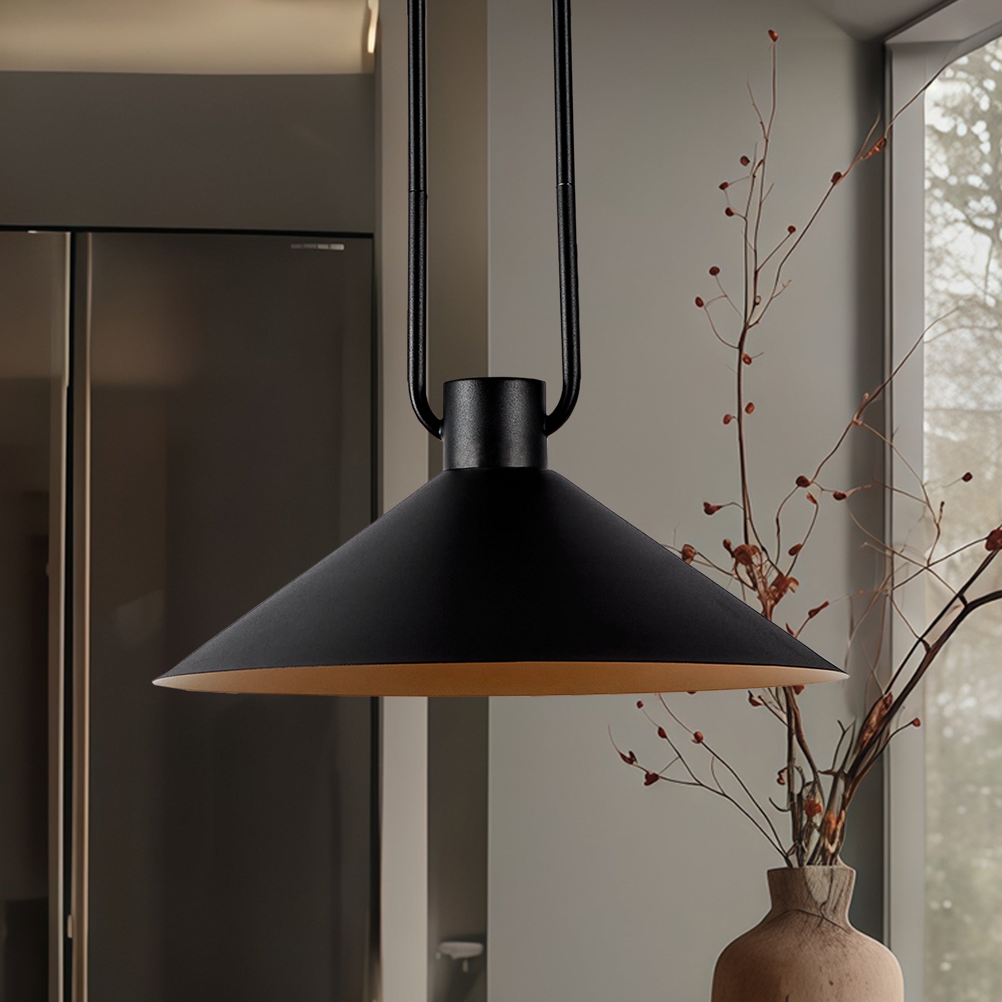 - A loop of slender tubing supports a conical shade that focuses light while providing a soft glow. Hung over a breakfast table or in multiples down a hallway or above a kitchen island, the elegant cone pendant offers an illuminating mix of task and ambient lighting.