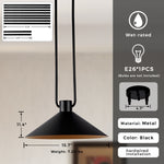 Industrial Pendant Light Over Kitchen Island, Adjustable Hanging Light Fixture with Conical Lampshade, Modern Ceiling Lighting for Dining Room, Bathroom, Restaurant, Bar