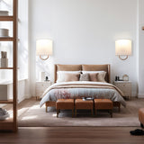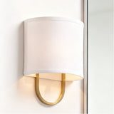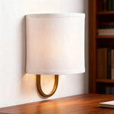 Iron Sconce with Demi-Lune Linen Shade - Hand-Forged Quality and Modern Design, Ideal for Bathroom and Modern Living Room Fixtures