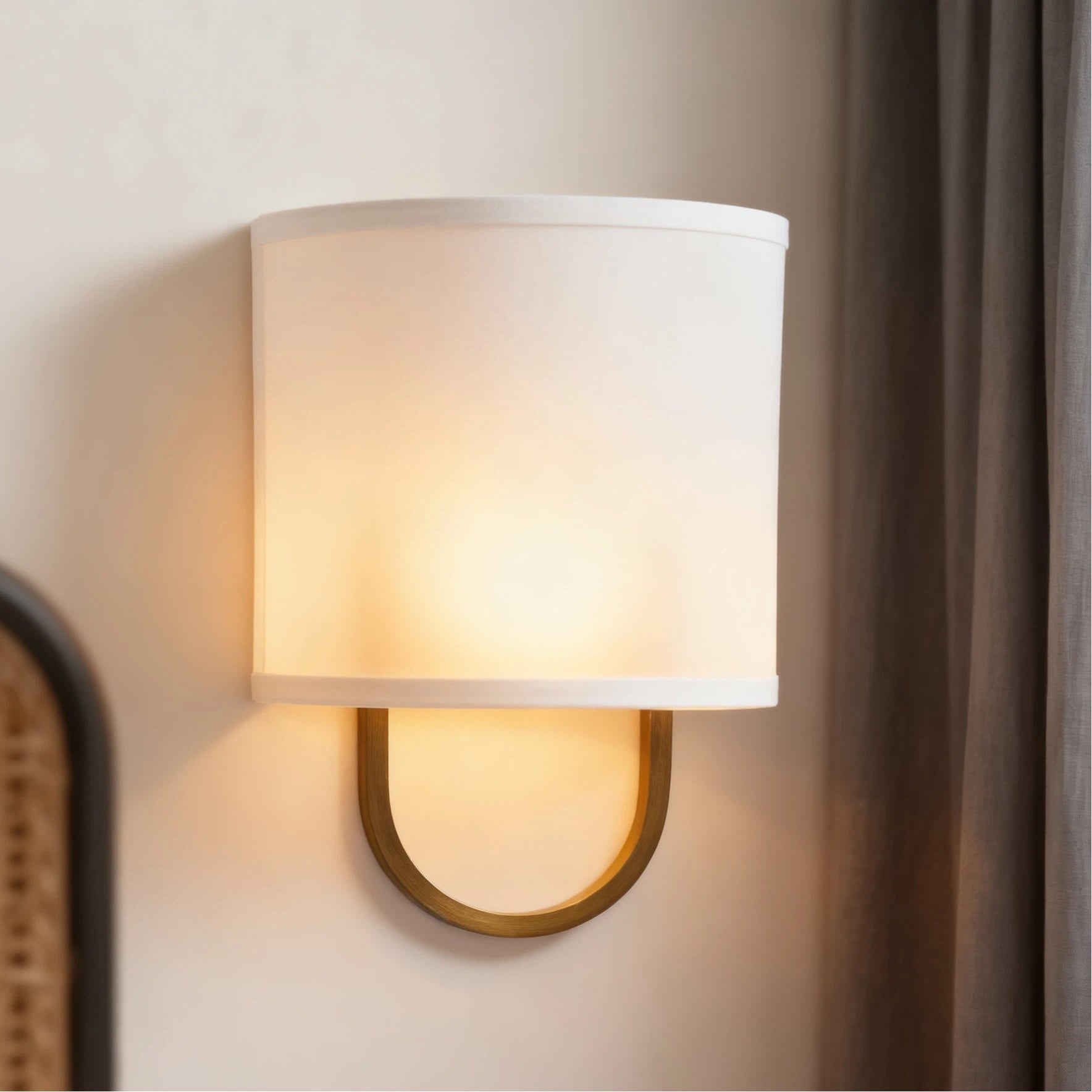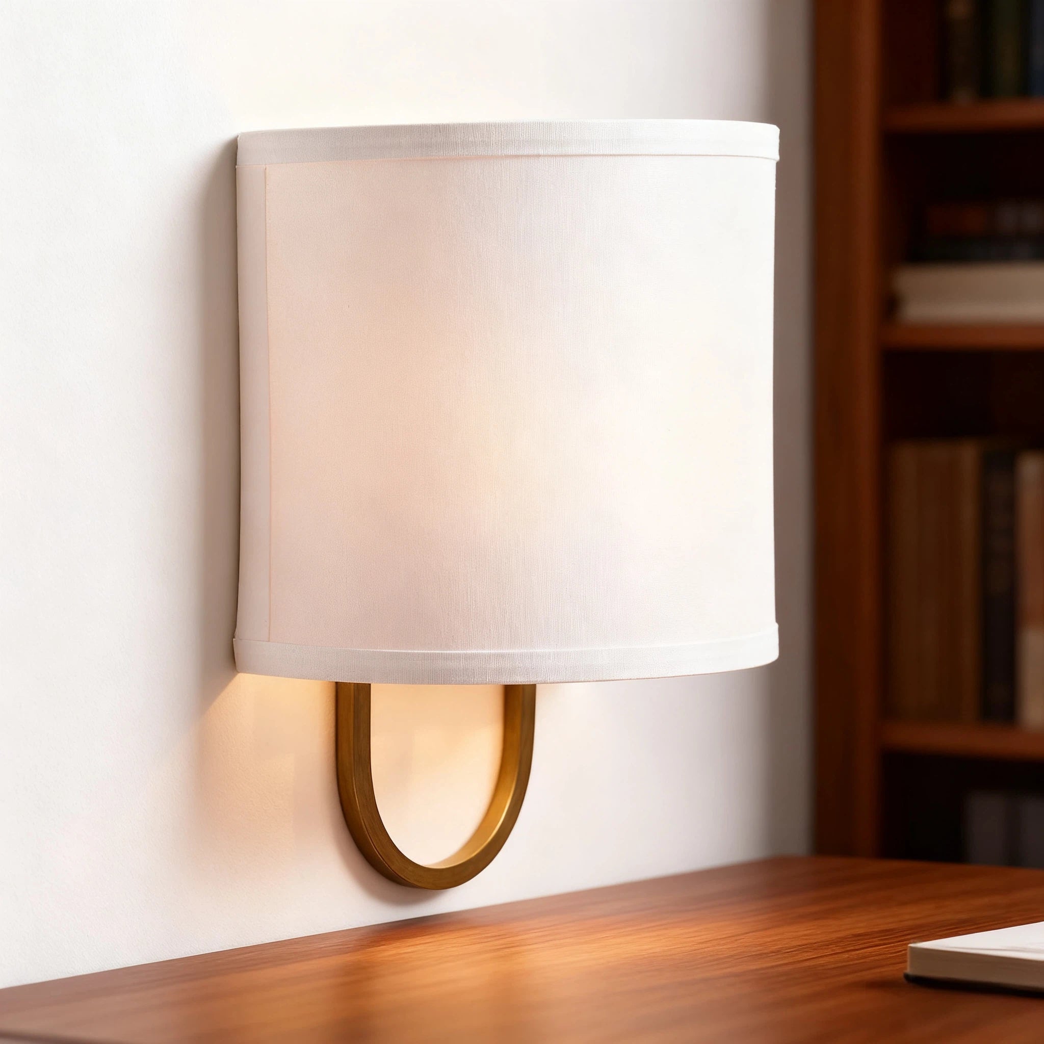 - Illuminate your home with our stylish Metal Sconce, the perfect blend of classic design and modern flair! With its uncomplicated silhouette inspired by the hand-forged quality of a carriage house gate and a chic demi-lune linen shade, this sconce lamp adds a touch of elegance to any space.