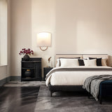 - Classic Yet Modern Design: This sconce features an uncomplicated silhouette inspired by the hand-forged quality of a carriage house gate, with a demi-lune linen shade that adds a classic texture while maintaining a sleek, modern look.