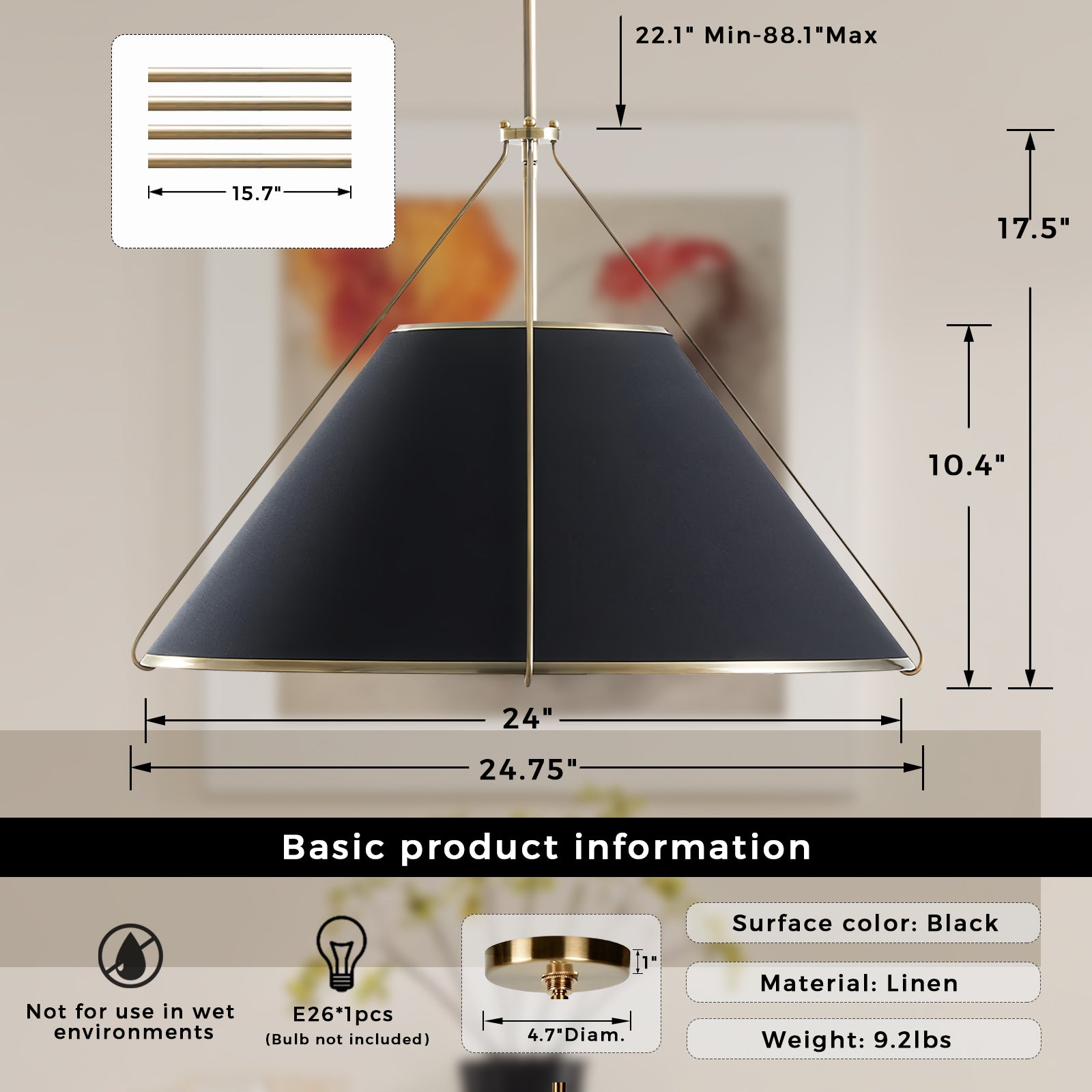 - With a diameter of 24.75" and a height of 17.25", this pendant light is versatile and ideal for various spaces.