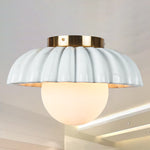 Luxury Marble Radiance Flush Mount: Vintage Fluted Marble with Glossy White Globe Shade for Bedroom Ceiling Fixtures, Living Room Ceiling Lamps, or Bedroom Light Fixtures