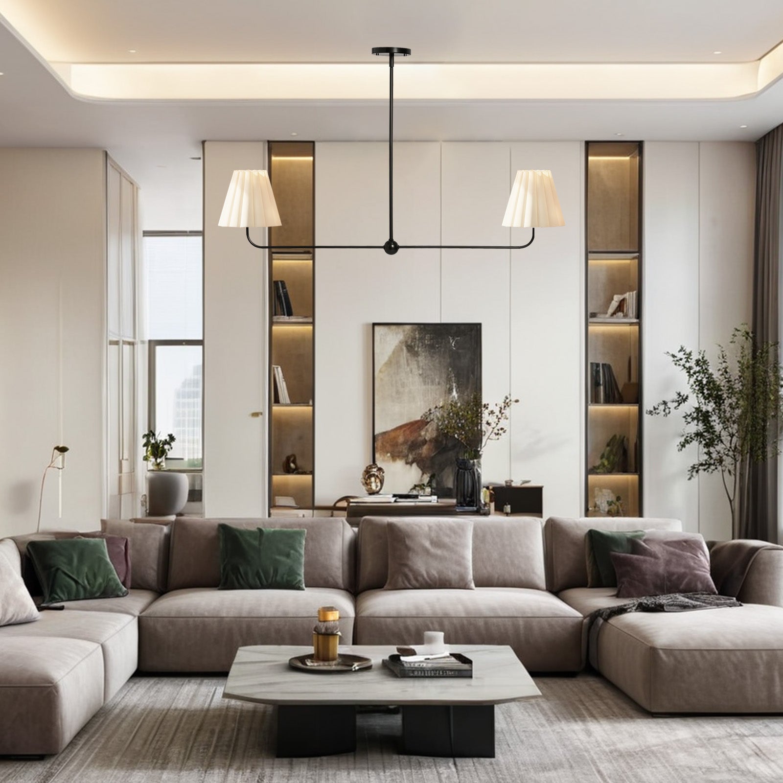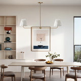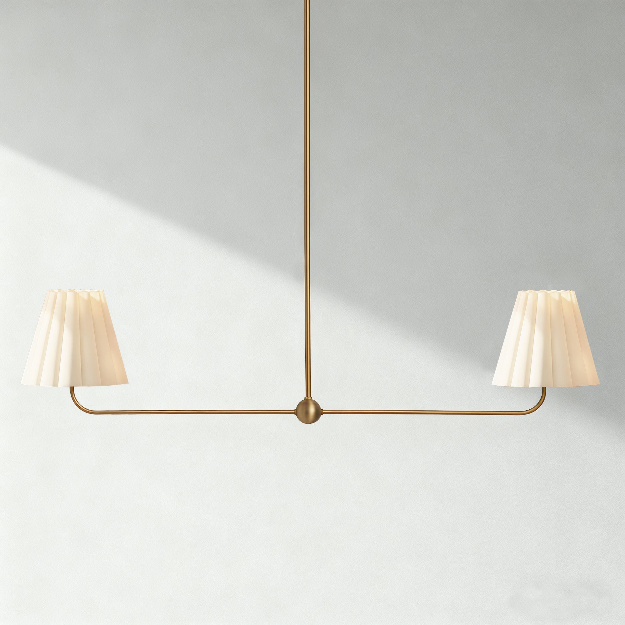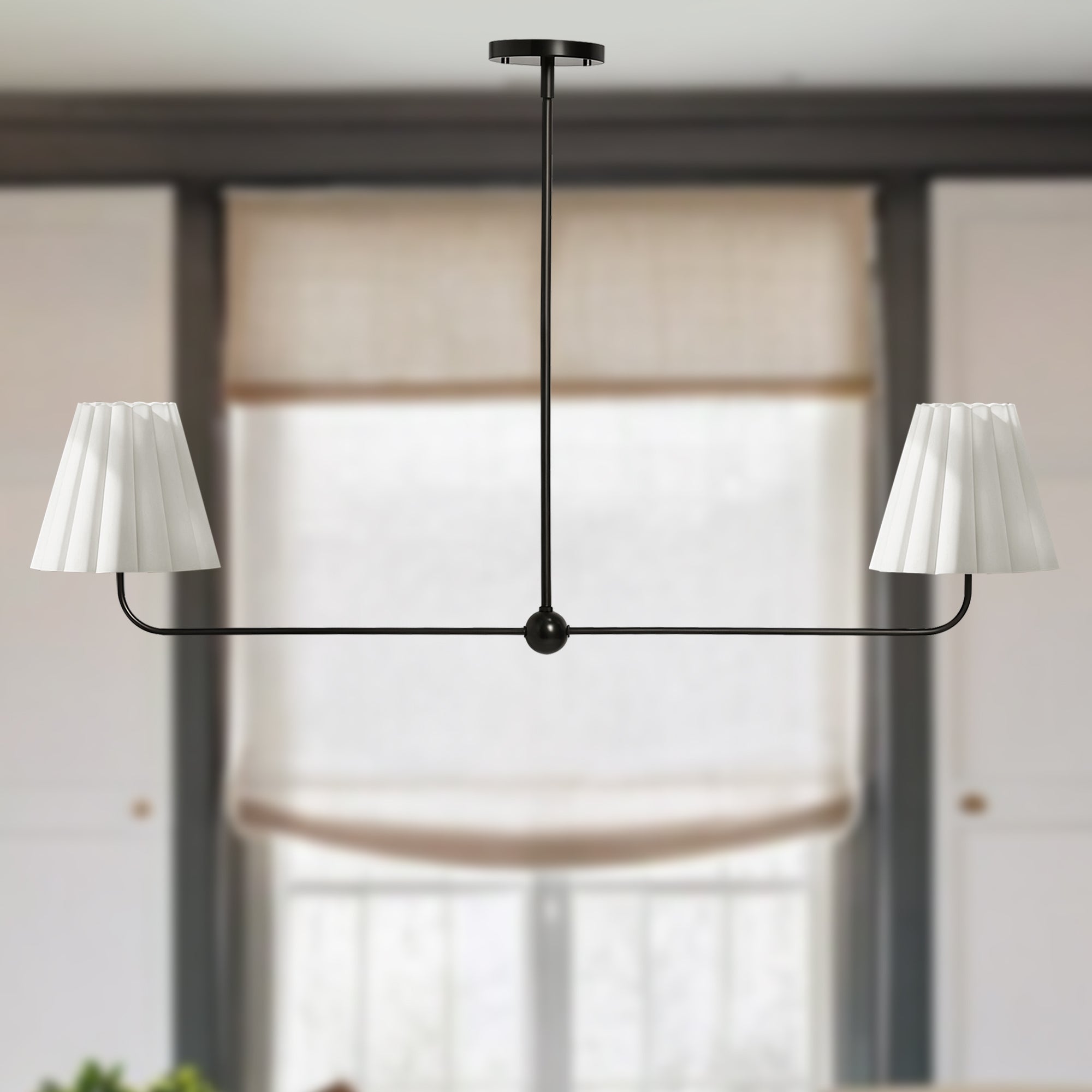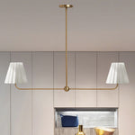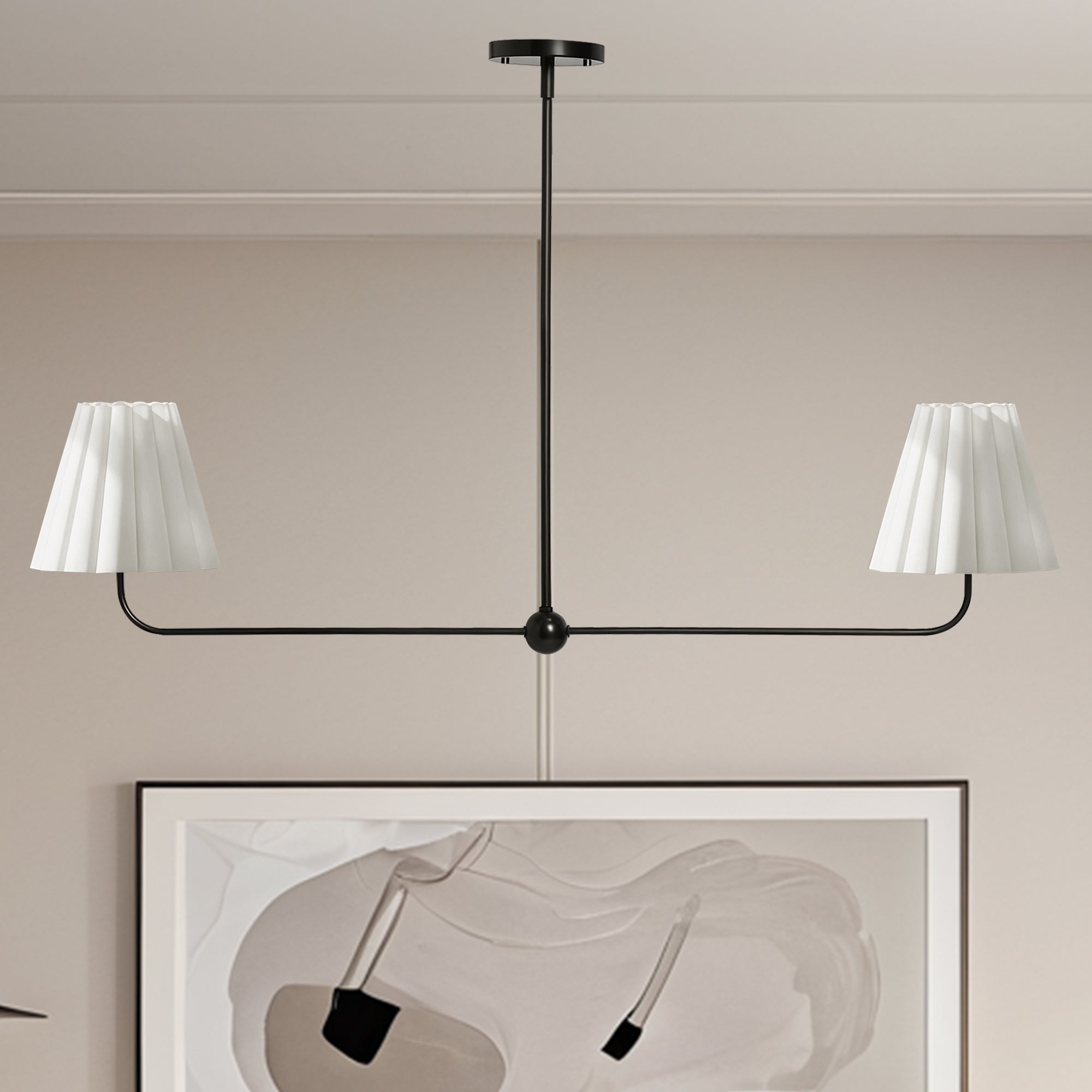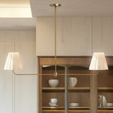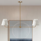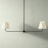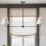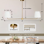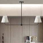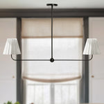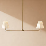Kitchen Island Lighting with Pleated Linen Shade, 2 Lights Linear Chandelier with Adjustable Height (18-46"), Modern Ceiling Hanging Pendant Light for Dining Room, Living Room, Bedroom