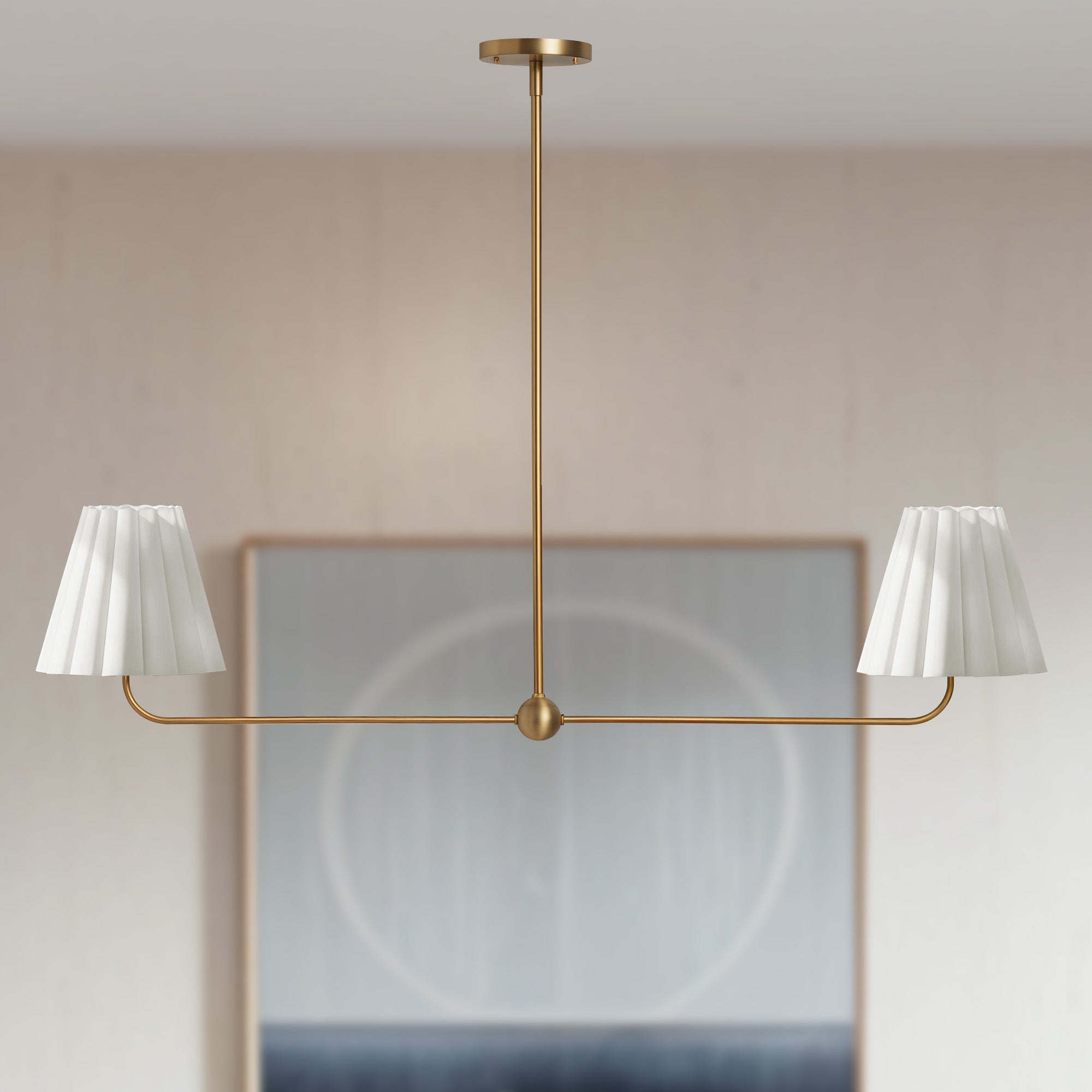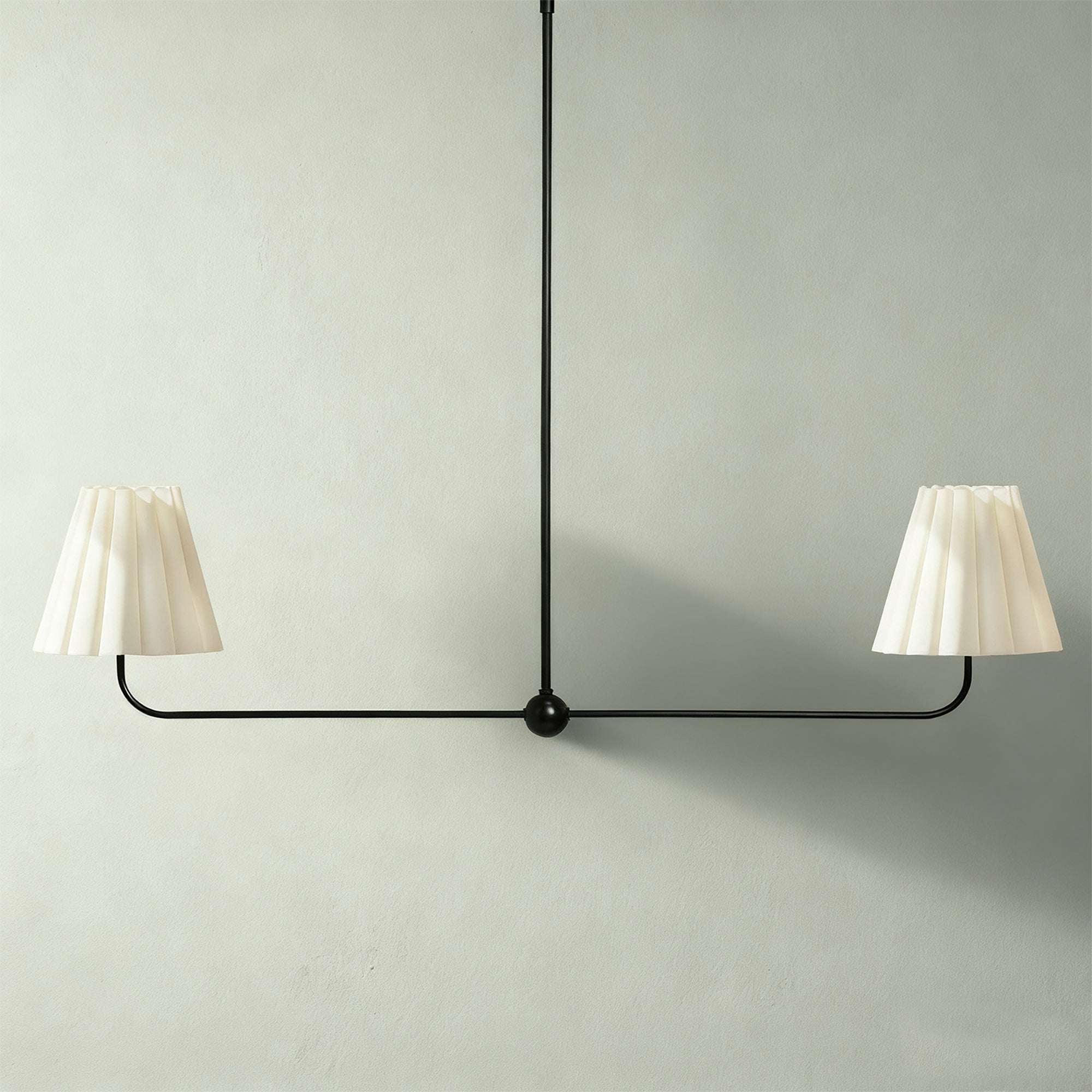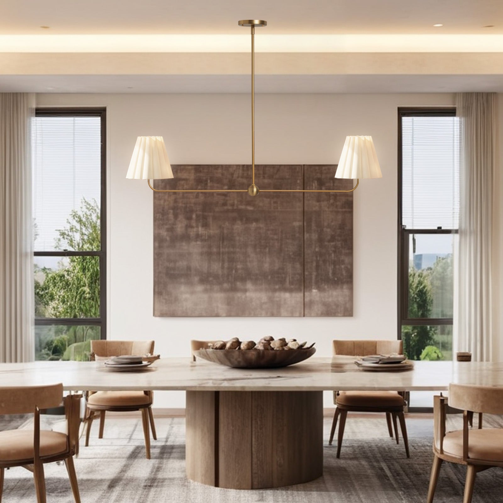 Kitchen Island Lighting with Pleated Linen Shade, 2 Lights Linear Chandelier with Adjustable Height (18-46"), Modern Ceiling Hanging Pendant Light for Dining Room, Living Room, Bedroom