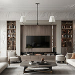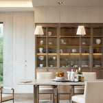 - Tapered white linen shades provide modern proportions and sophistication to the piece.
