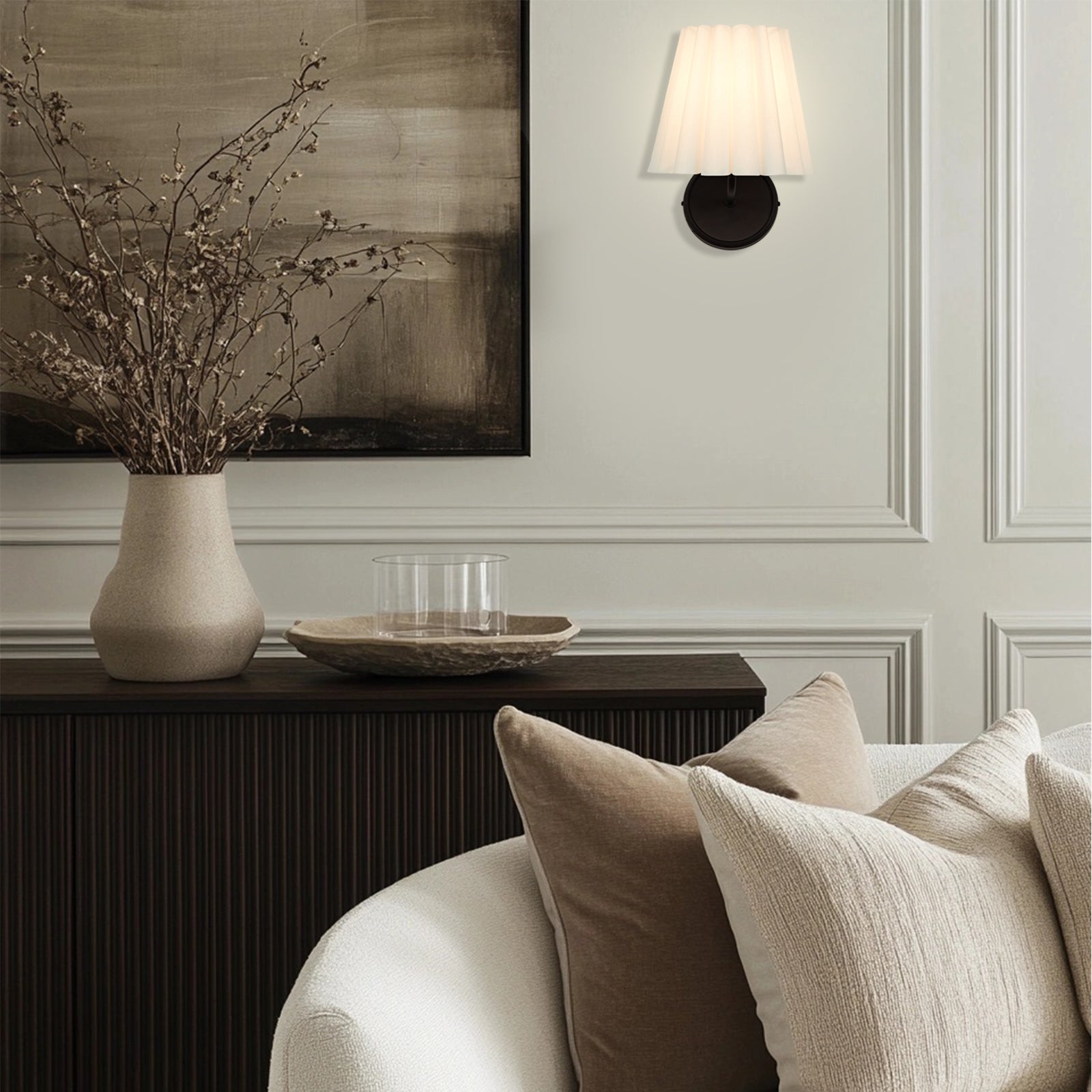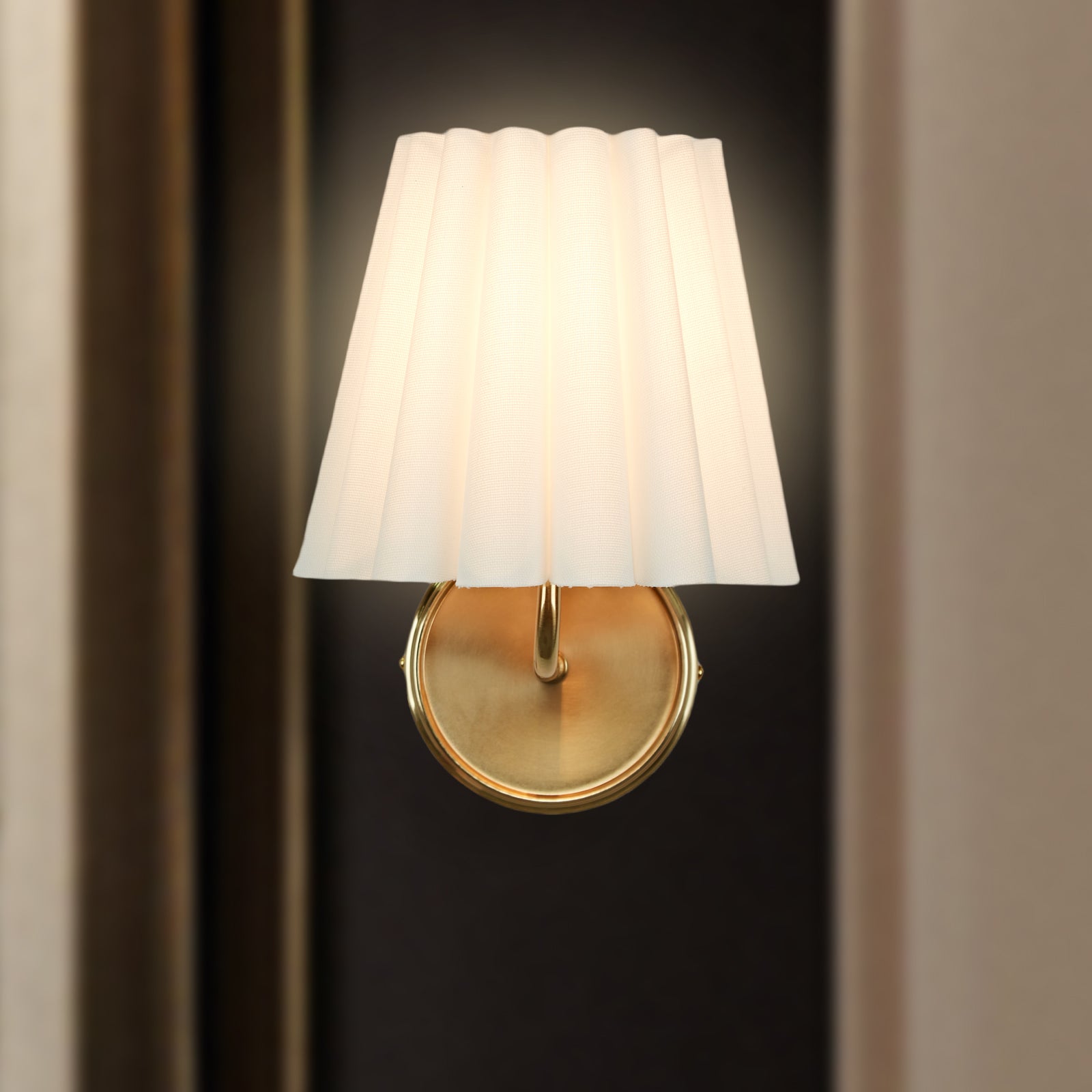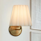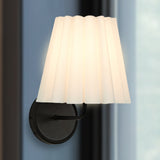 The cleanly ruffled shade of the Matthews sconce light brings a modern touch to a classic design. This sconce works perfectly in pairs or as a standout feature for transitional decor.