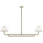 Mid-Century 2-Light Pendant Light with White Linen Shades, 54" Farmhouse Linear Chandelier with Wood Arms, Kitchen Island Hanging Light Fixture for Living Room, Dining Room