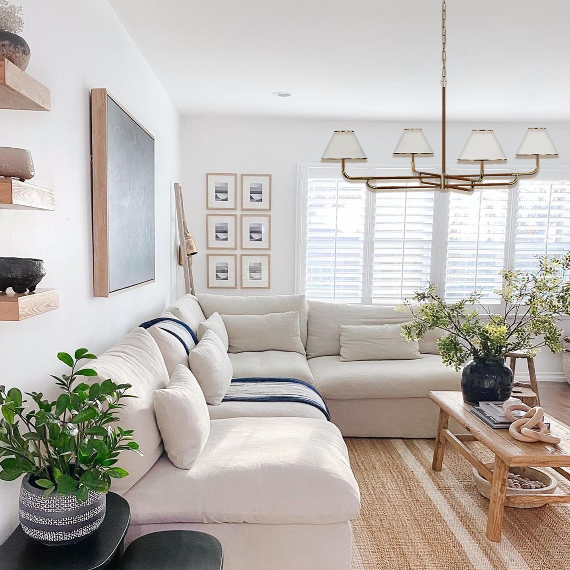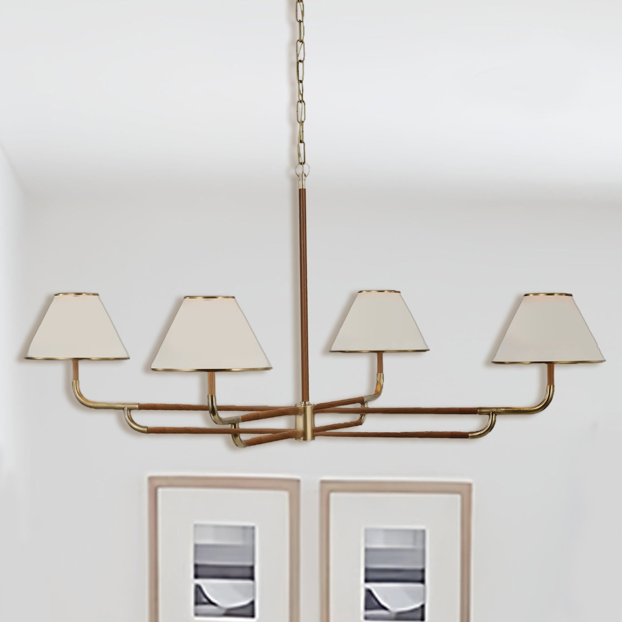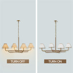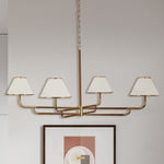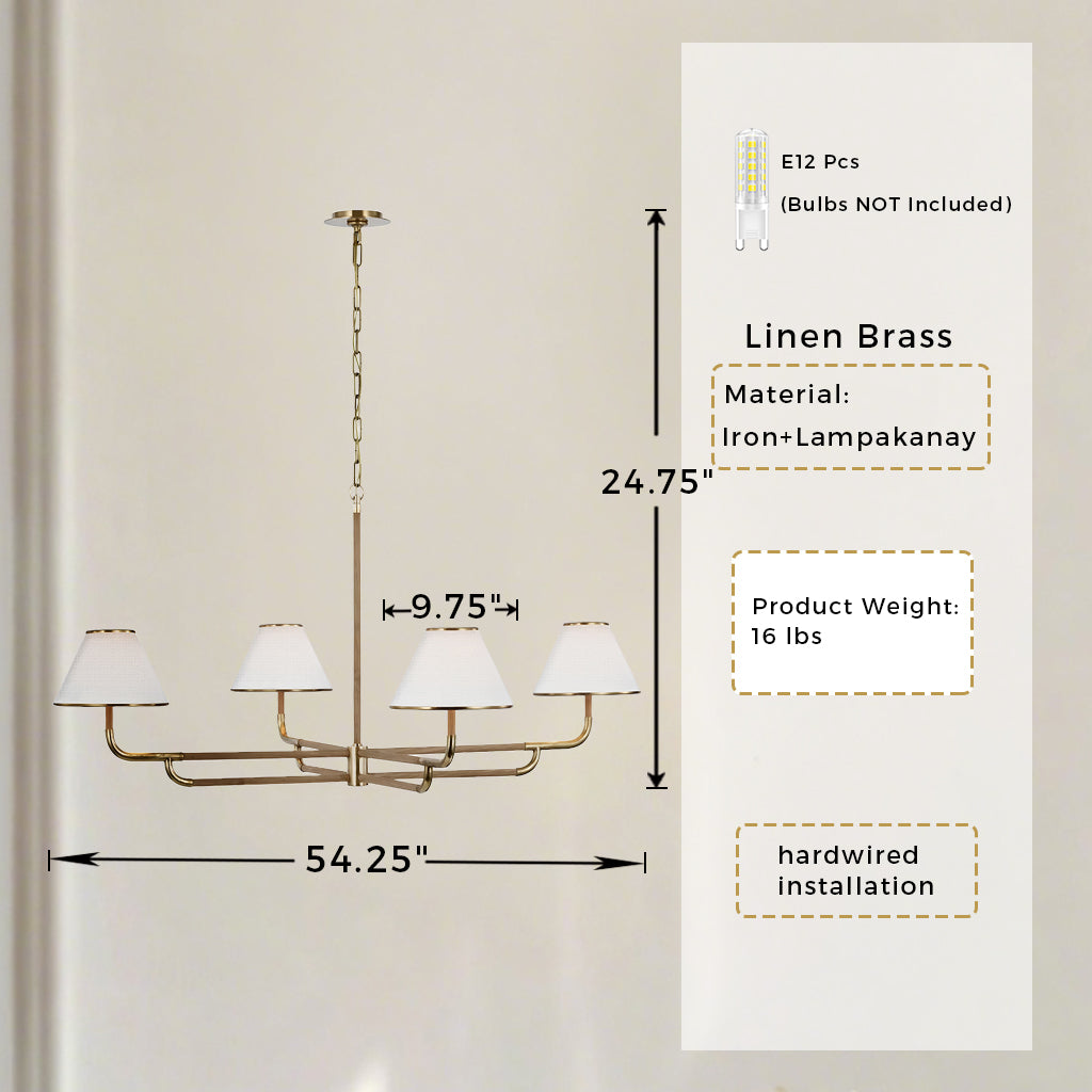 - Our stunning Linen Chandelier, a versatile lighting fixture perfect for your dining room, bedroom, or living room. This chandelier features a modern and angular design with linen shades that add a touch of sophistication to any space.