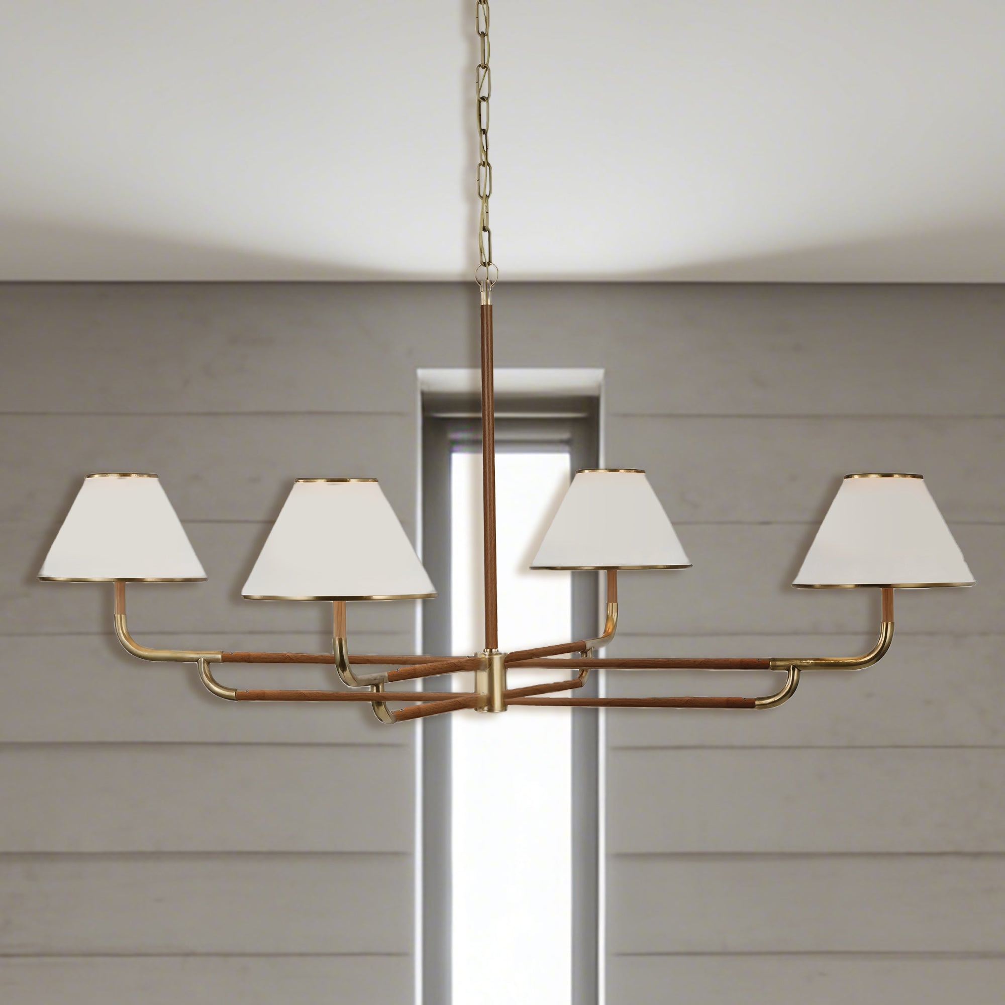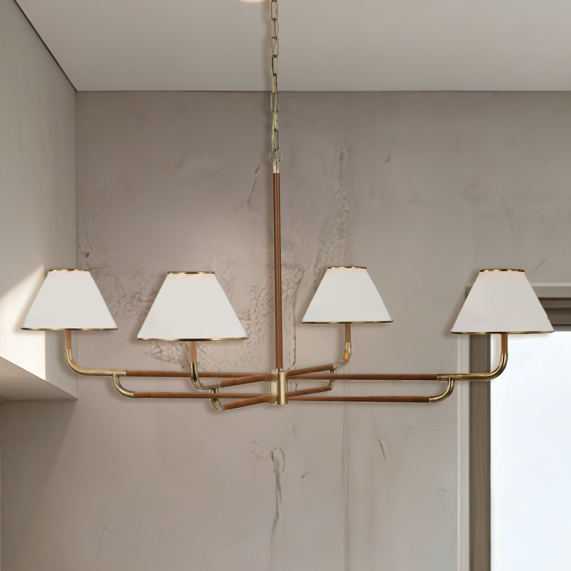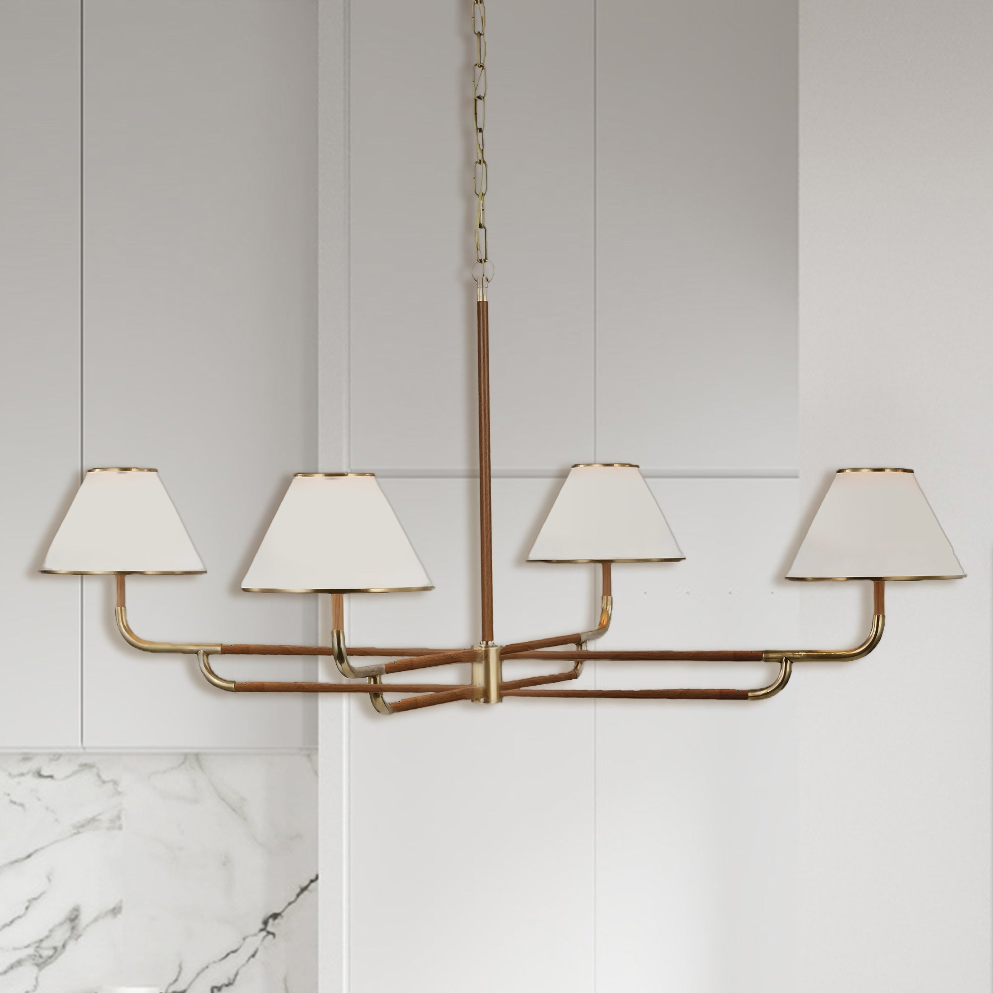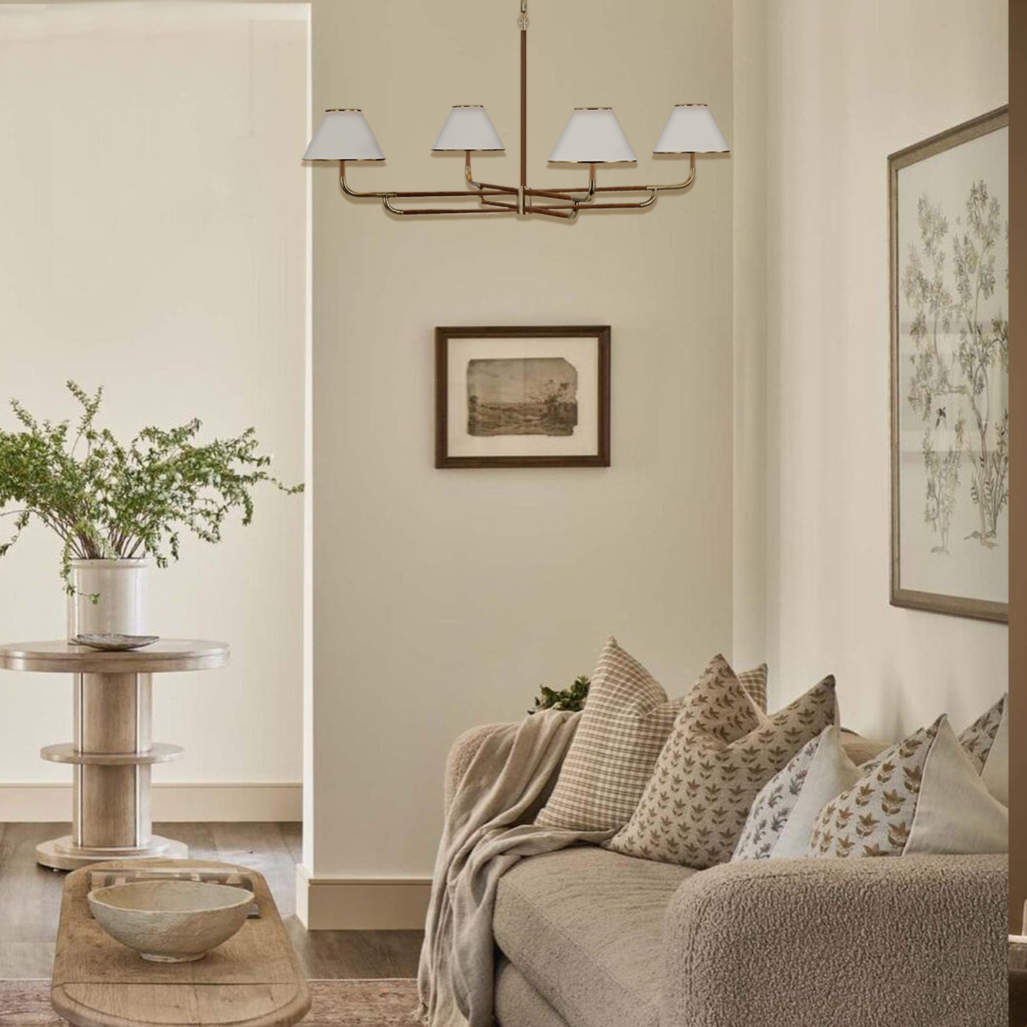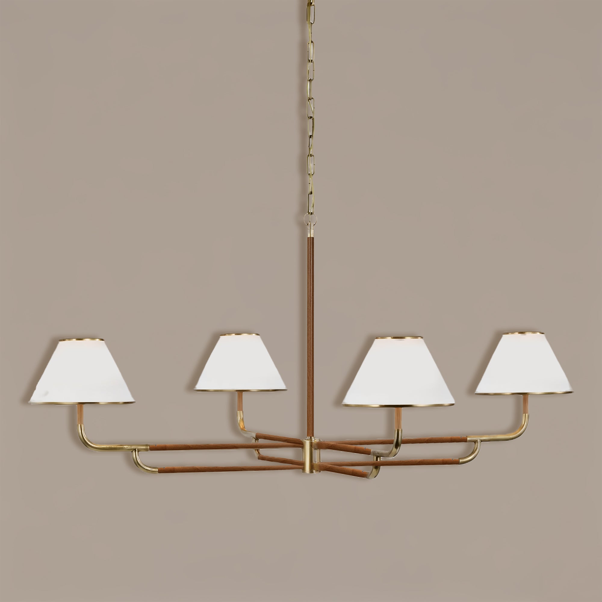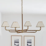 Mid-Century 4-Light Rigby Grande Chandelier, Linen Shades, Classic Ceiling Light for Foyer, Living Room, Dining Room