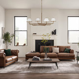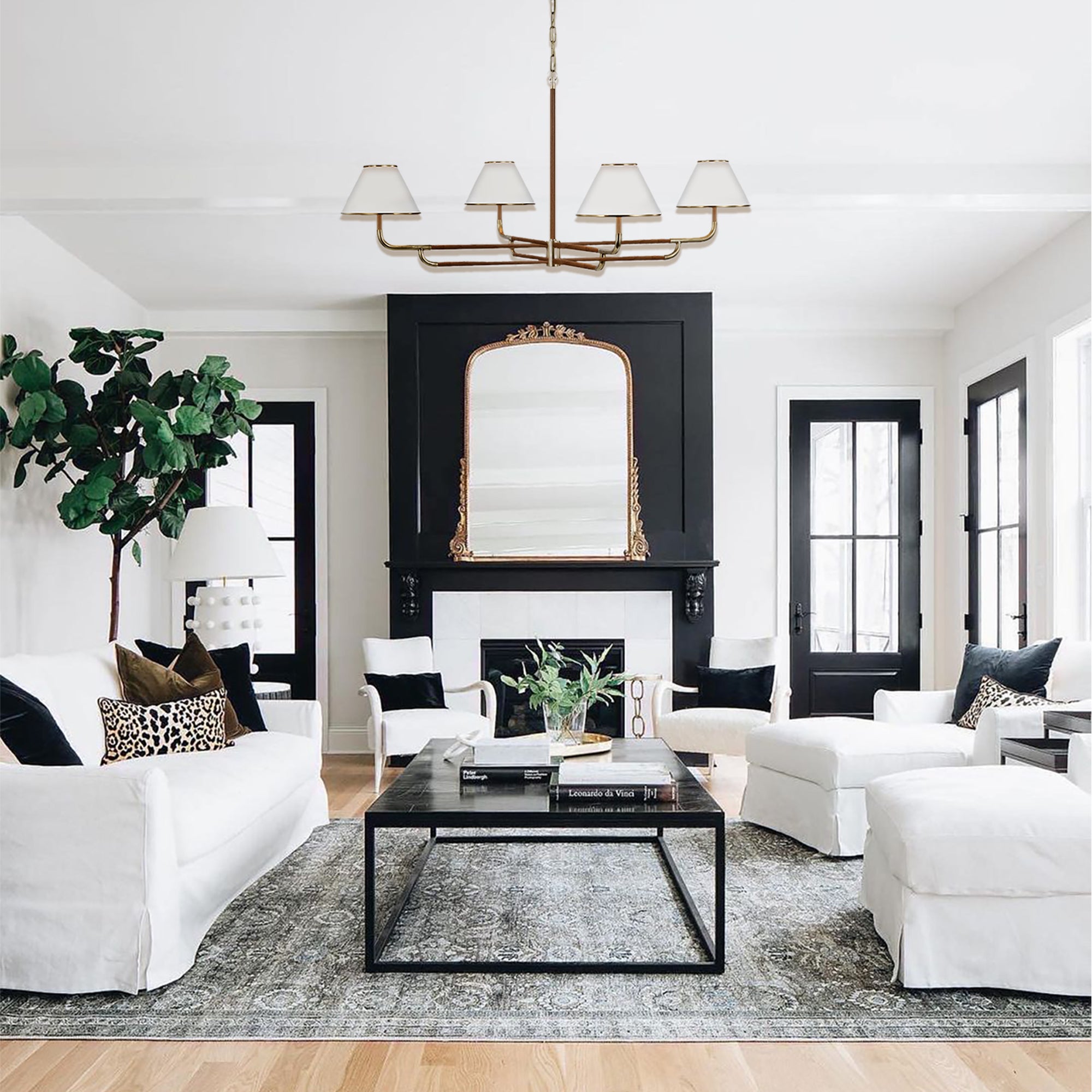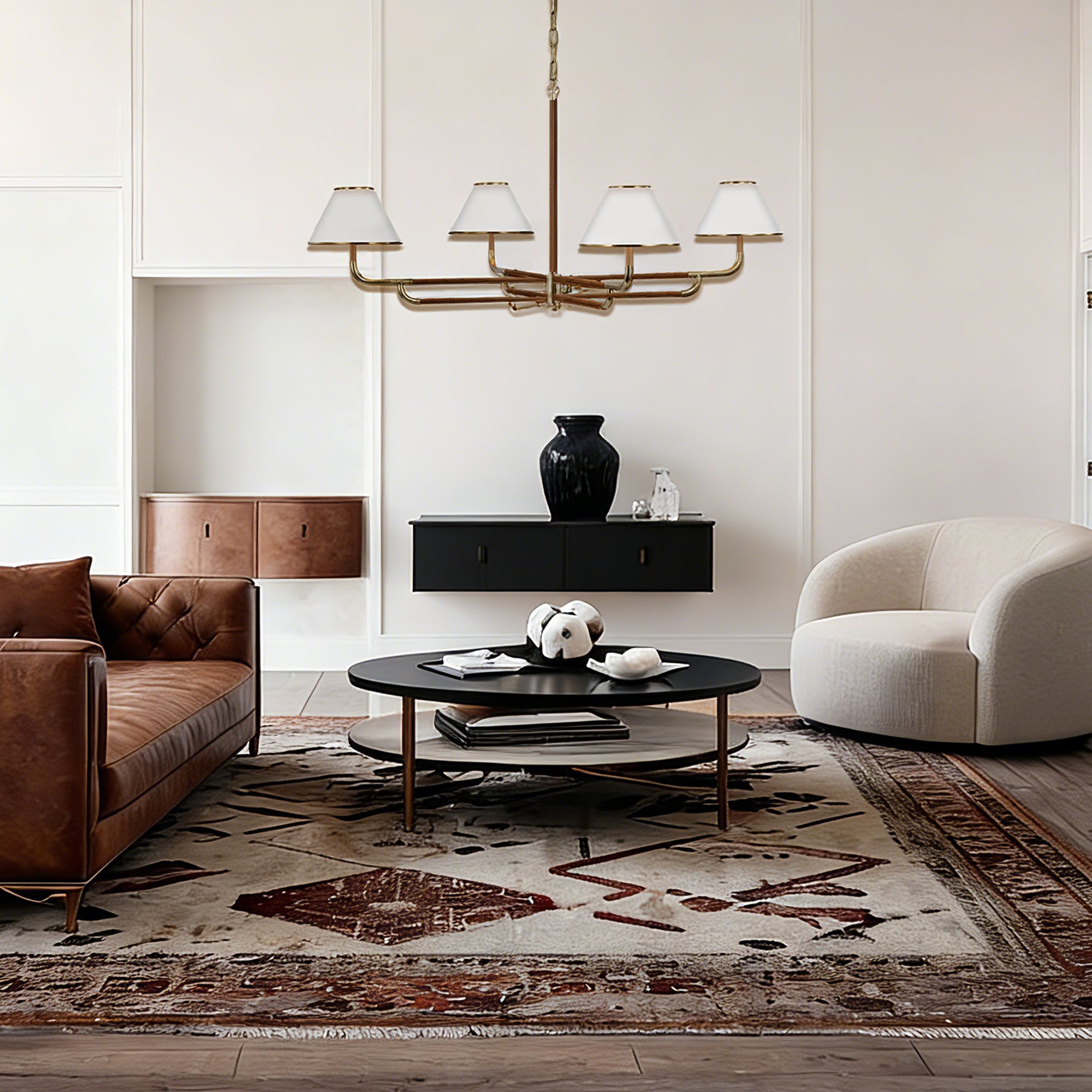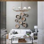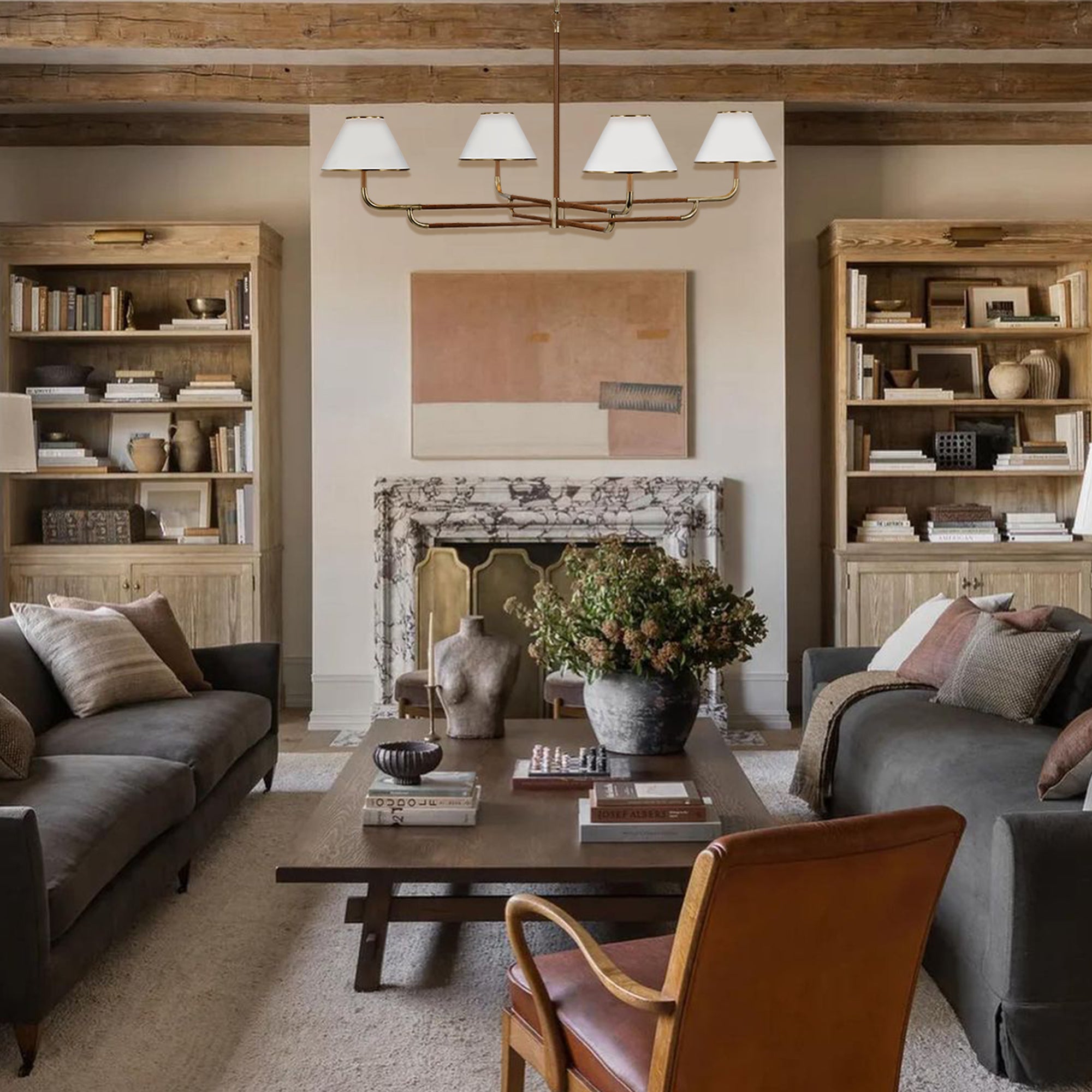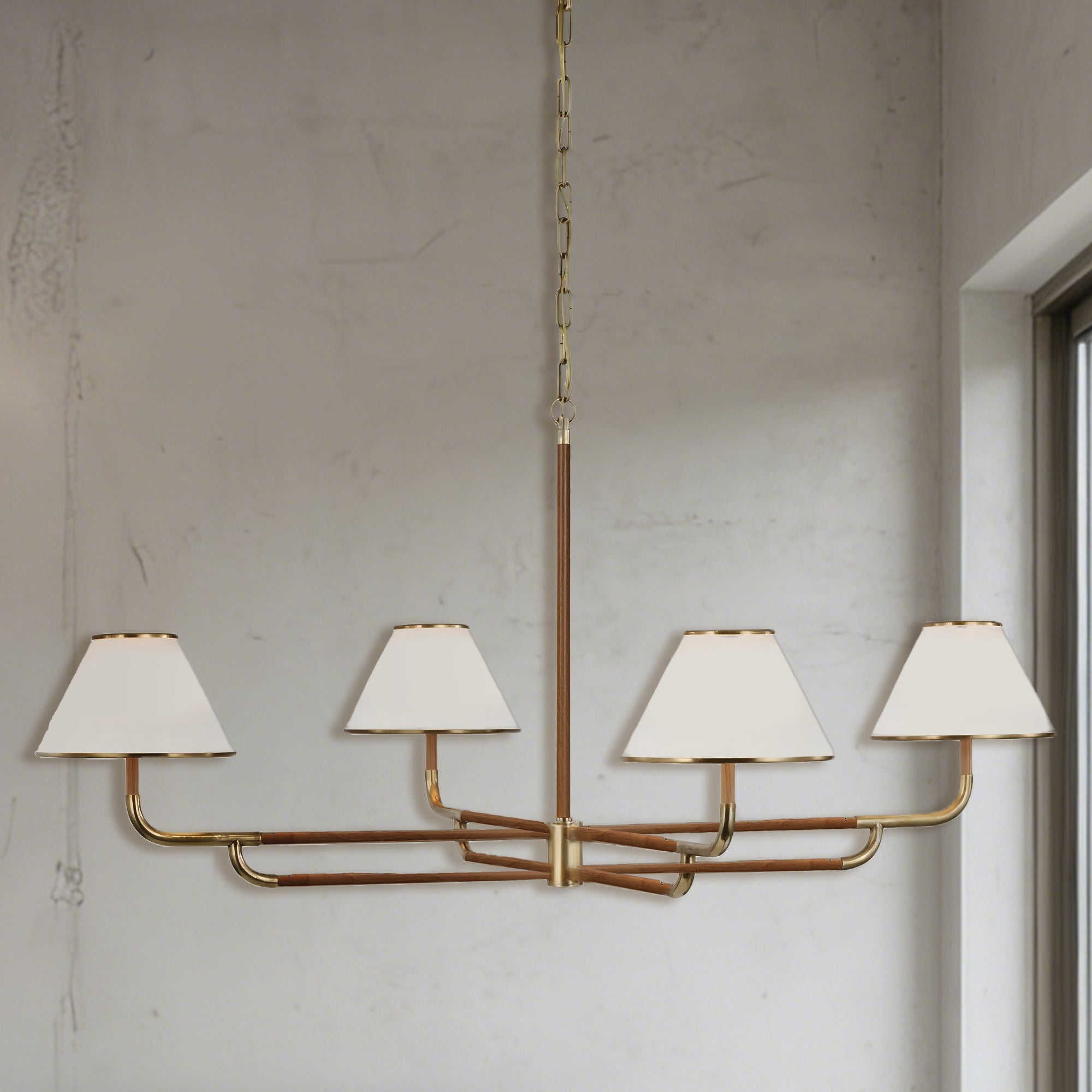 Mid-Century 4-Light Rigby Grande Chandelier, Linen Shades, Classic Ceiling Light for Foyer, Living Room, Dining Room