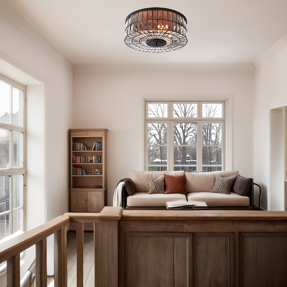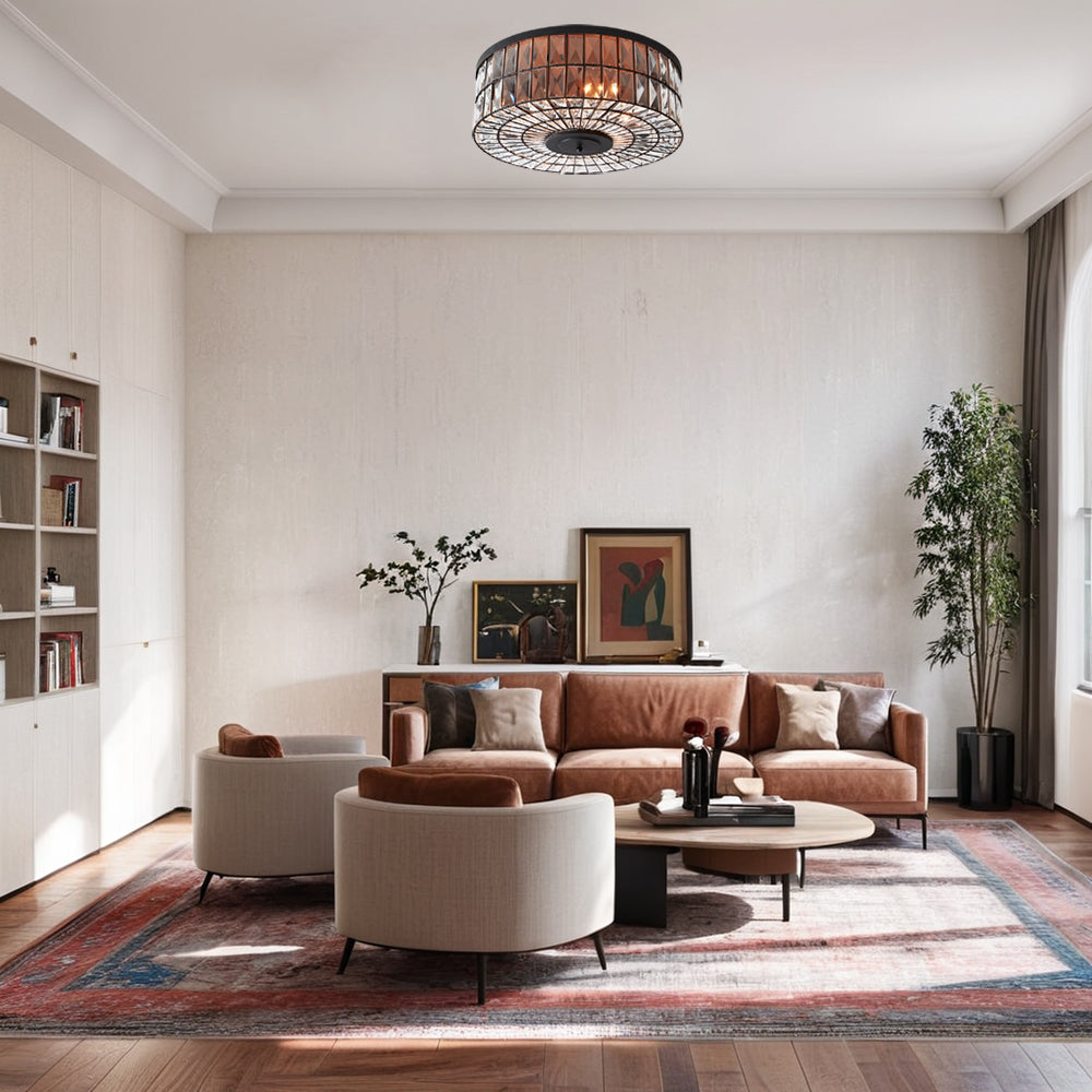 - Looking for hanging lights for the living room? The Crystal Flush Mount shines brightly, casting a warm glow that invites relaxation and conversation. It also works wonderfully as a dining area flush mount, ensuring your meals are beautifully illuminated.