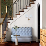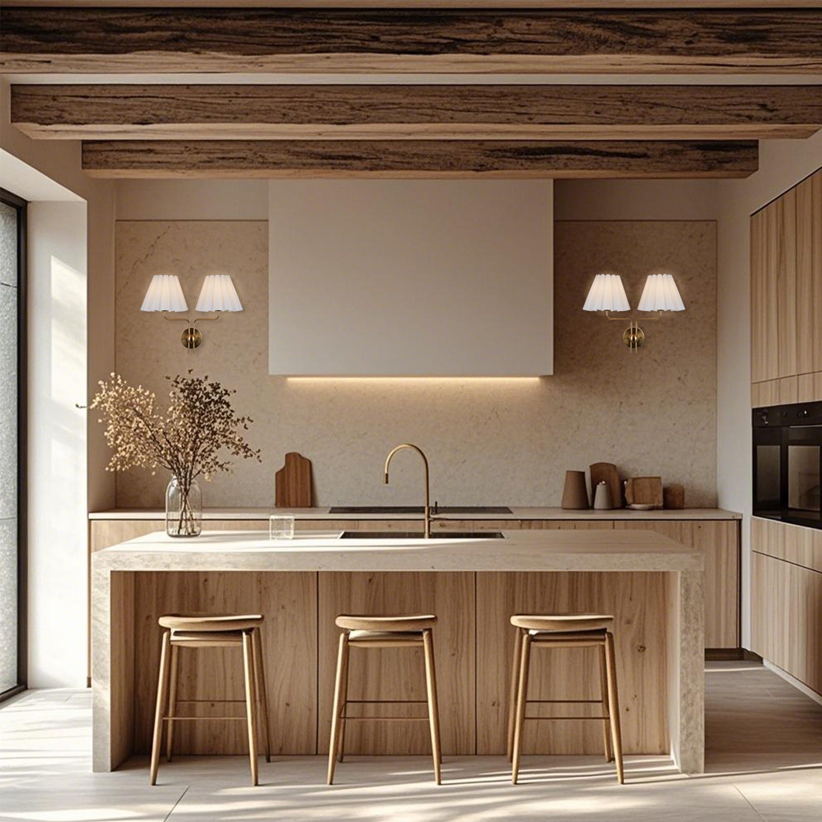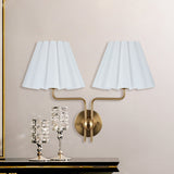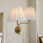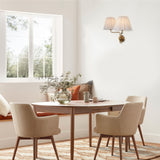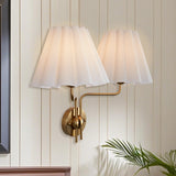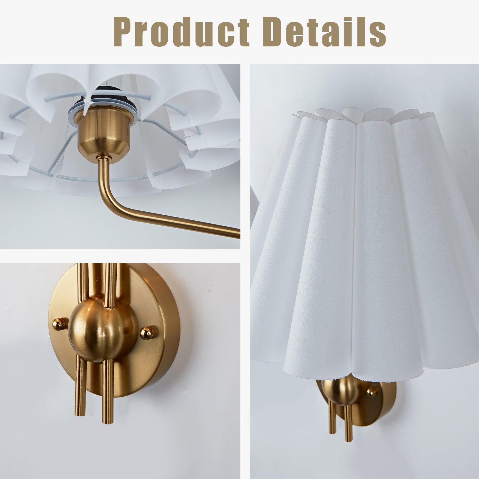 - Not just for living rooms, this versatile sconce works beautifully as wall lights for bedroom settings, kitchen and entryway, creating a warm and inviting atmosphere. Use them in pairs for a balanced look or as a chic standalone piece to enhance your decor. Crafted from durable steel with a sleek brass finish and a white linen shade, it complements any design scheme effortlessly.
