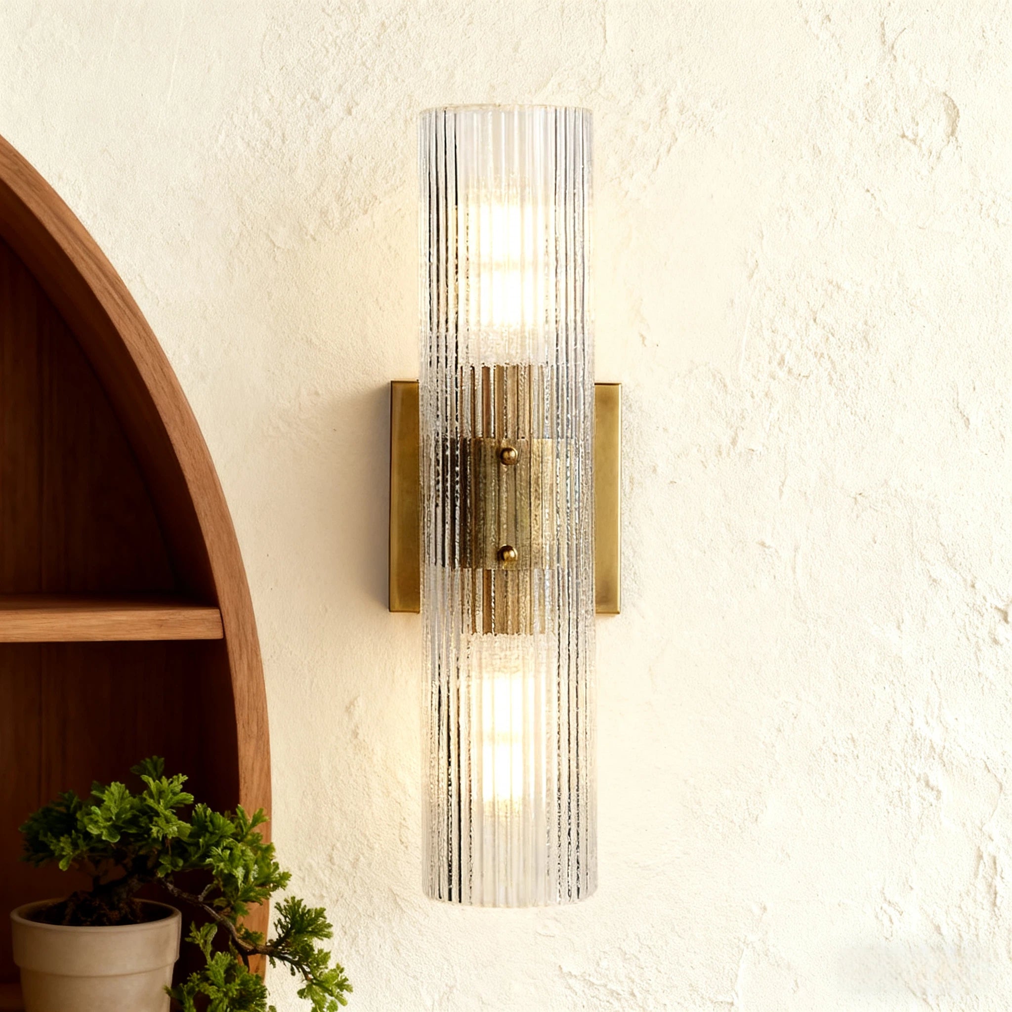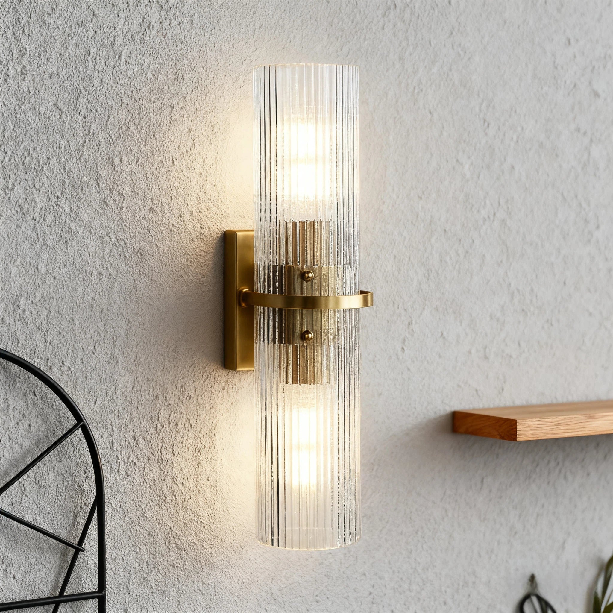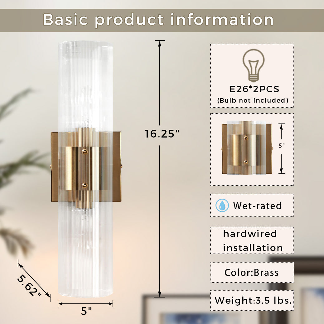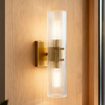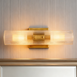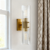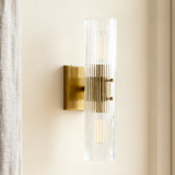 Modern Soleil Fluted Glass 2-Light Wall Sconce - Perfect for a hallway or flanking a painting or Bathroom, Bedroom Wall Sconces