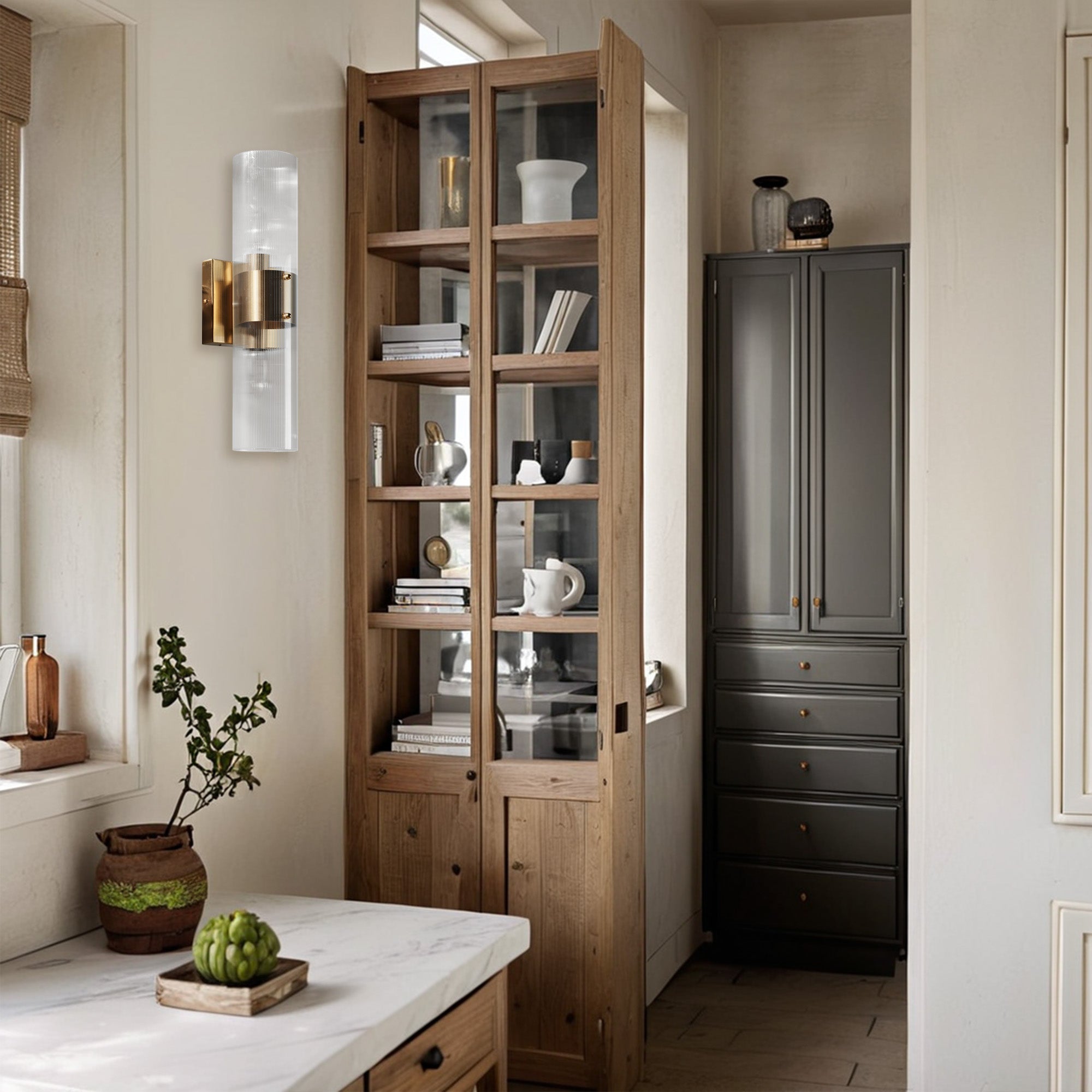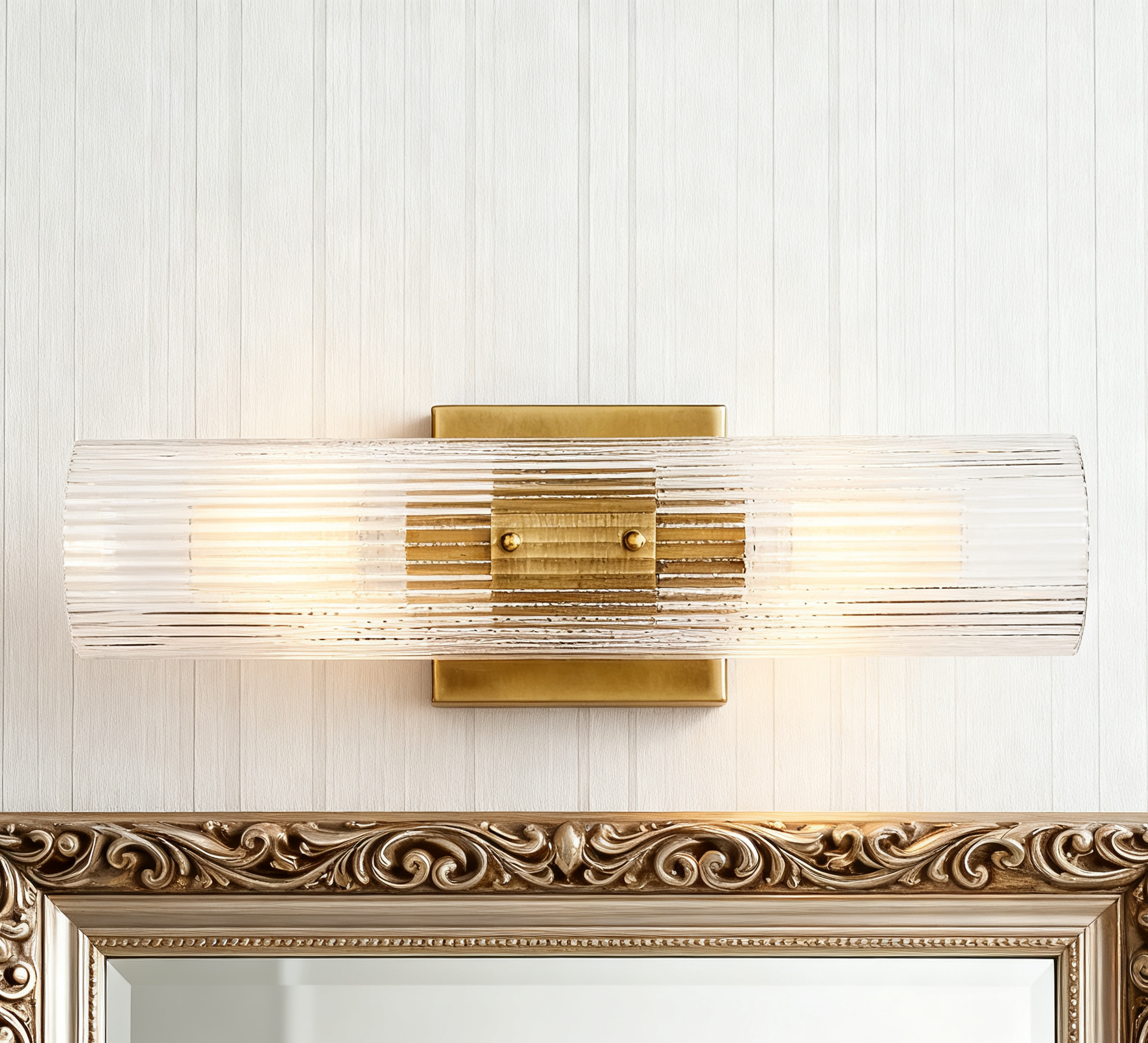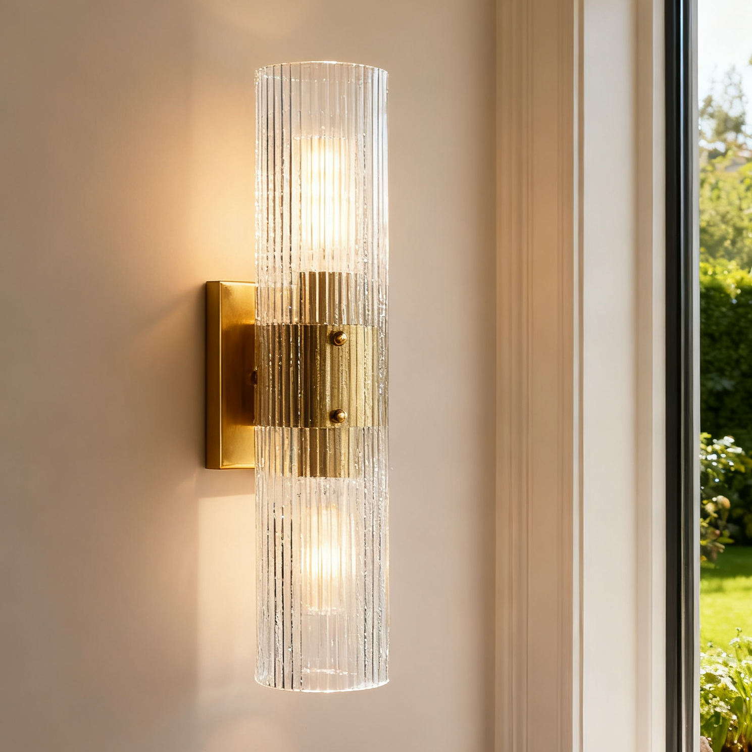 Modern Soleil Fluted Glass 2-Light Wall Sconce - Perfect for a hallway or flanking a painting or Bathroom, Bedroom Wall Sconces