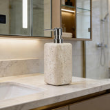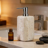 Nature's Touch Travertine Bath Accessories Soap Pump with Organic Edge and Unique Variations for Rustic Bathroom Decor