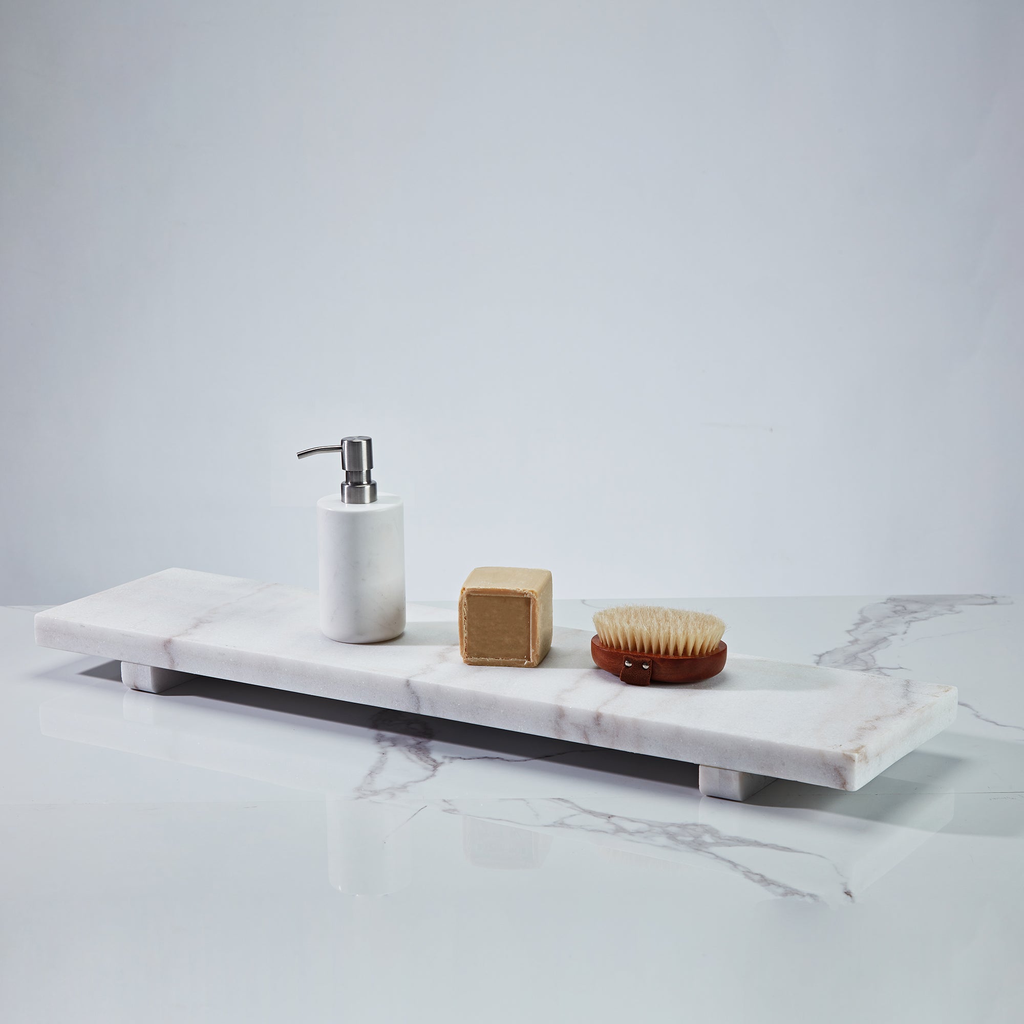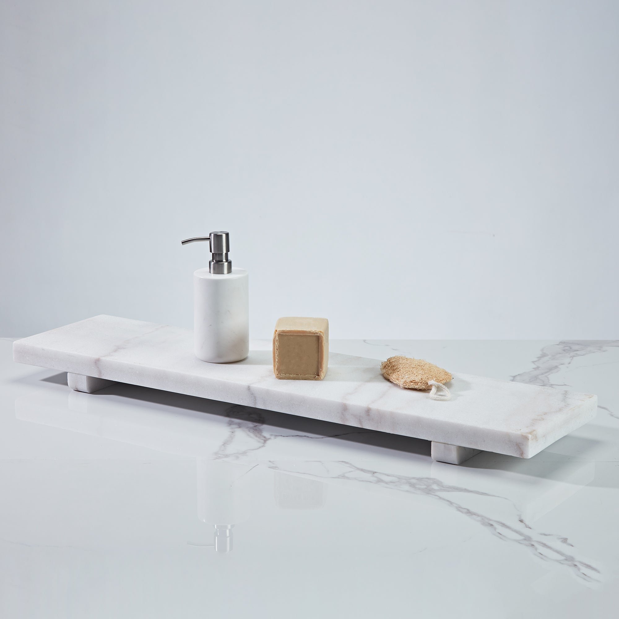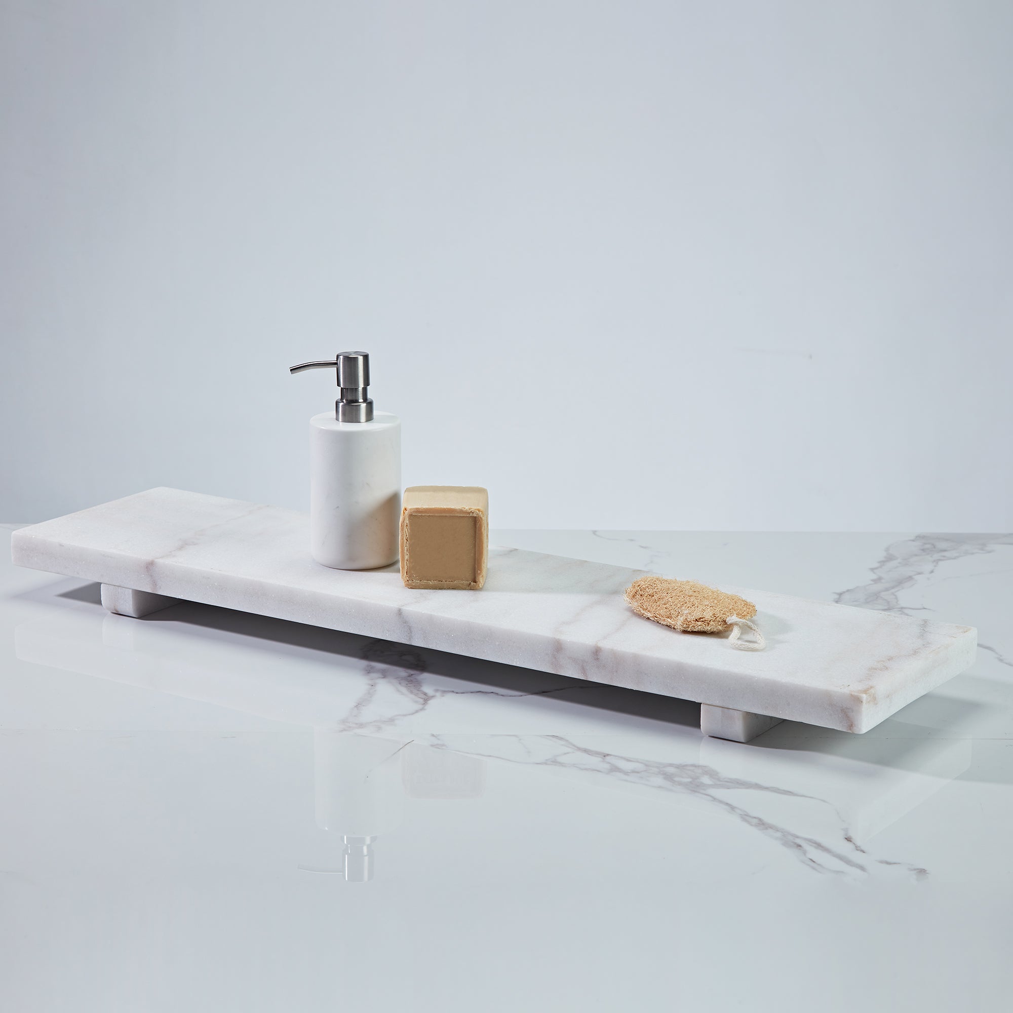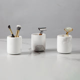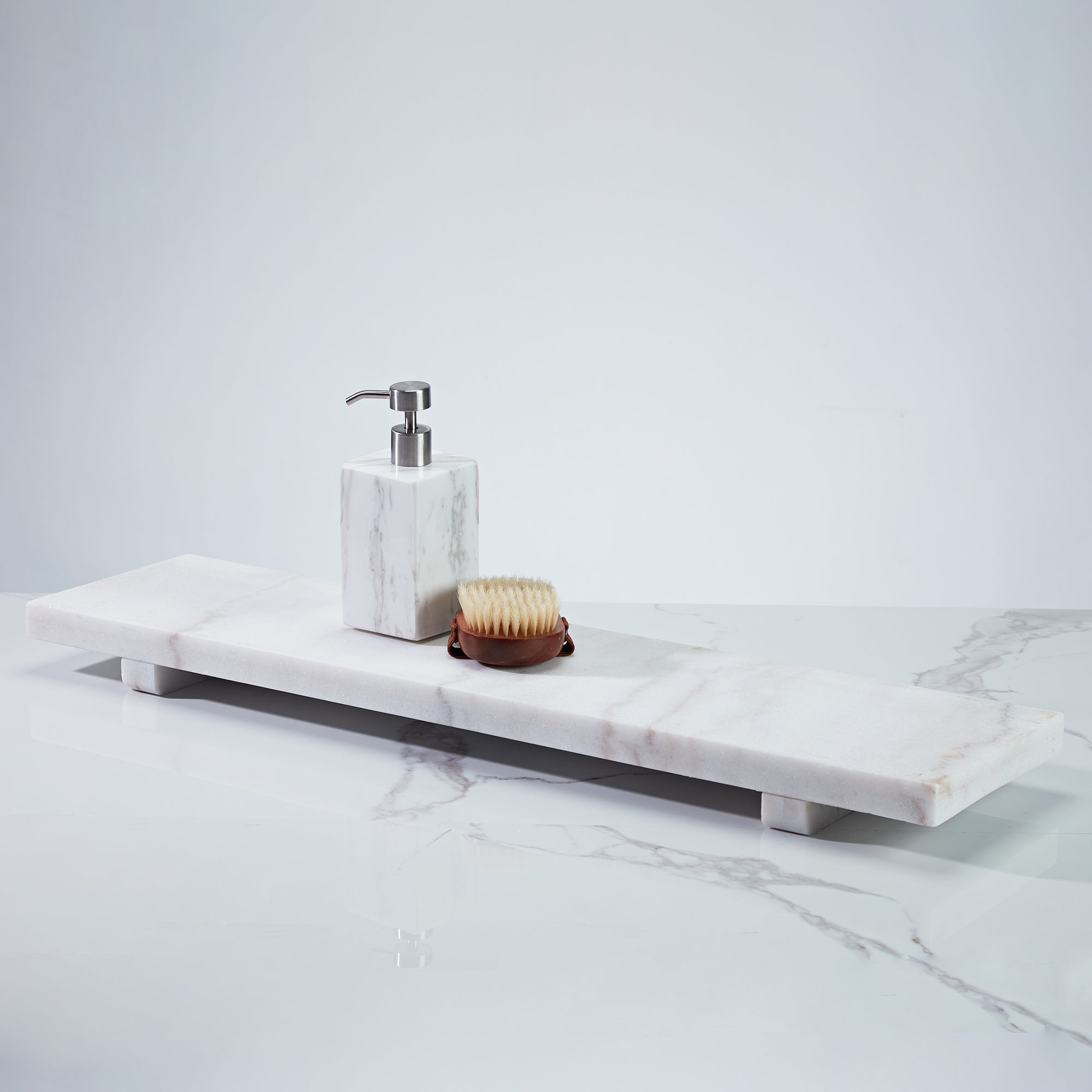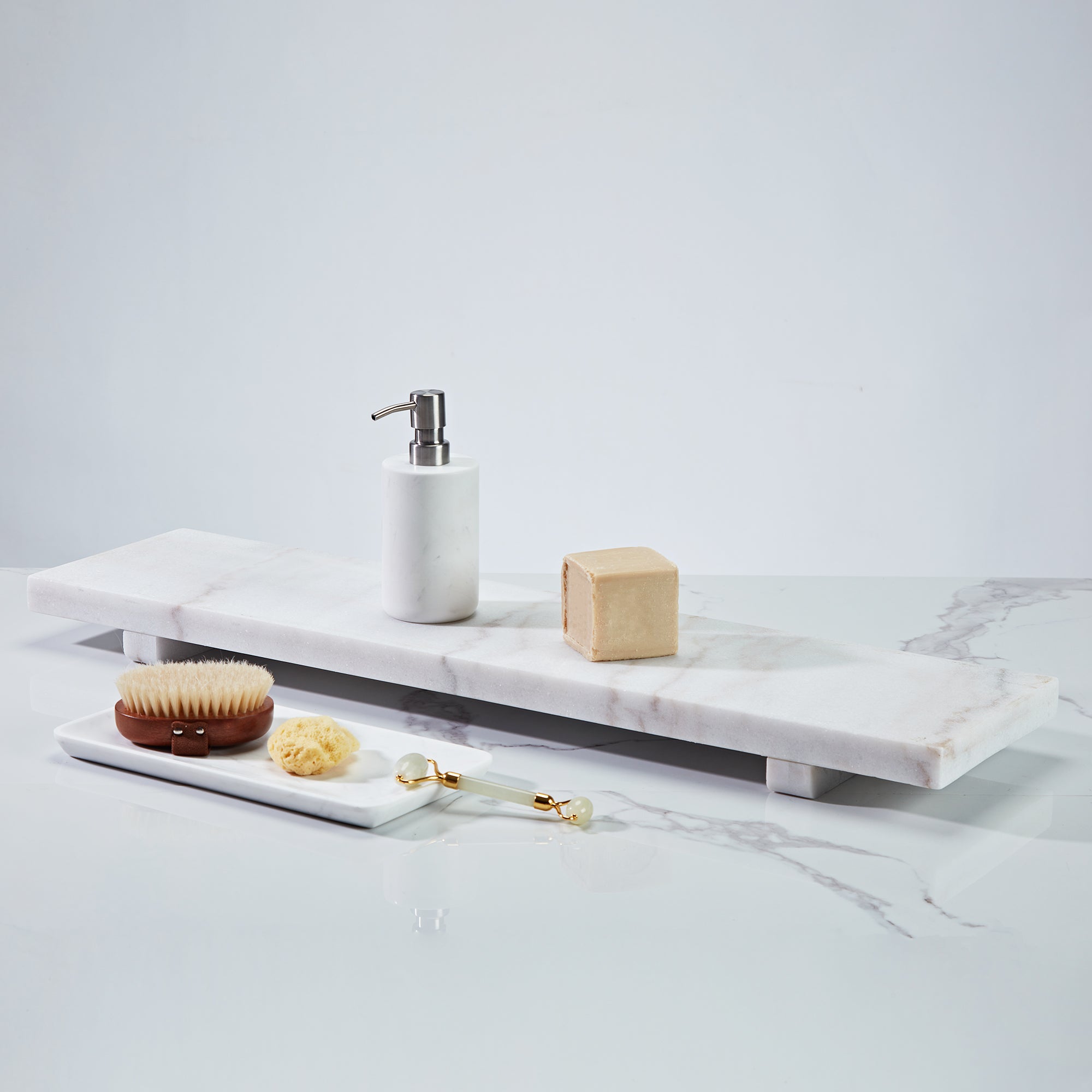- The solid marble construction ensures durability, while the sleek, polished finish adds a contemporary edge to the classic material. Enhance your daily routine with the refined aesthetics and functional beauty of the White Marble Bath Accessories.