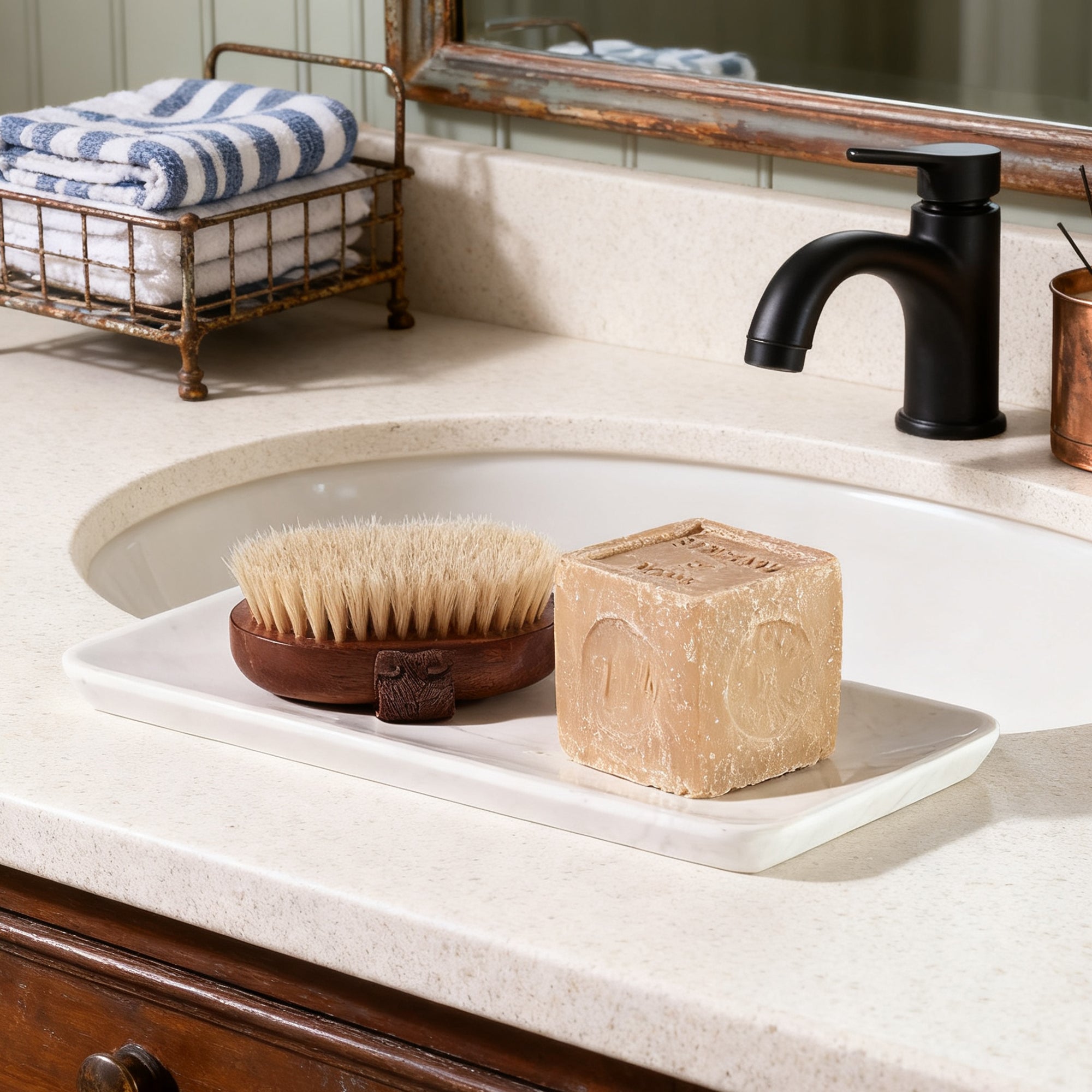 NeatEssence Marble Bath Accessories with Unique Design and Honed Smooth Finish for Elegant Bathroom Decor