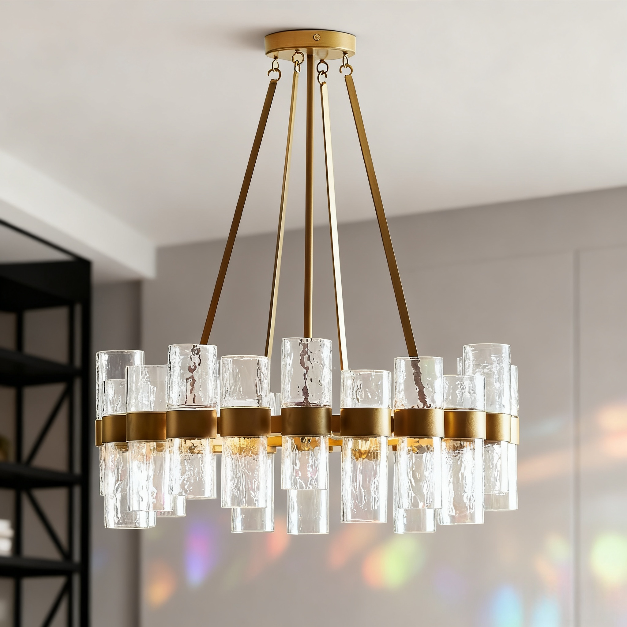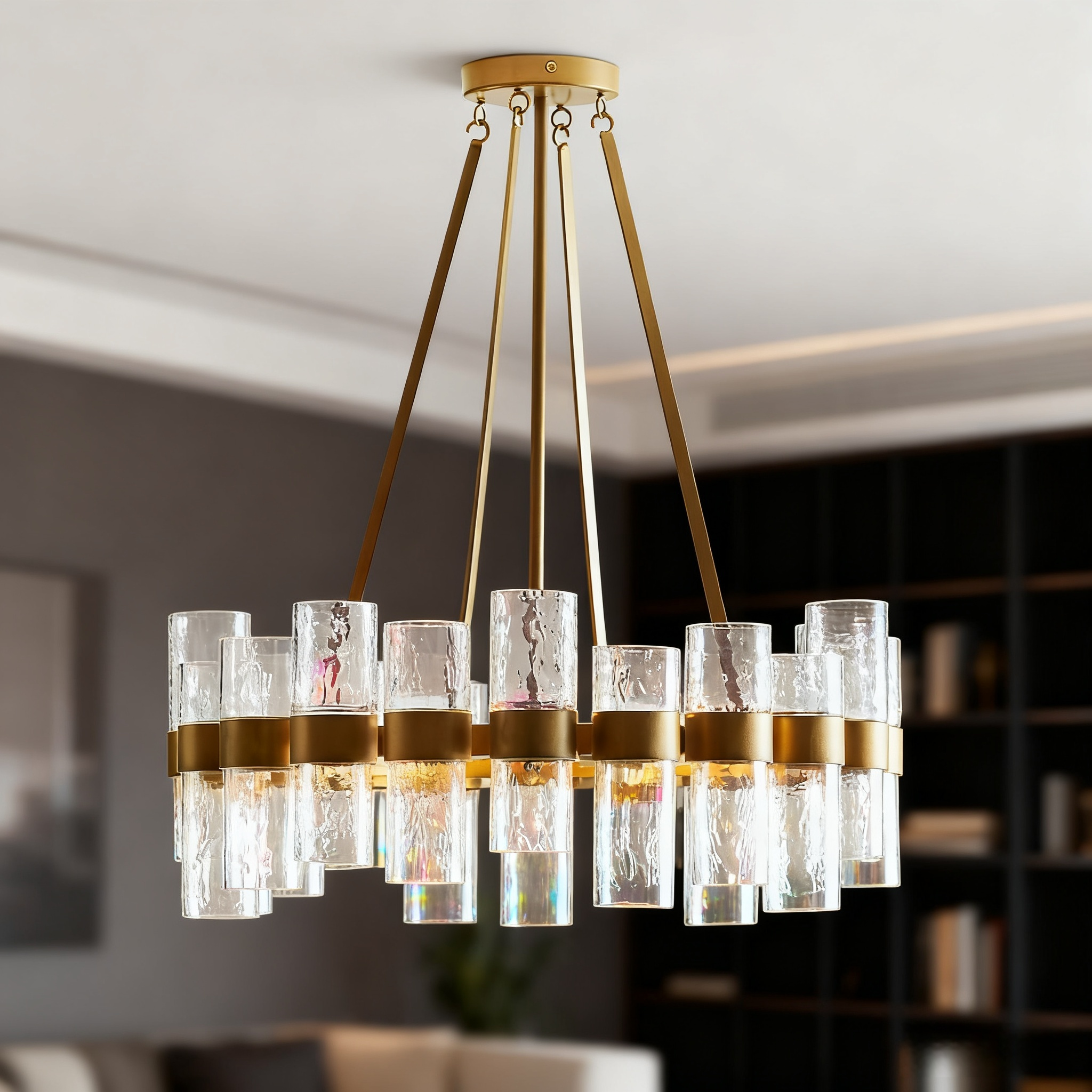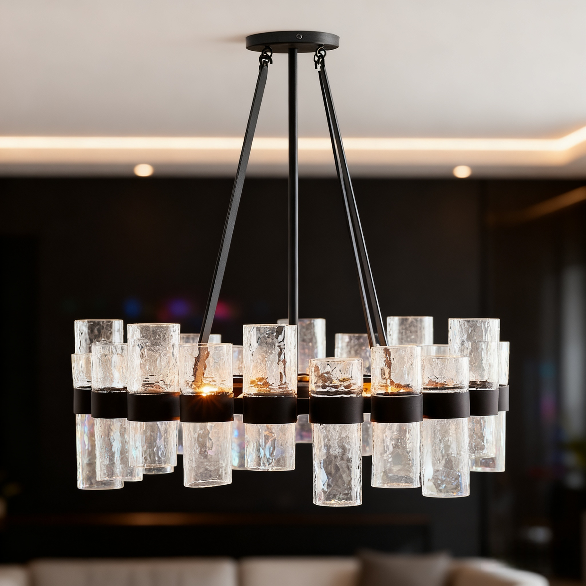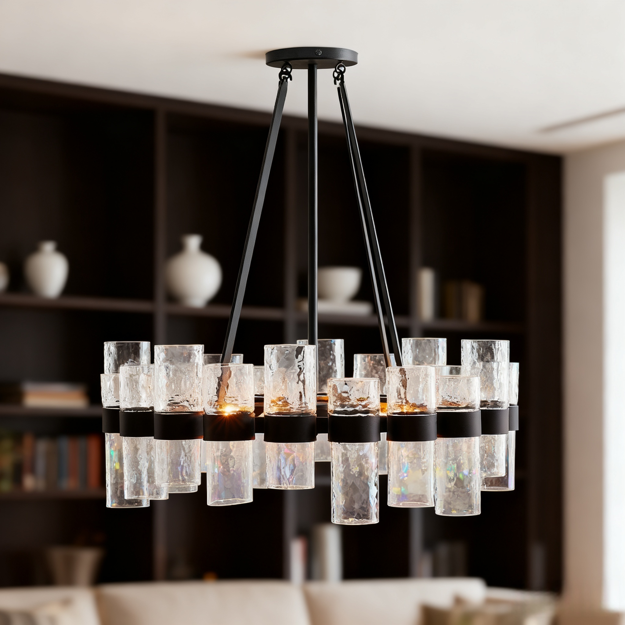 Penni Recycled Glass Chandelier - Elegant Art Deco Lighting Fixture - Perfect for Living Room Chandelier and Hanging Light Fixture