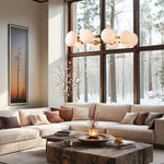 - This hanging light fixture for living room spaces emanates a soft, inviting glow, creating a warm and welcoming atmosphere.