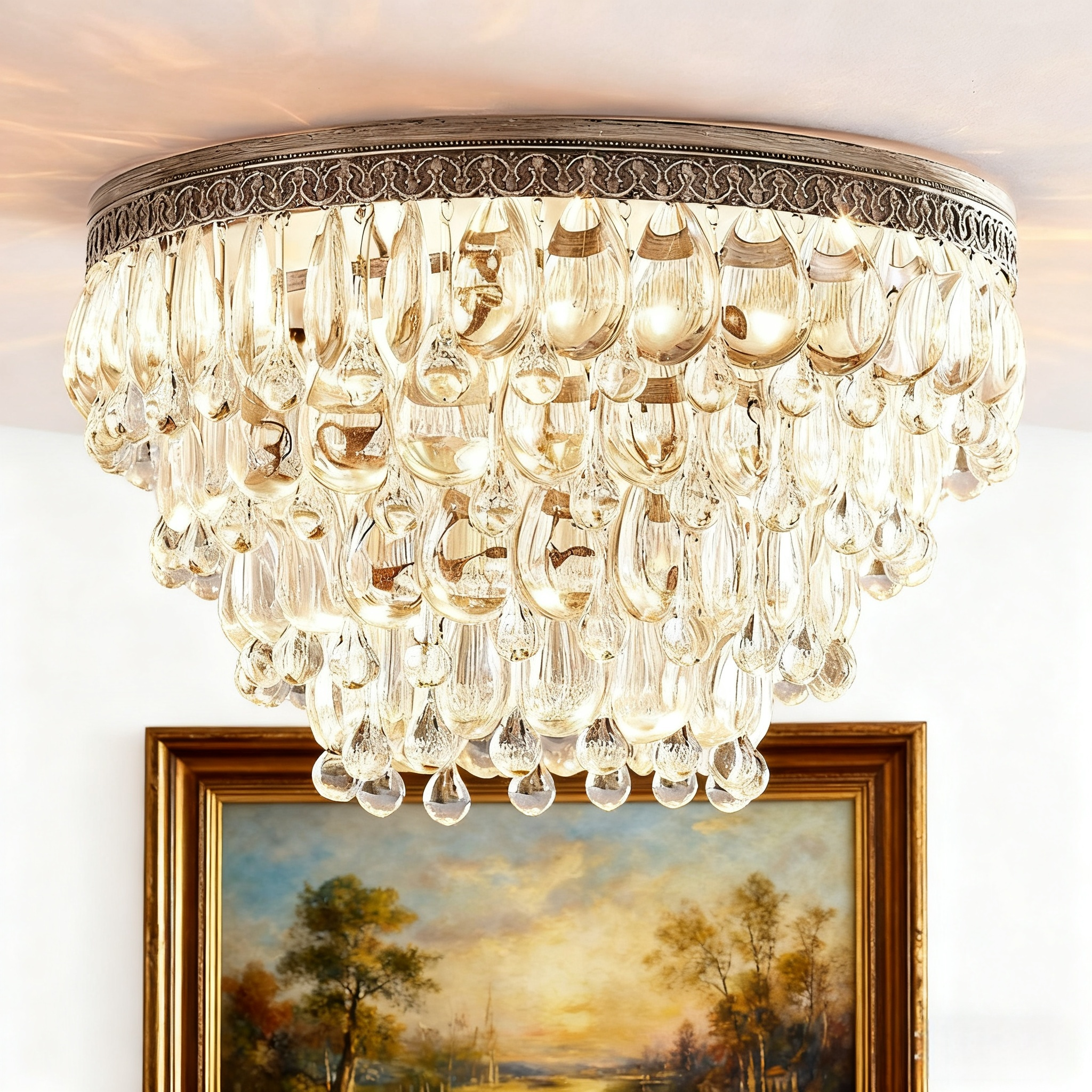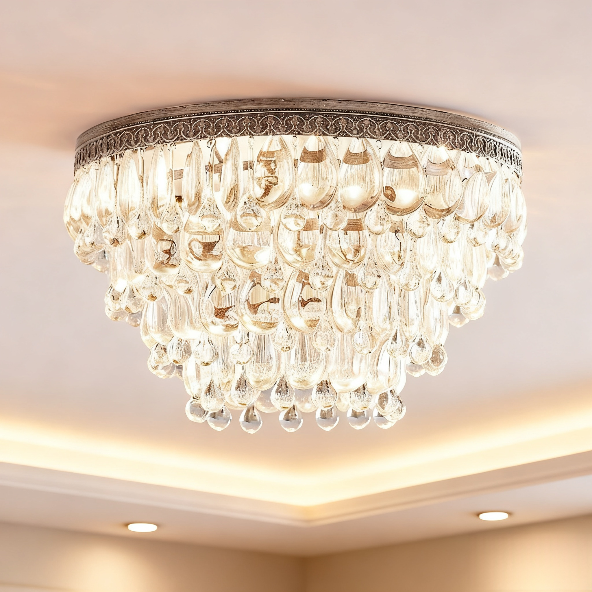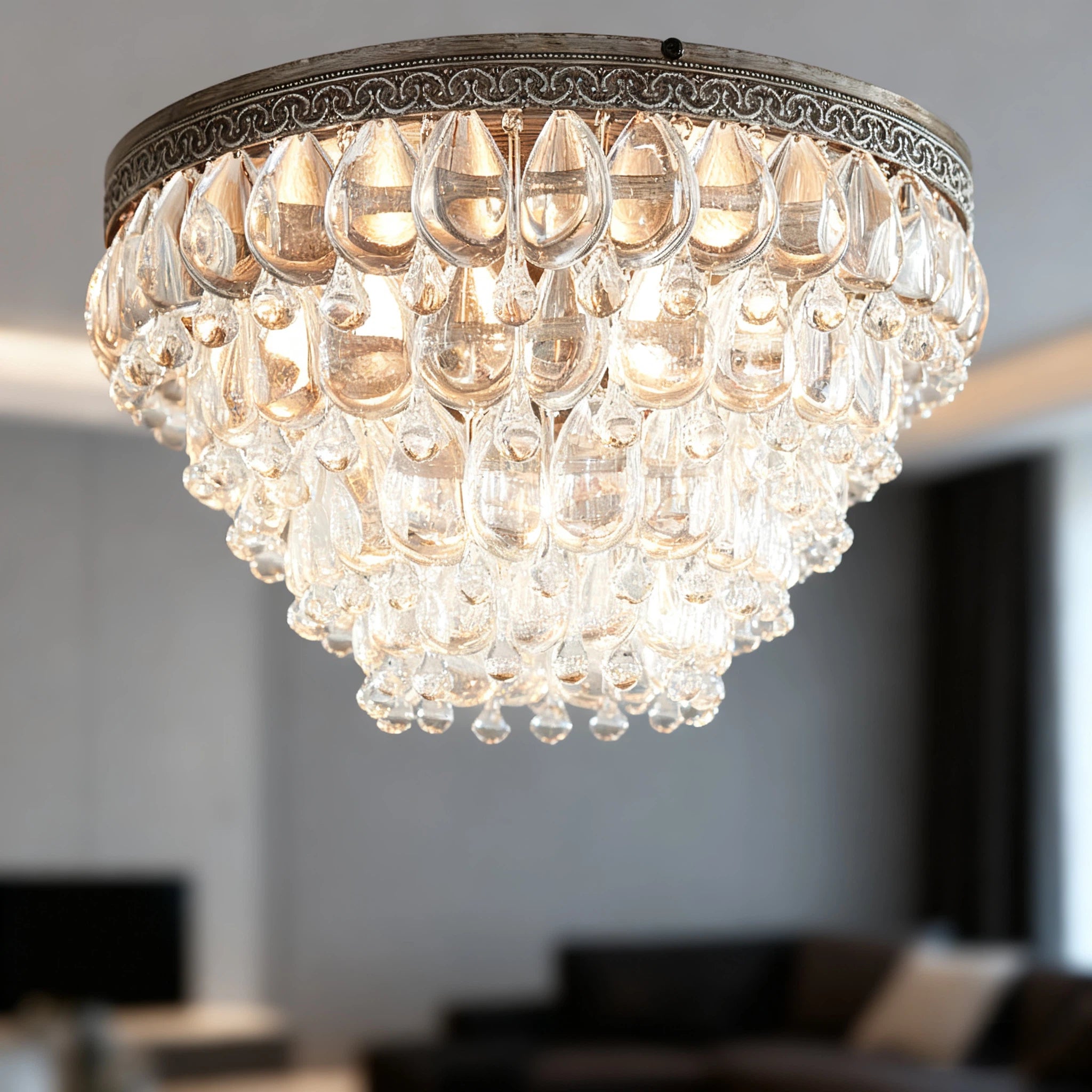Raindrop Elegance Crystal Flush Mount - Faceted-Glass Crystals and Rain Drop Display for Bedroom and Living Room Lighting