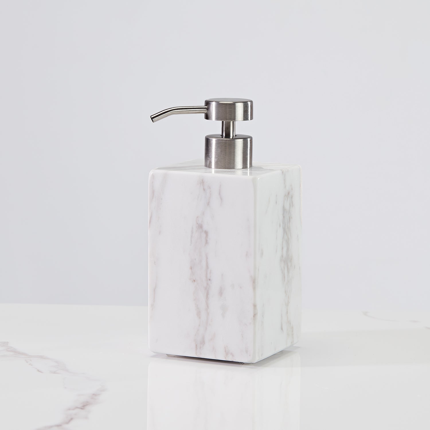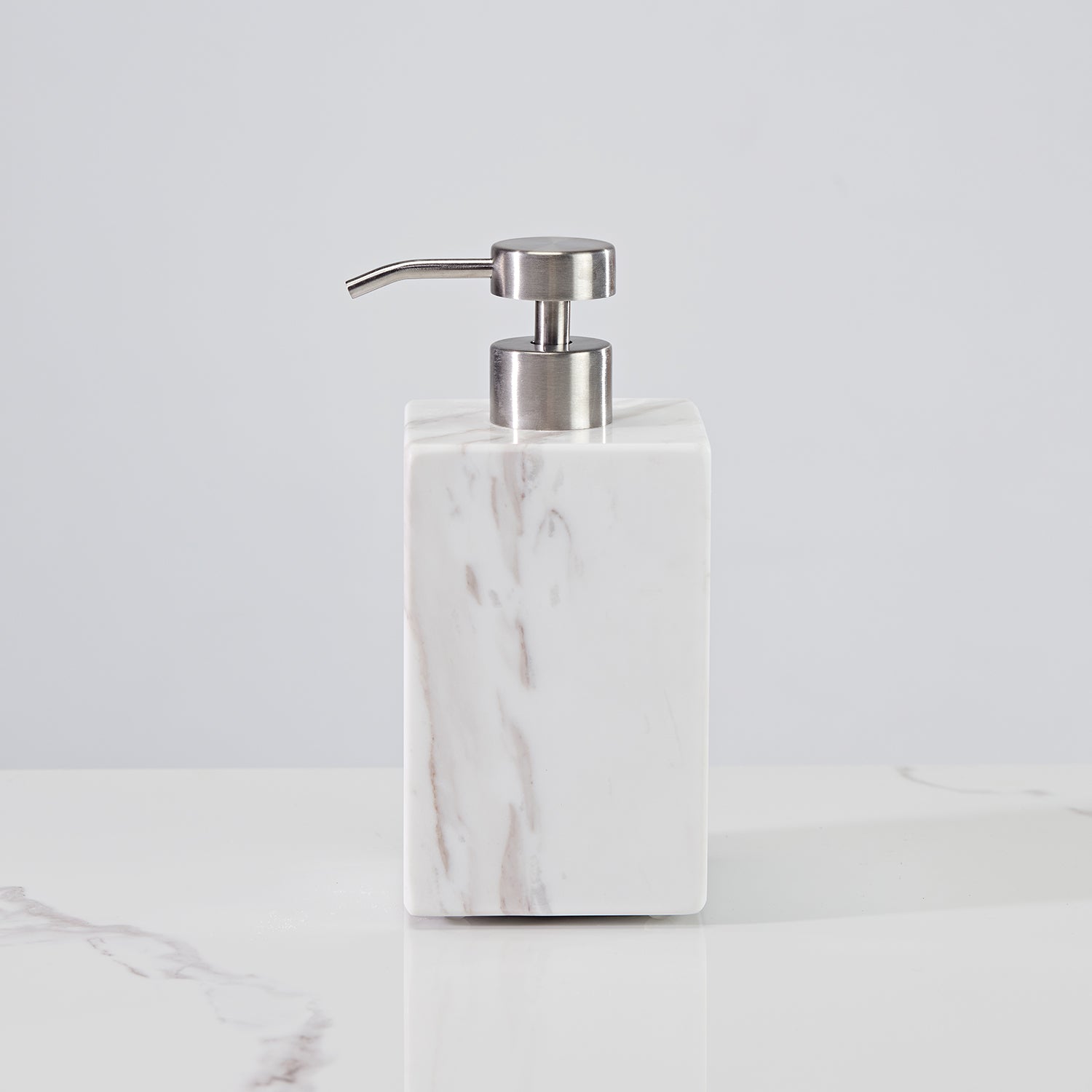 Polished Arabascato Marble Bath Accessories with Stainless Steel Pump - Elegant Decor for Marble Bathrooms, Featuring Unique Veining