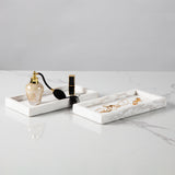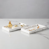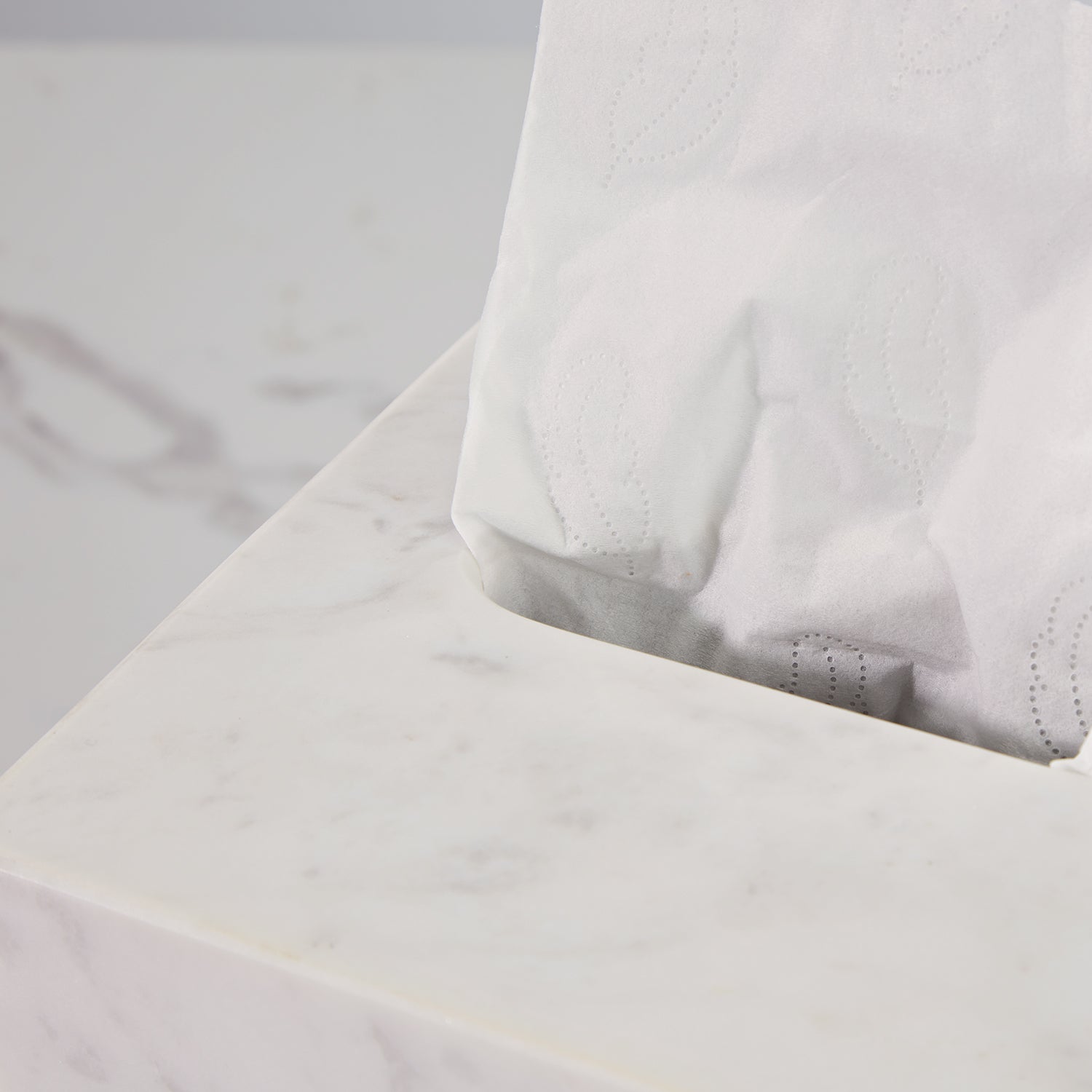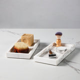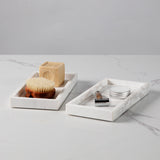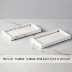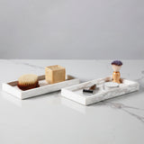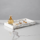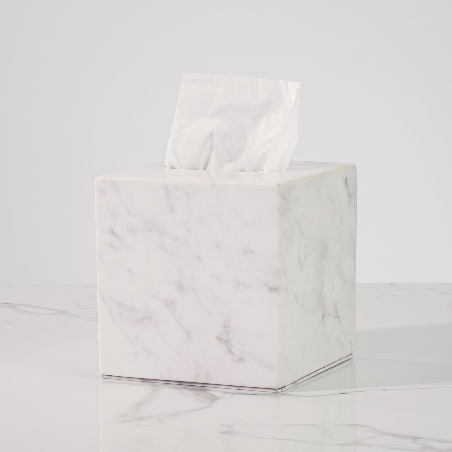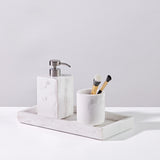 - The collection includes a sleek soap pump, a stylish tissue box cover, a spacious vanity tray, and a chic wastebasket, all designed to complement each other beautifully. Whether you’re updating your own bathroom or looking for the perfect gift, these marble bath accessories are sure to impress.
