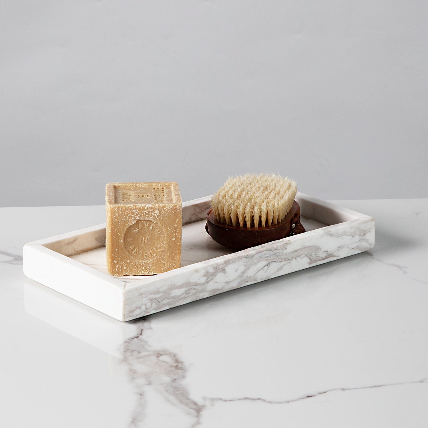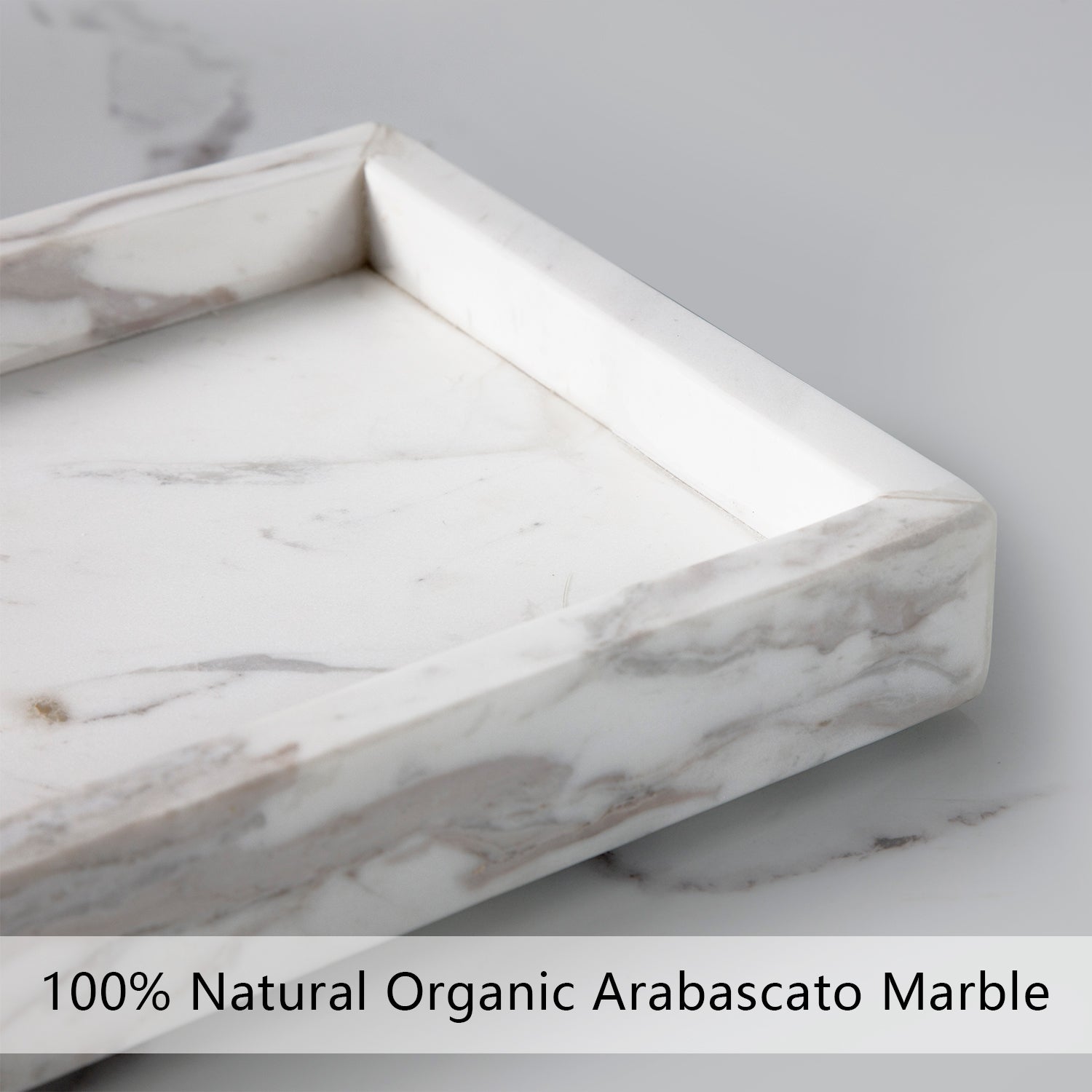 - Elevate your bathroom decor with our luxurious Polished Arabascato Marble Bath Accessories! These stunning marble bathroom accessories are not just functional; they’re a statement piece that adds a touch of elegance to any space. Crafted from high-quality Arabascato marble, each accessory features unique dusty grey veining, making every item truly one-of-a-kind.