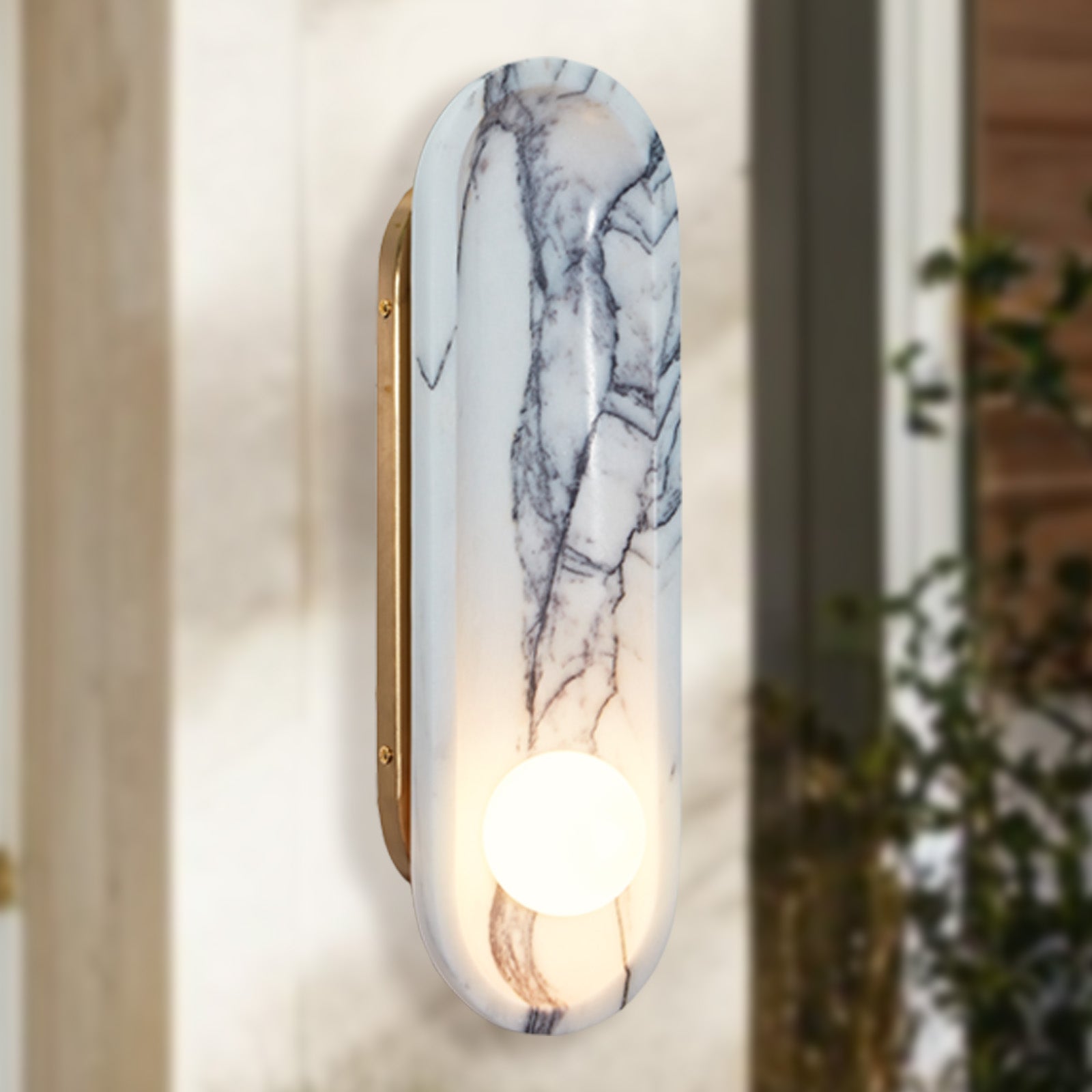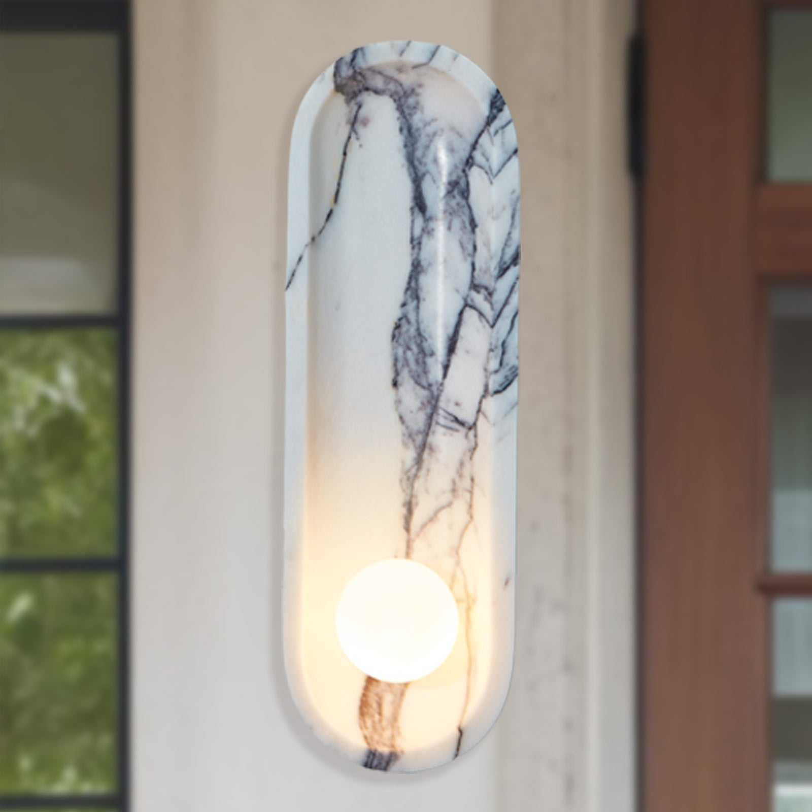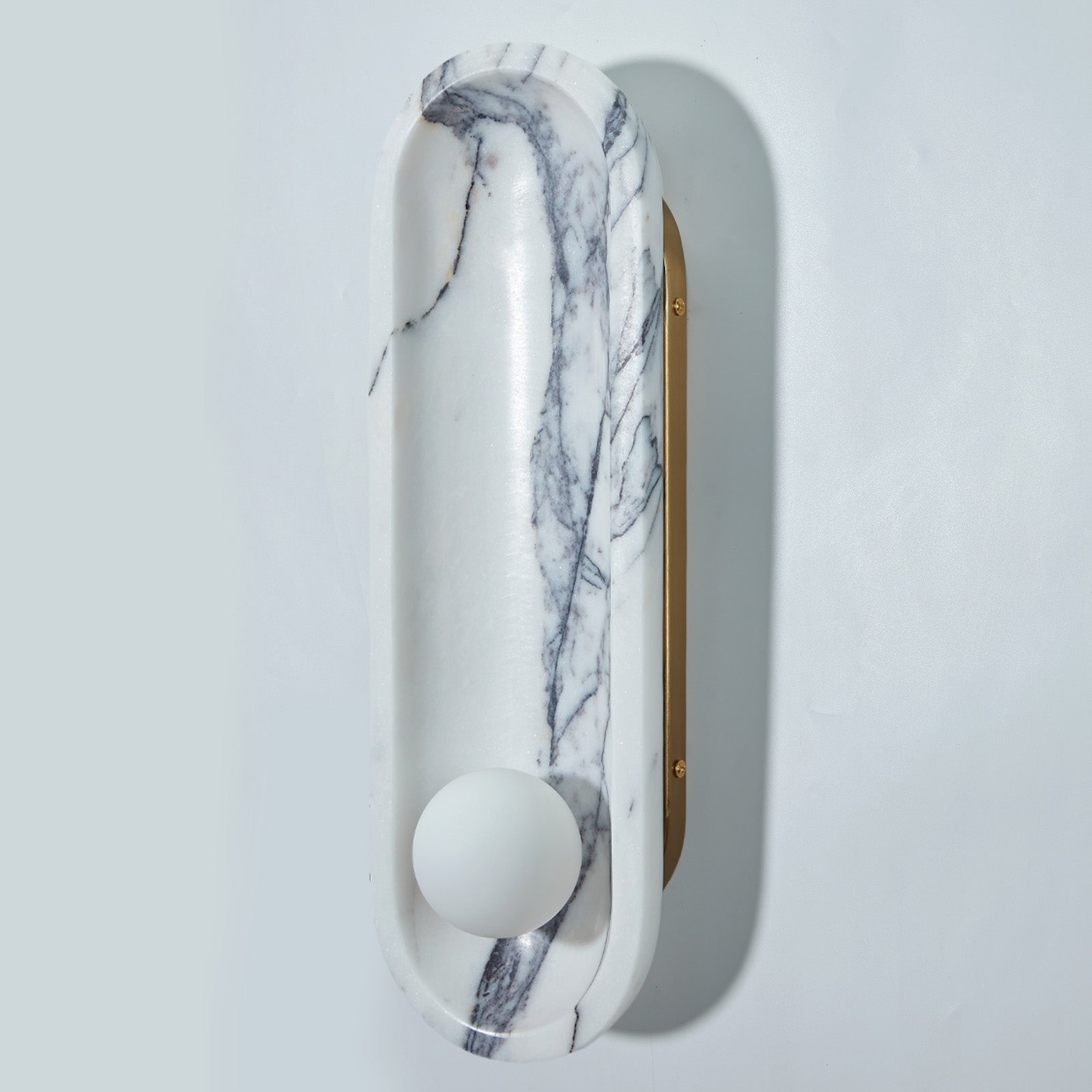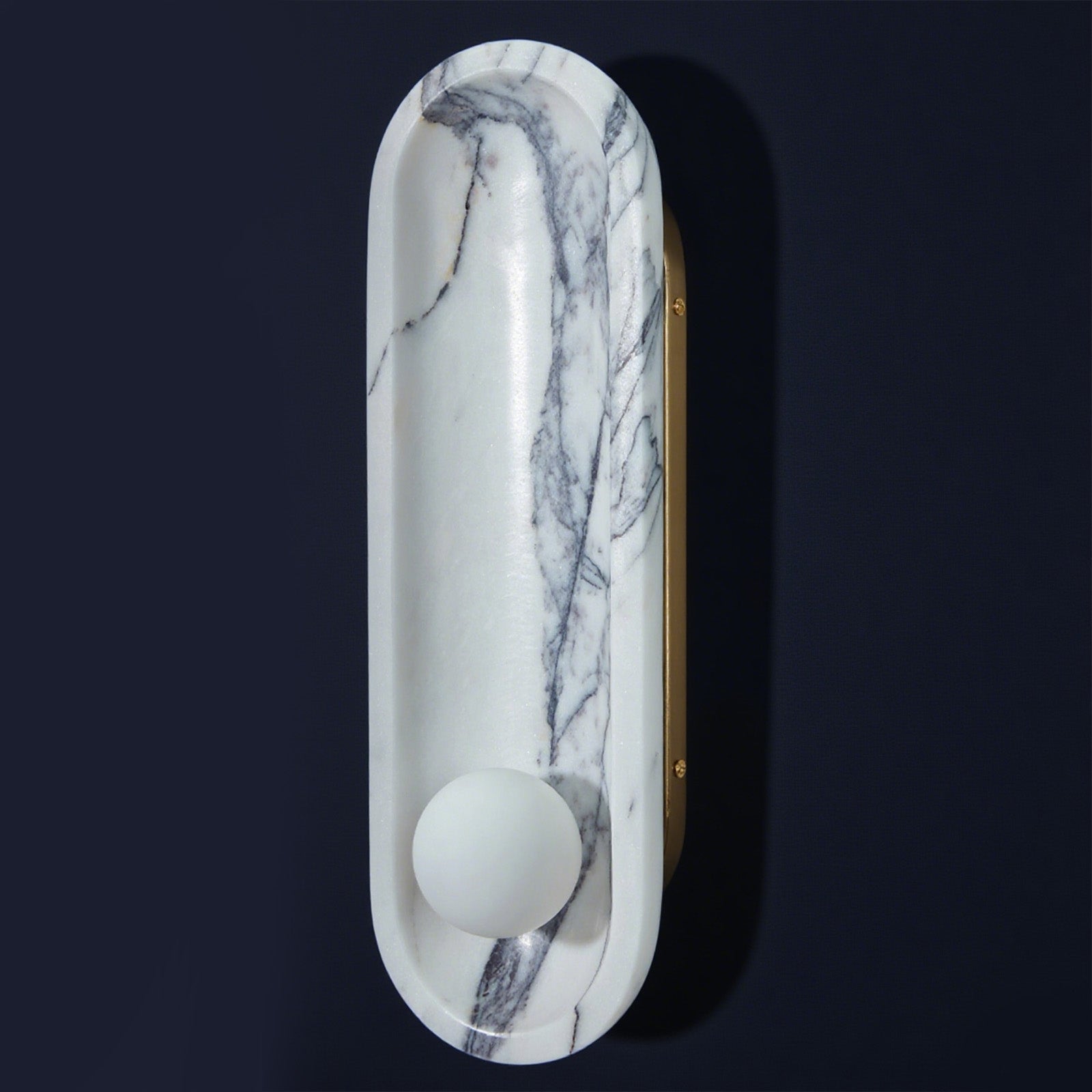 - Elegant Design: opaline glass globe shade against Arabescato marble evokes the elegance of a pearl sitting in a tray.