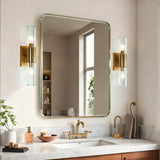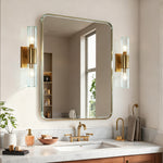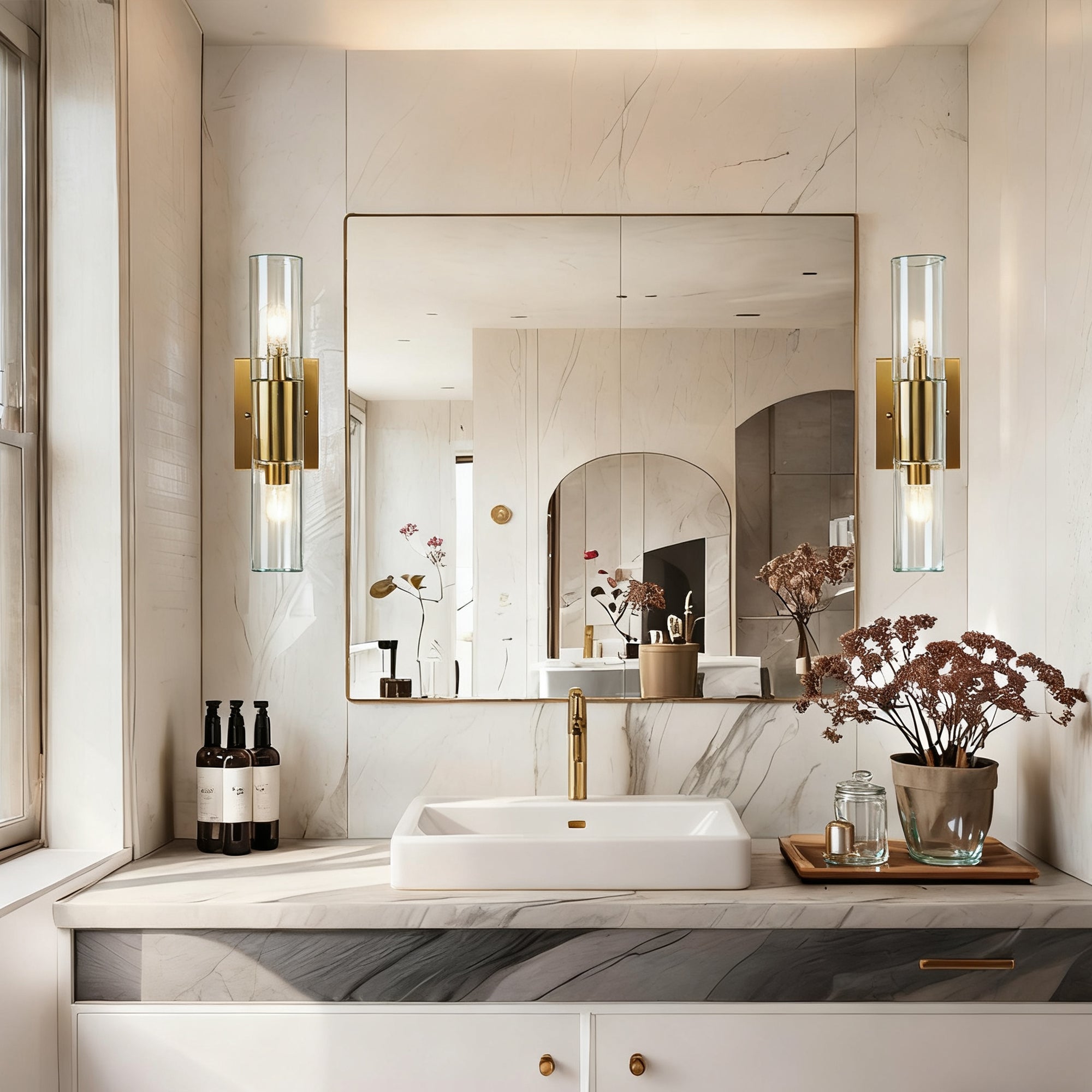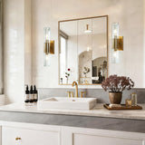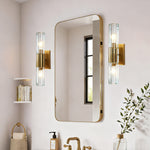 Rustic Geometric Design Double Tube Wall Sconce - Damp Rated Hand-Cut Glass Fixture for Bathroom, Bedroom Wall Sconces, and Wall Lamps
