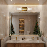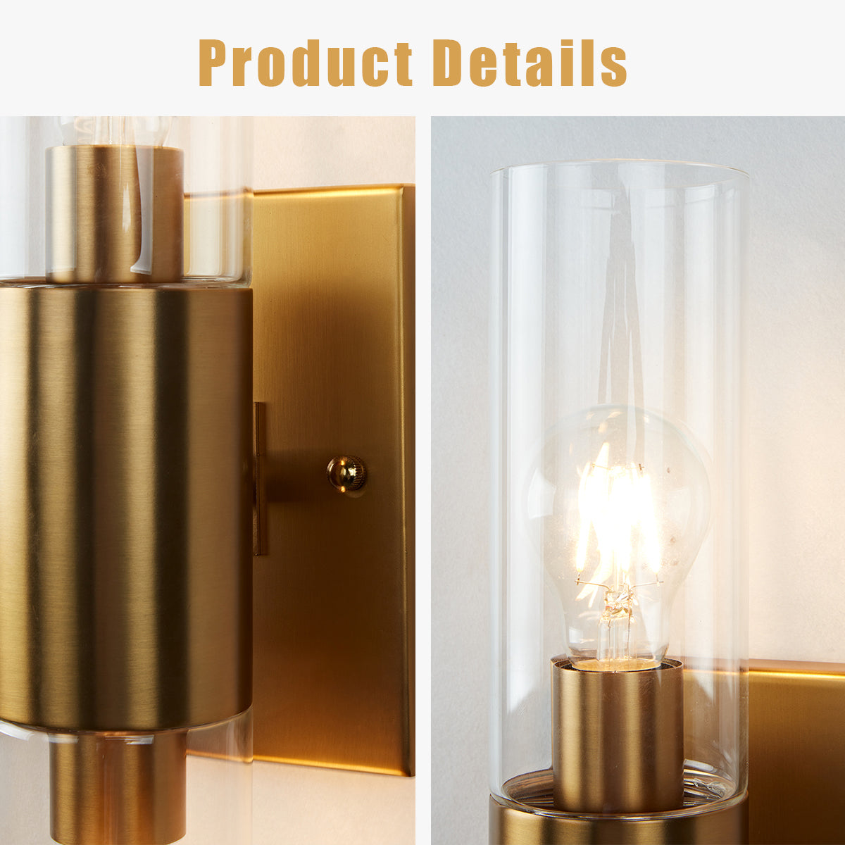 - Crafted with clean lines and beautiful glass shades, this double sconce provides a warm glow that creates a relaxing ambiance in your bath or bedroom. Whether you’re getting ready in the morning or winding down in the evening, these bath sconces bring a cozy feel while completely transforming your decor.