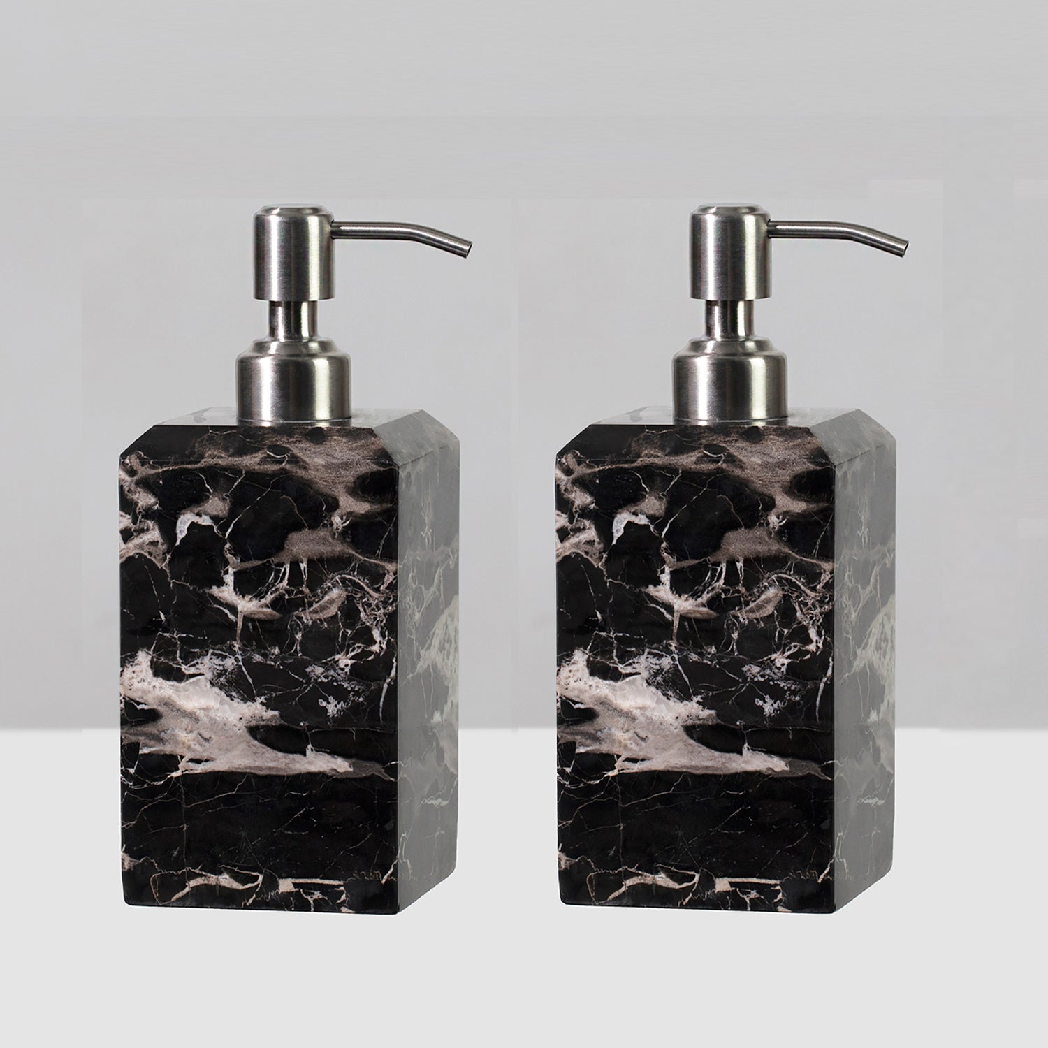 Silver Dragon Marble Luxe Bath Set - Black and White Elegance with Soft Sheen, Easy Cleaning - Perfect for Liquid Soap and Lotion Dispensers