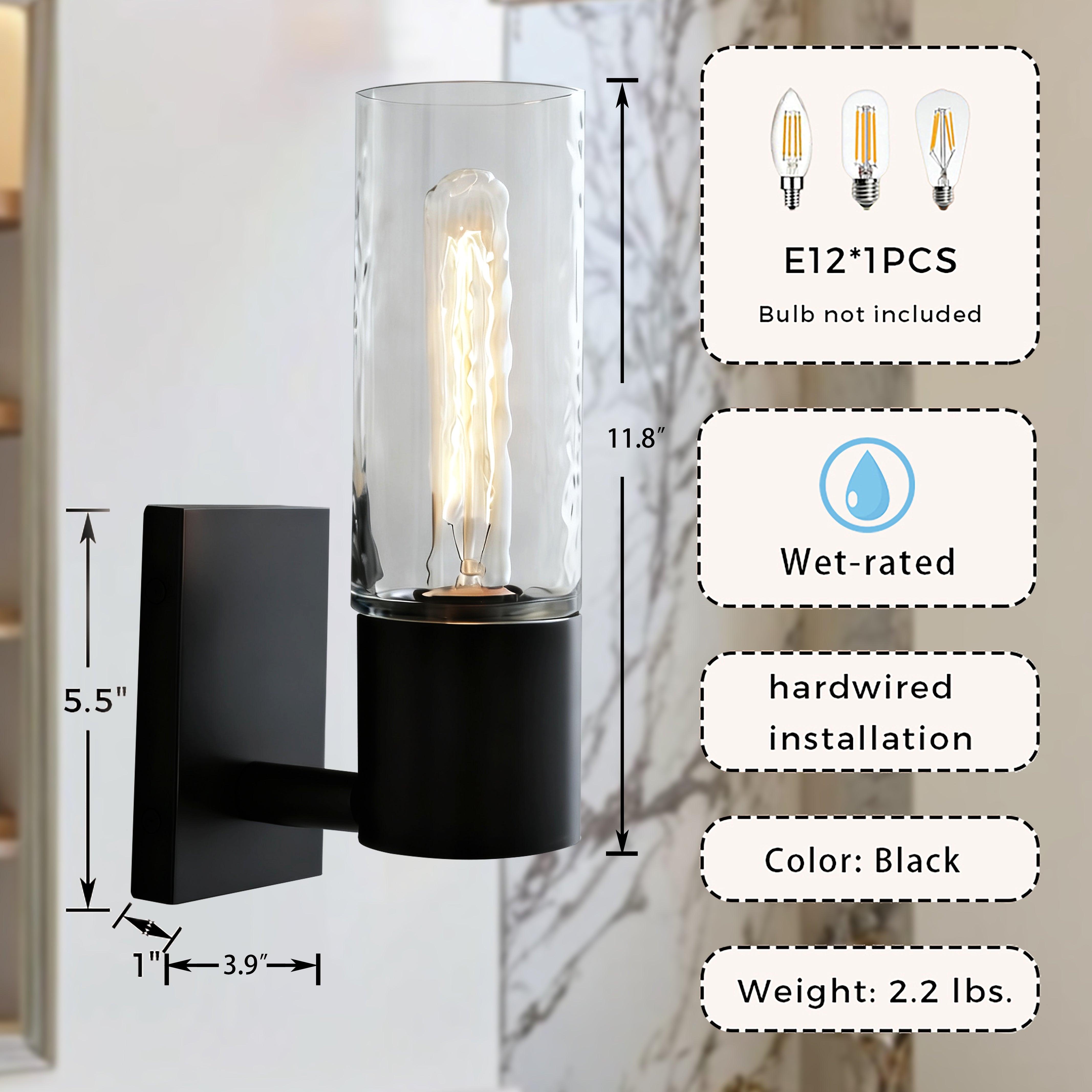 Transparent Glass Cylinder - Sleek Handcrafted Wall Lamps for Optimal Light, Suitable for Bathrooms and Living Rooms