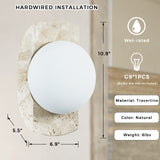 - Crafted from solid ivory travertine sourced from Turkey, this sconce features a striking opaline glass globe that creates a warm and inviting ambiance.