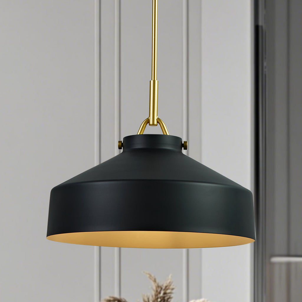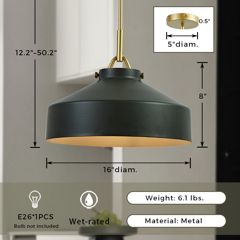 - Featuring a metal shade and body, this pendant light is hardwired and requires an E26 outlet for convenience.