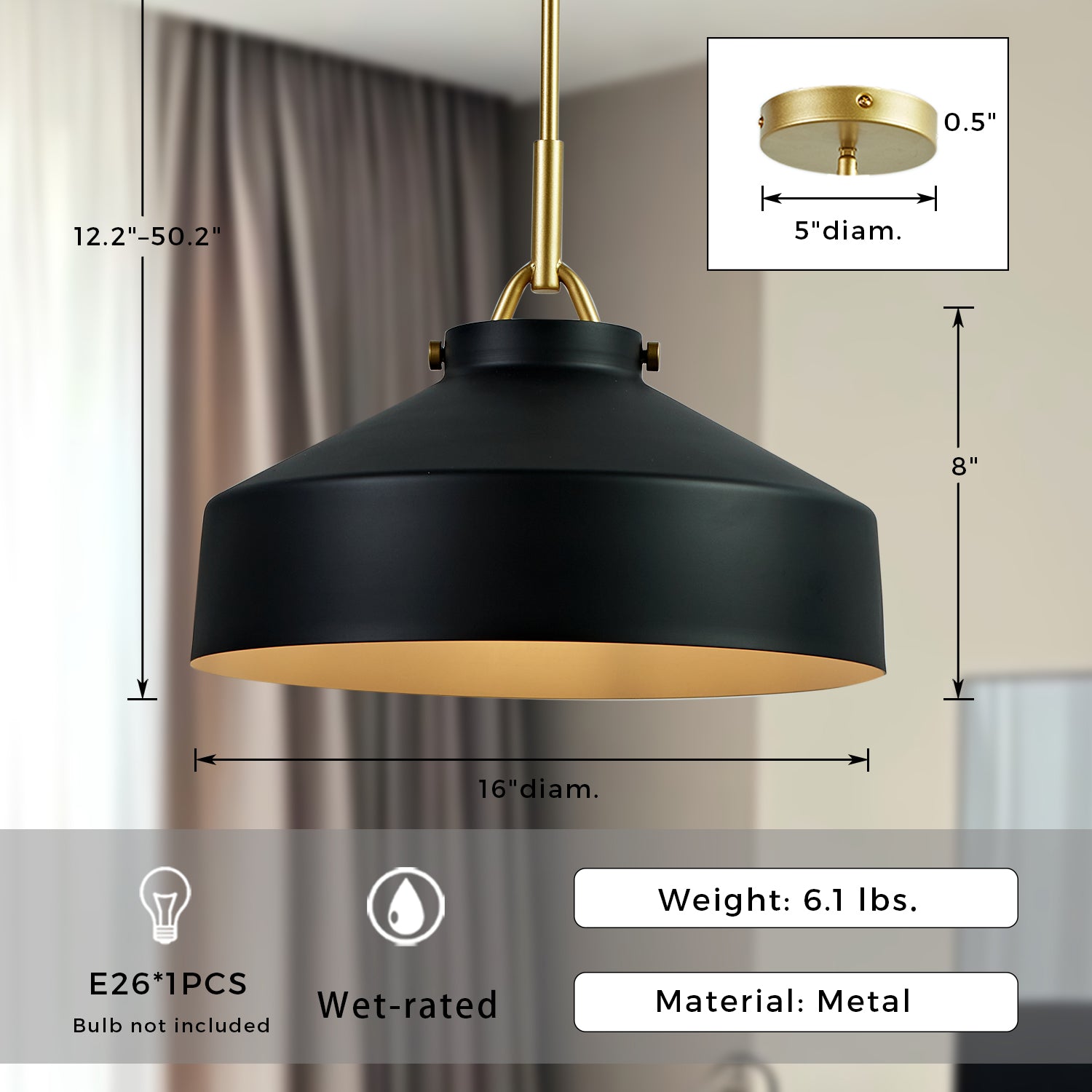 - Overall: 16"diam. x 12.2"–50.2"h