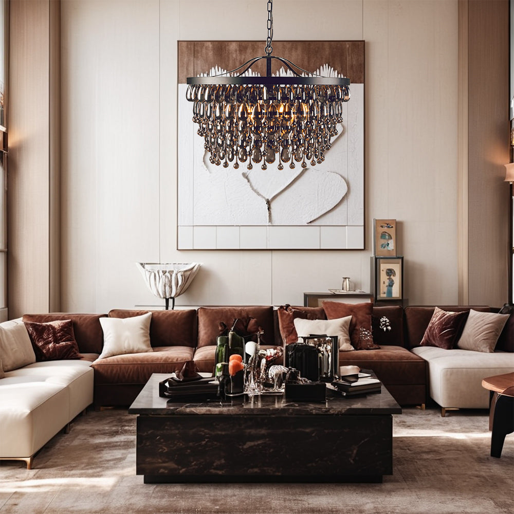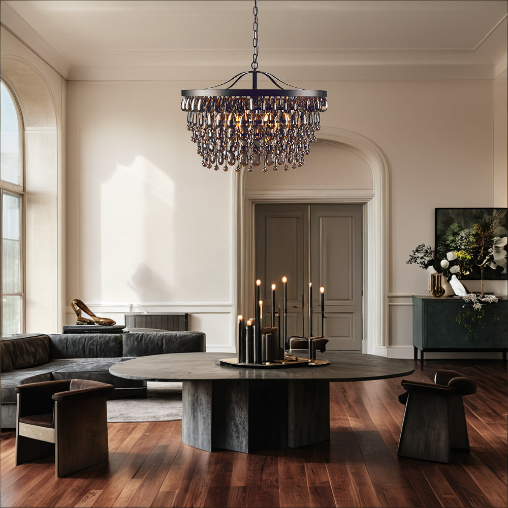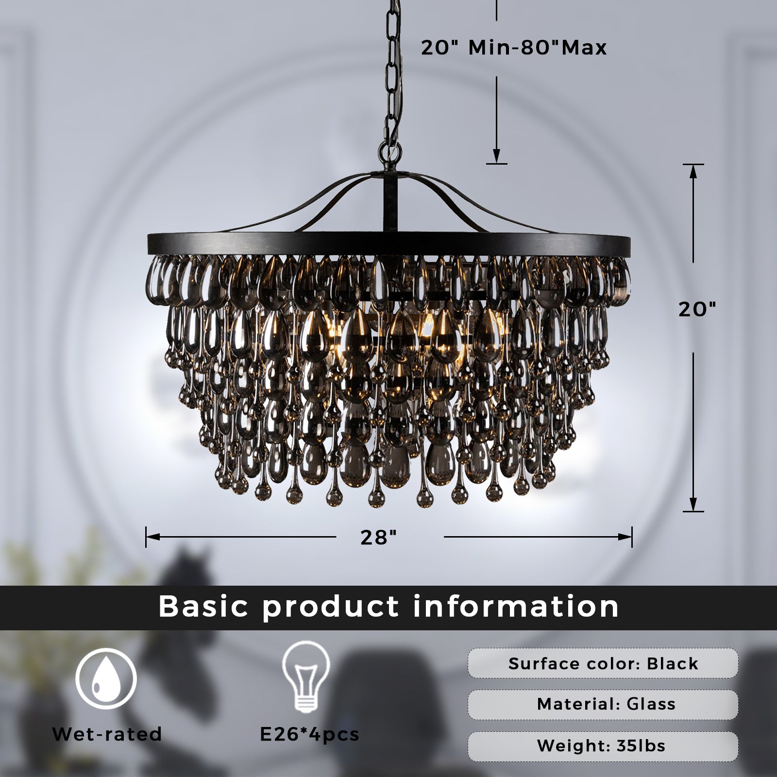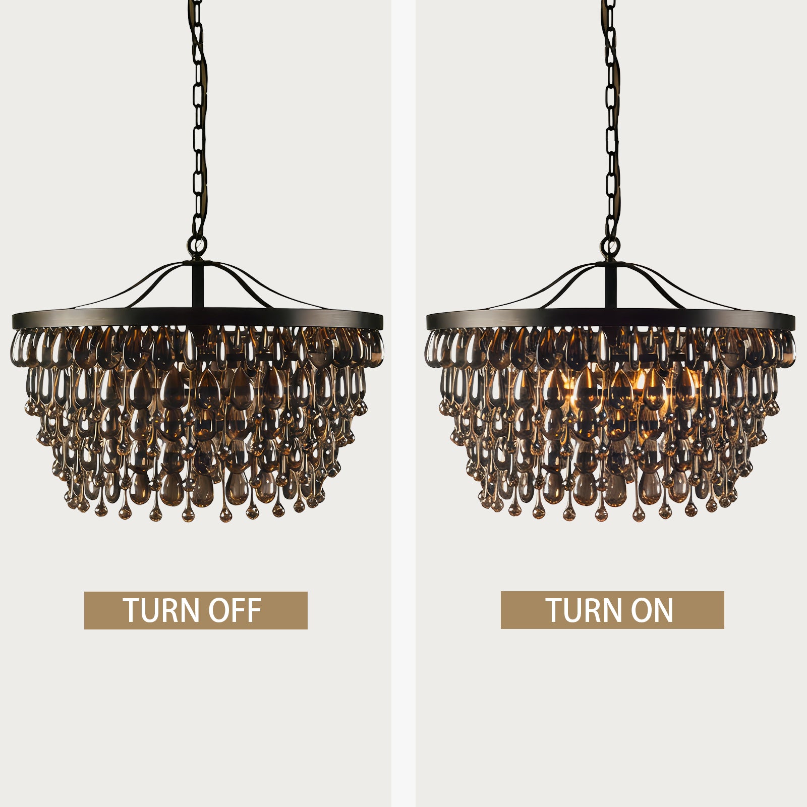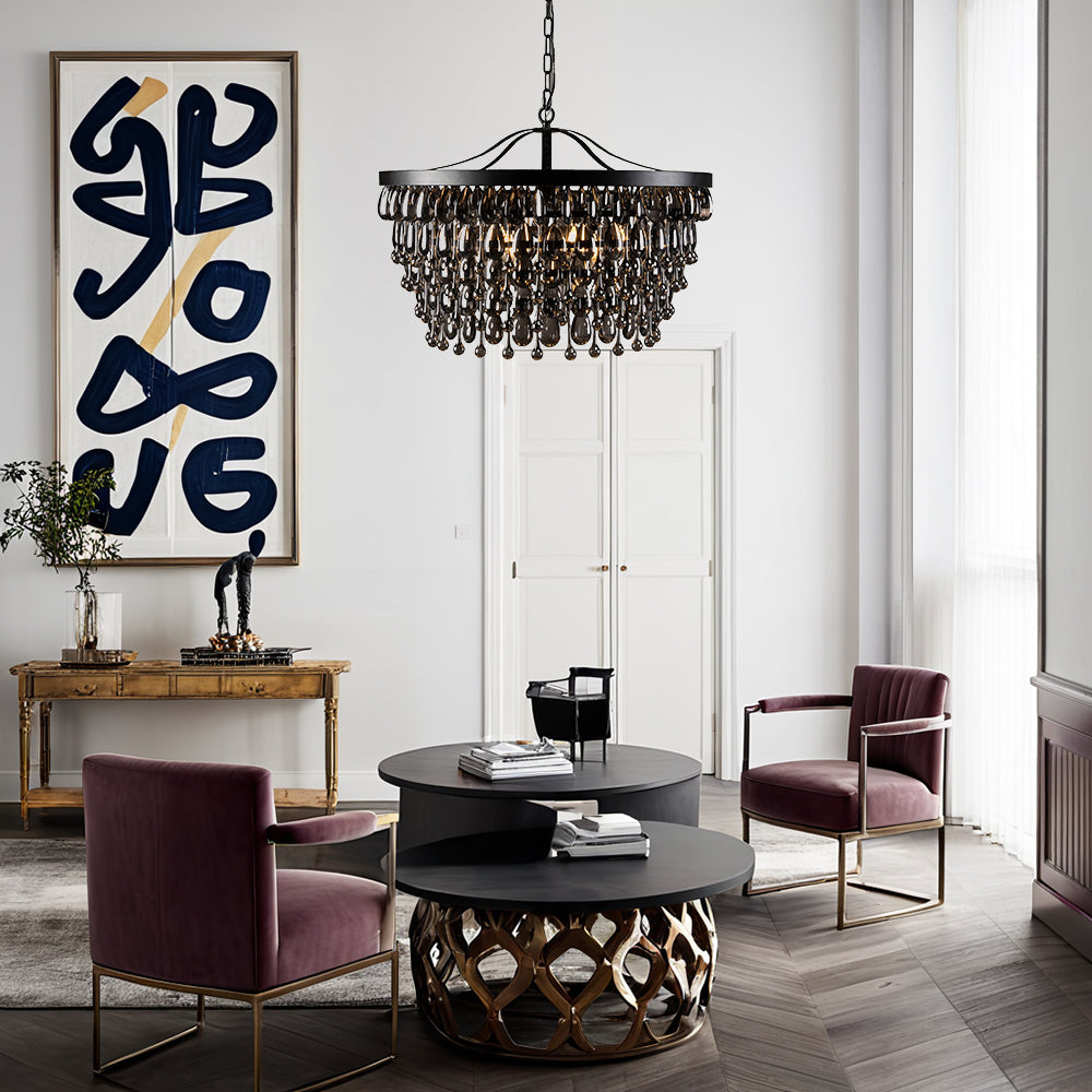 - Crafted of iron in a sleek Black finish with tinted crystal droplets.