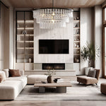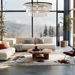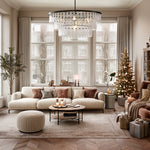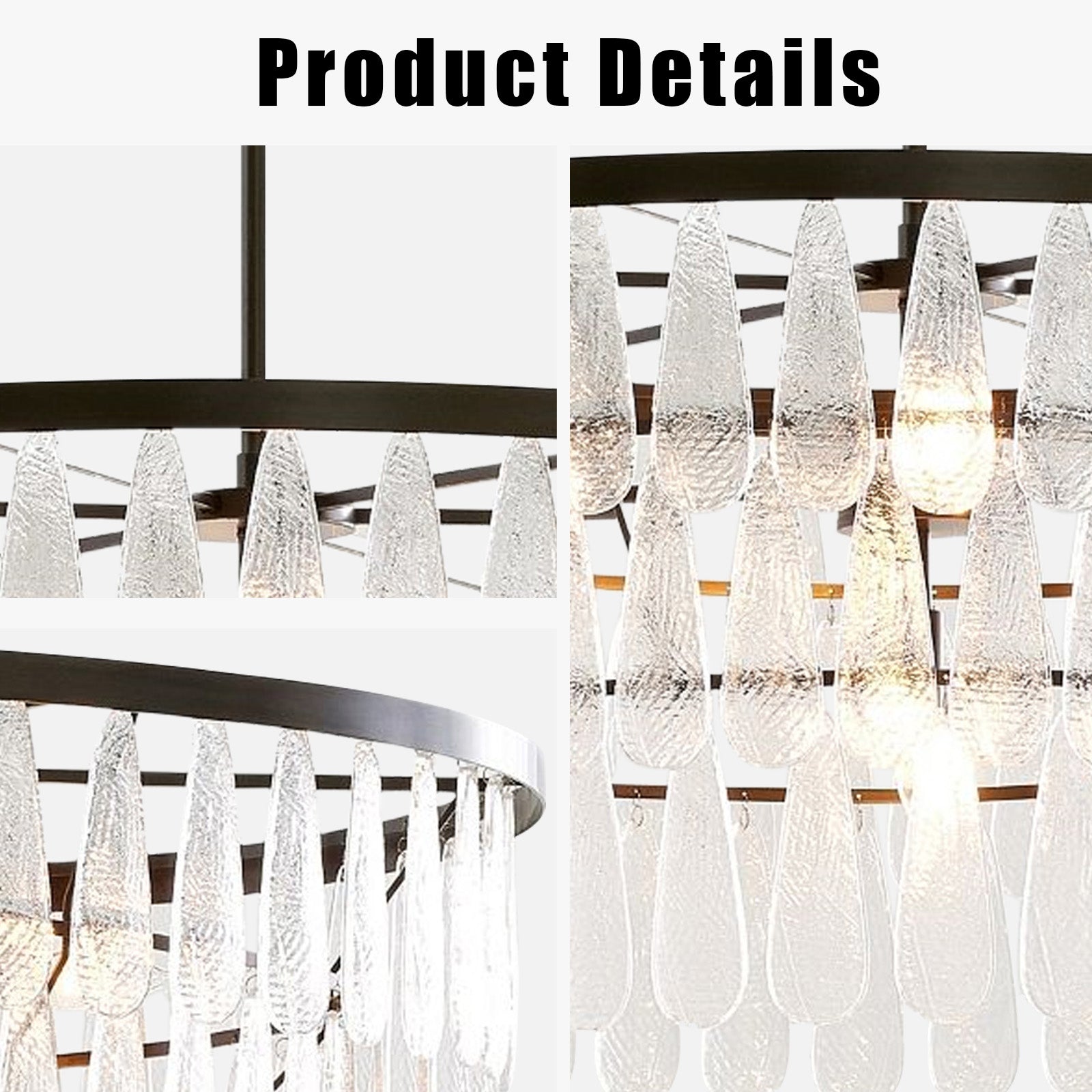 - Dimensions: Available in two sizes, the small chandelier has a 20.5" diameter, 15.75" height, and weighs 18.5 lbs, while the large one measures 36.5" in diameter and 15.75" in height, weighing 32 lbs.