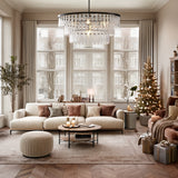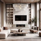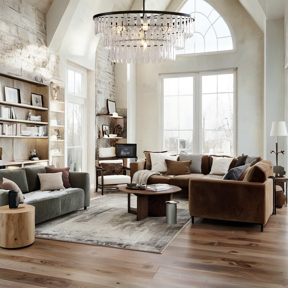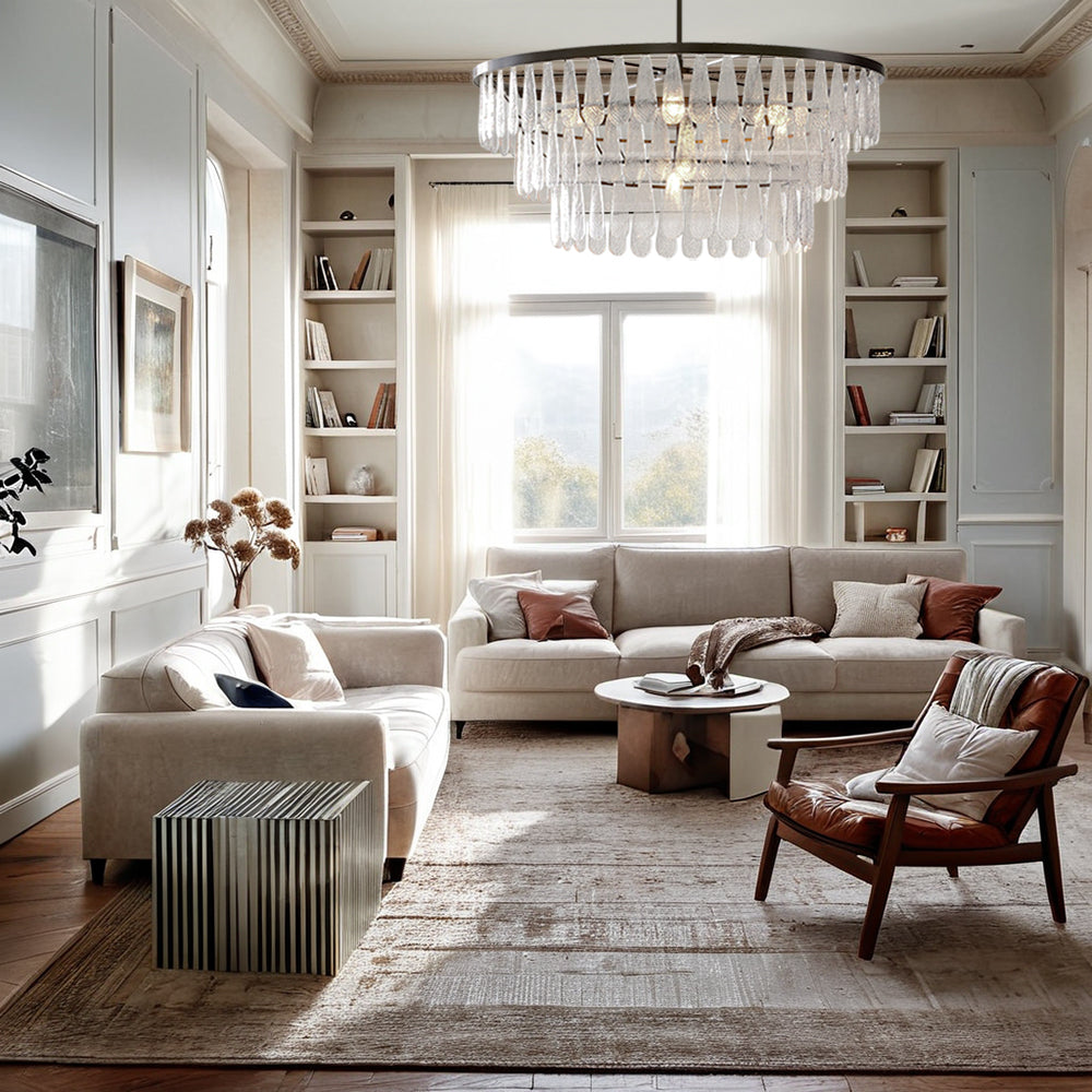- Illuminate your living room with a touch of sophistication using this textured glass round chandelier. This stunning fixture effortlessly combines vintage-inspired charm with a modern twist, making it a perfect fit for contemporary living spaces.