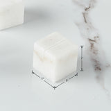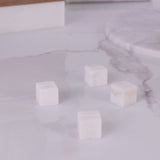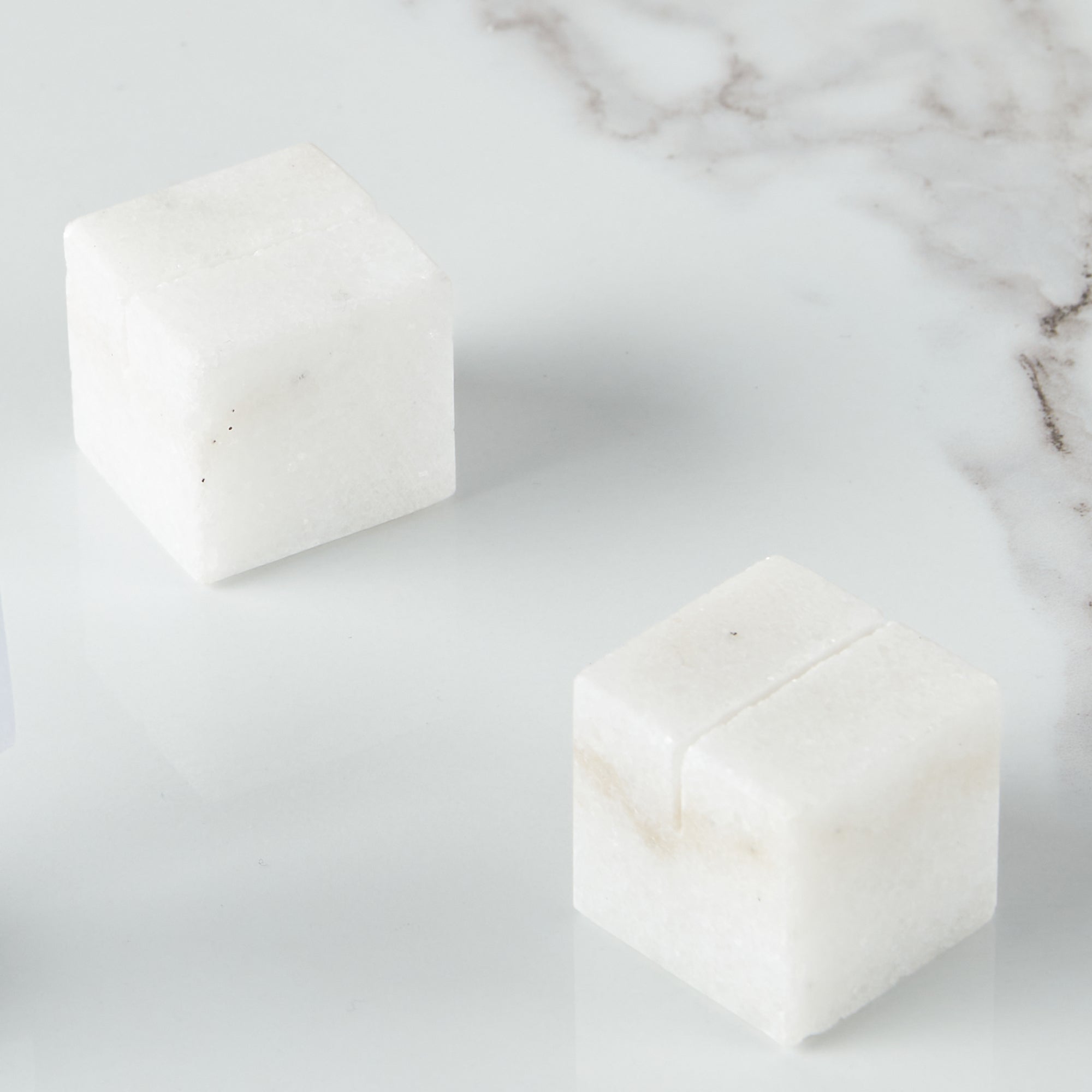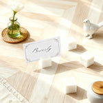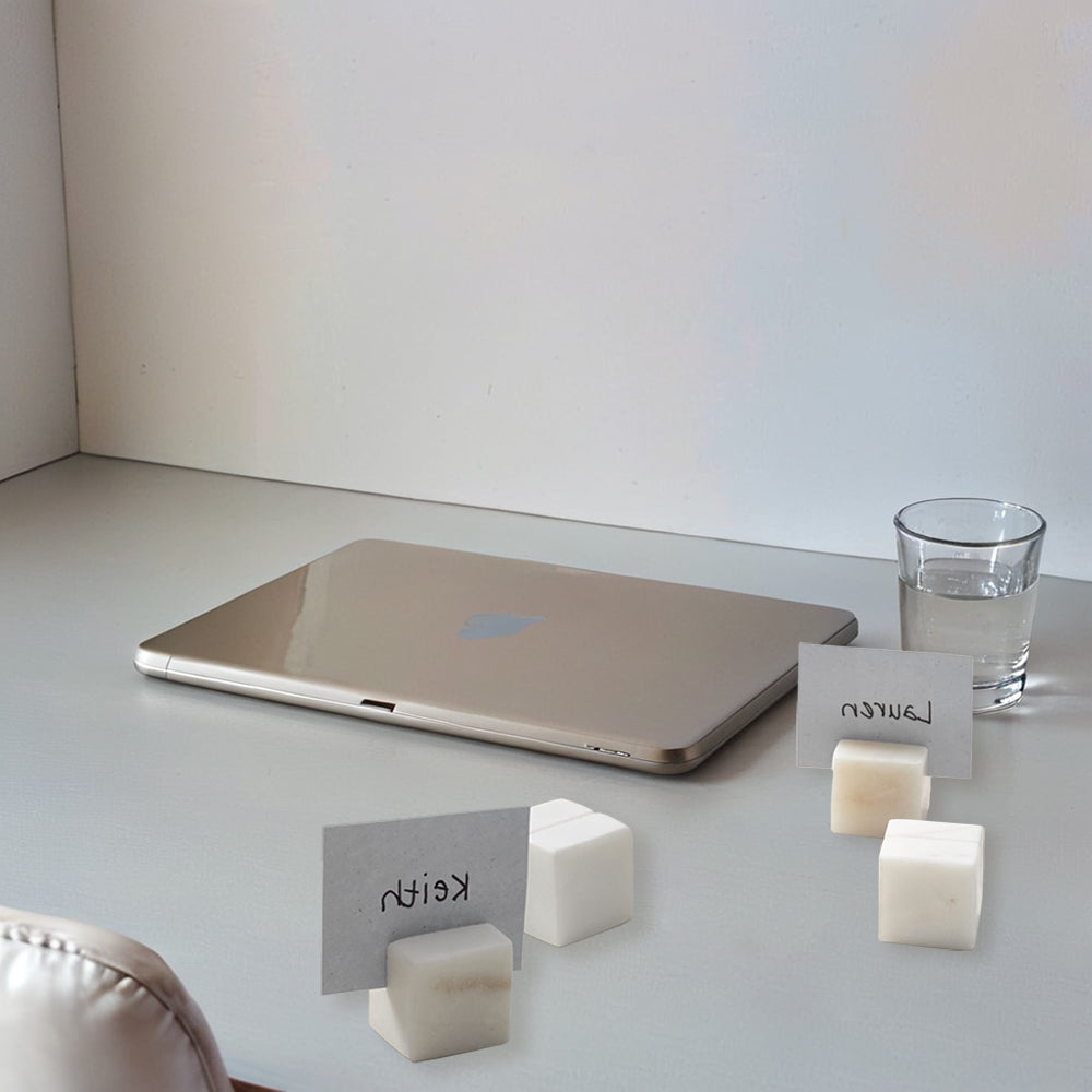 4-Pack White Cube Marble Place Card Holders for Desk, Stylish Card Display Stand with Handmade Natural Marble, Cute Office Desktop Accessory for Women and Men